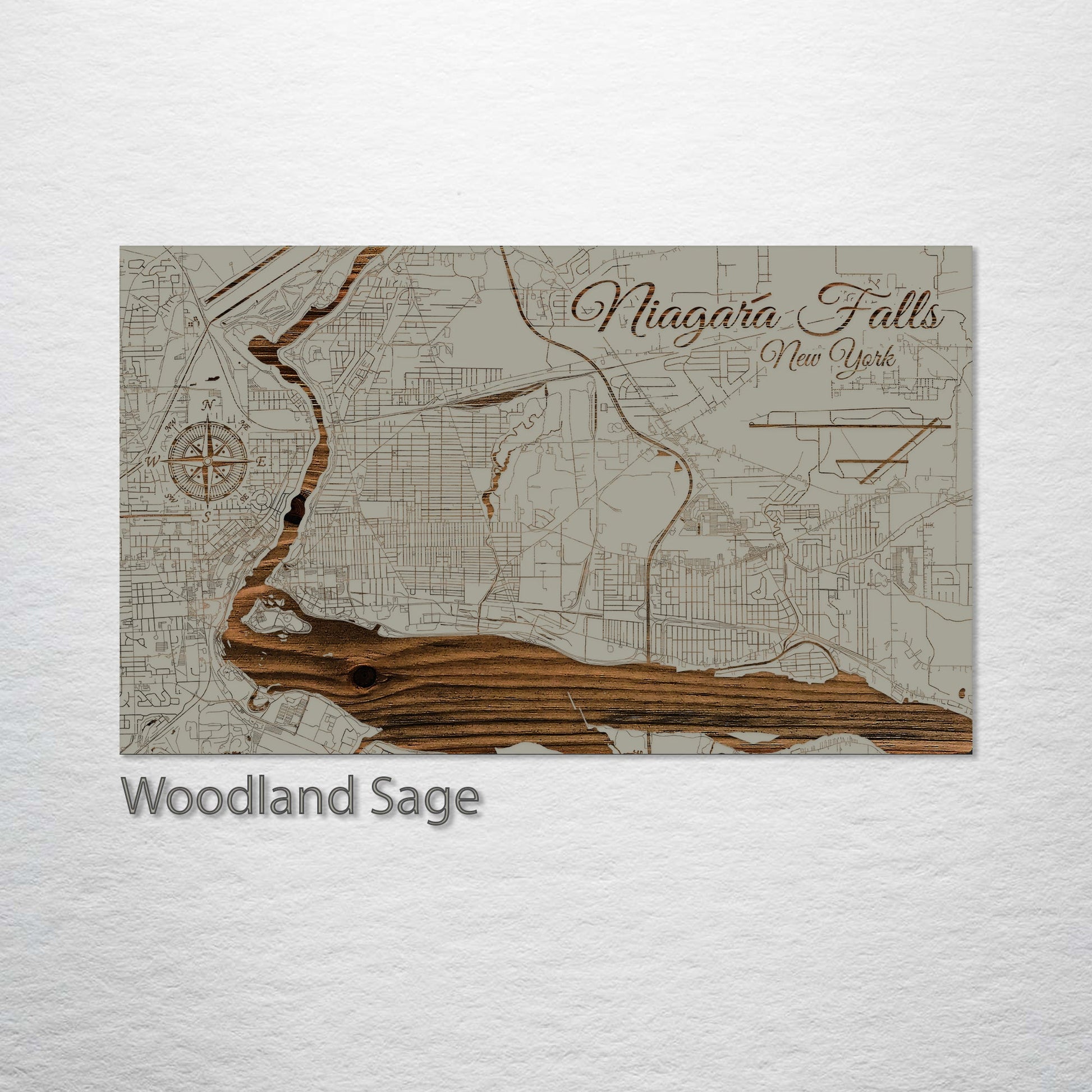 This is a street map of Niagara Falls, NY designed by Fire & Pine artists.
