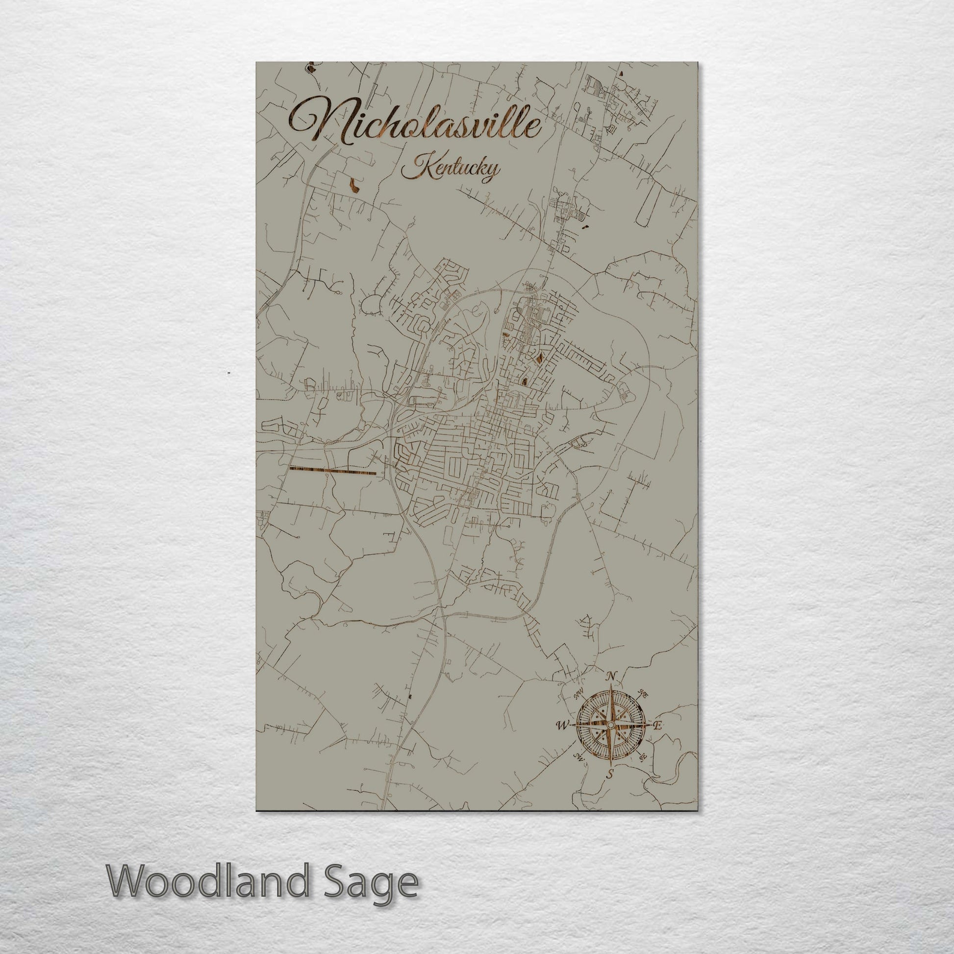 This is a street map of Nicholasville, KY designed by Fire & Pine artists.