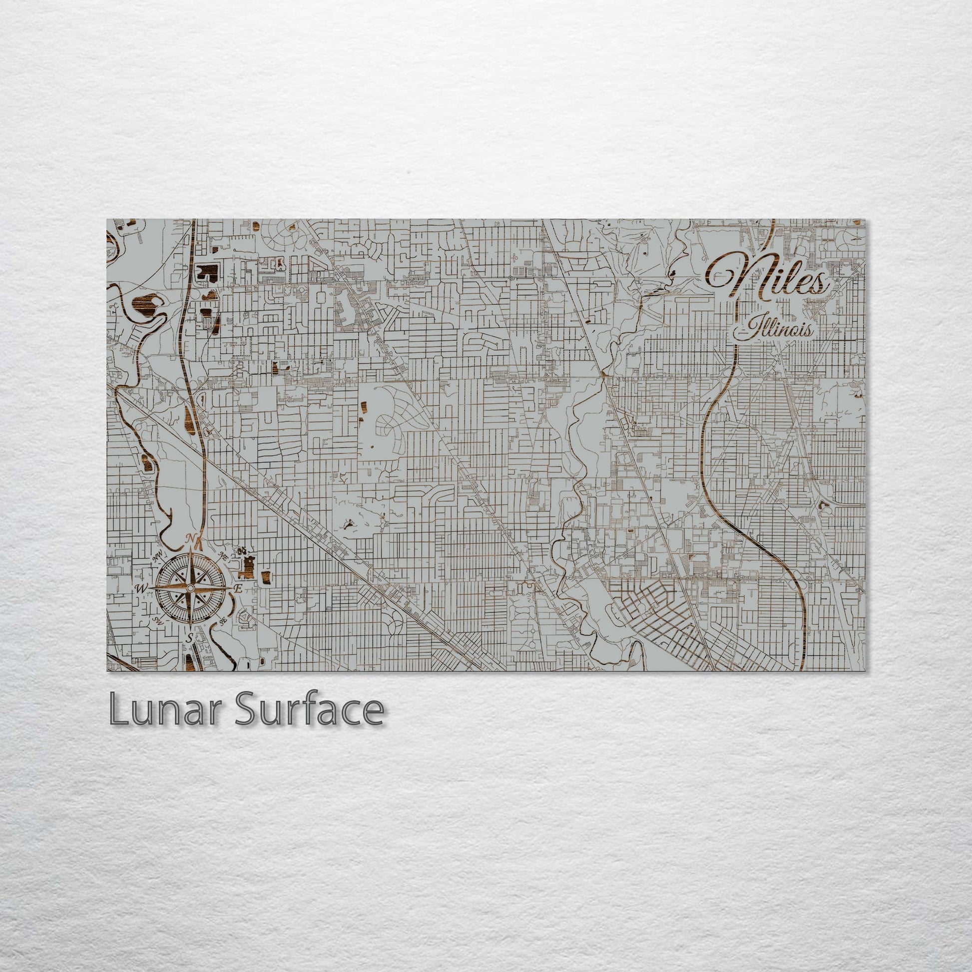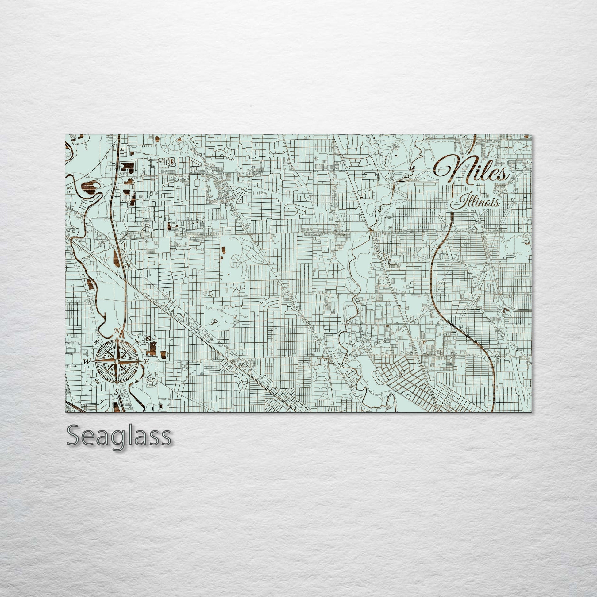 This is a street map of Niles, IL designed by Fire & Pine artists.