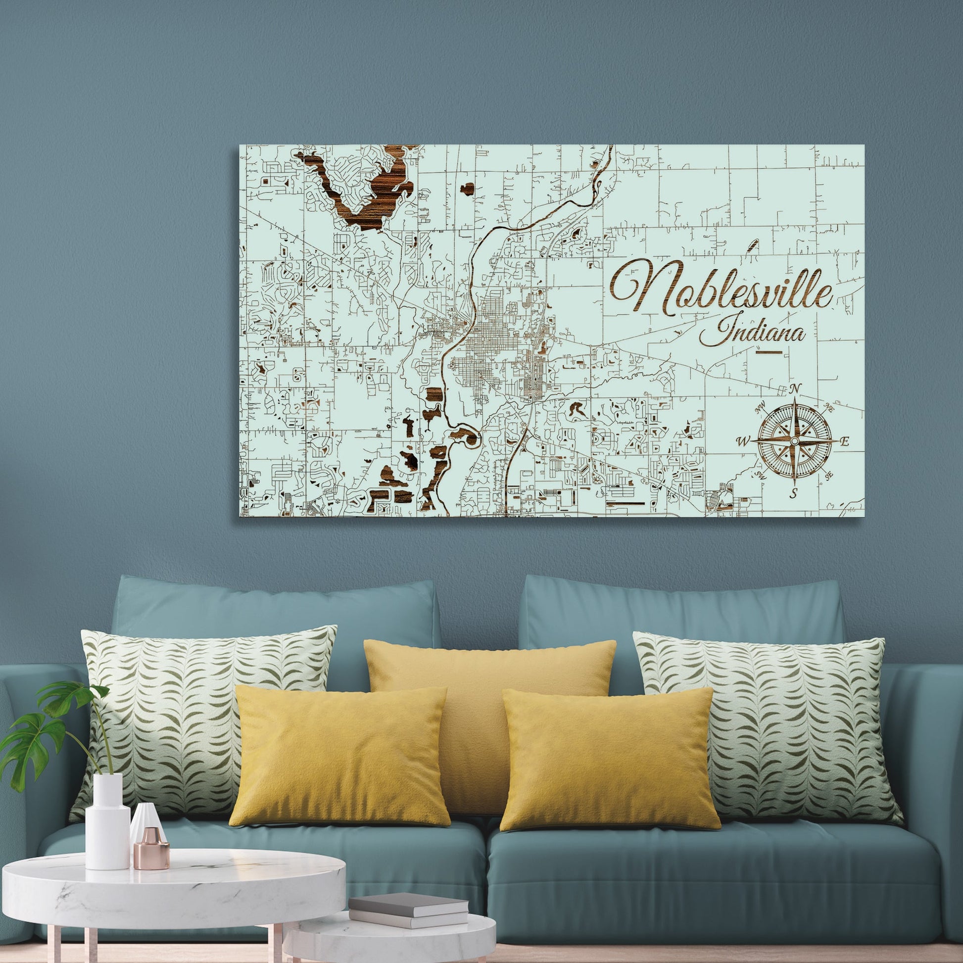 Perfect Gift for Midwestern Urban Map Aficionados: Noblesville, Indiana, wood-engraved street map is a significant addition to any art lover's collection. Expertly crafted from the finest pine wood, this piece vividly illustrates the detailed streets of Noblesville, offering a visually captivating artwork. It's an ideal choice for those who appreciate the intricate design of urban maps, the dynamic nature of city life, and the distinct charm of Noblesville.
