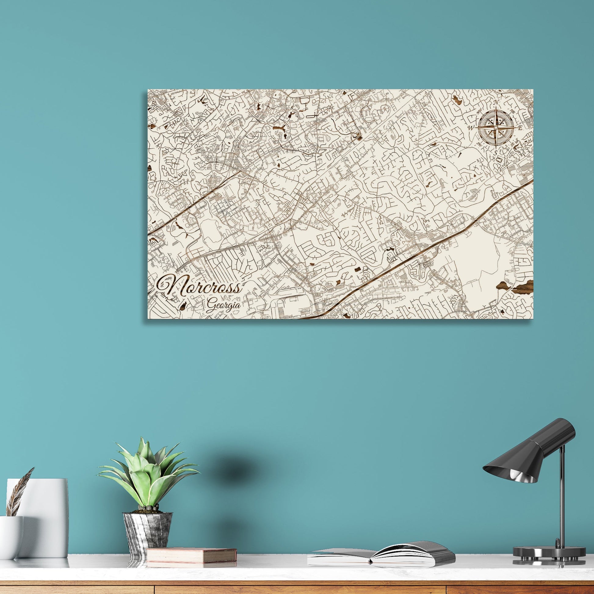 This is a street map of Norcross, GA designed by Fire & Pine artists.