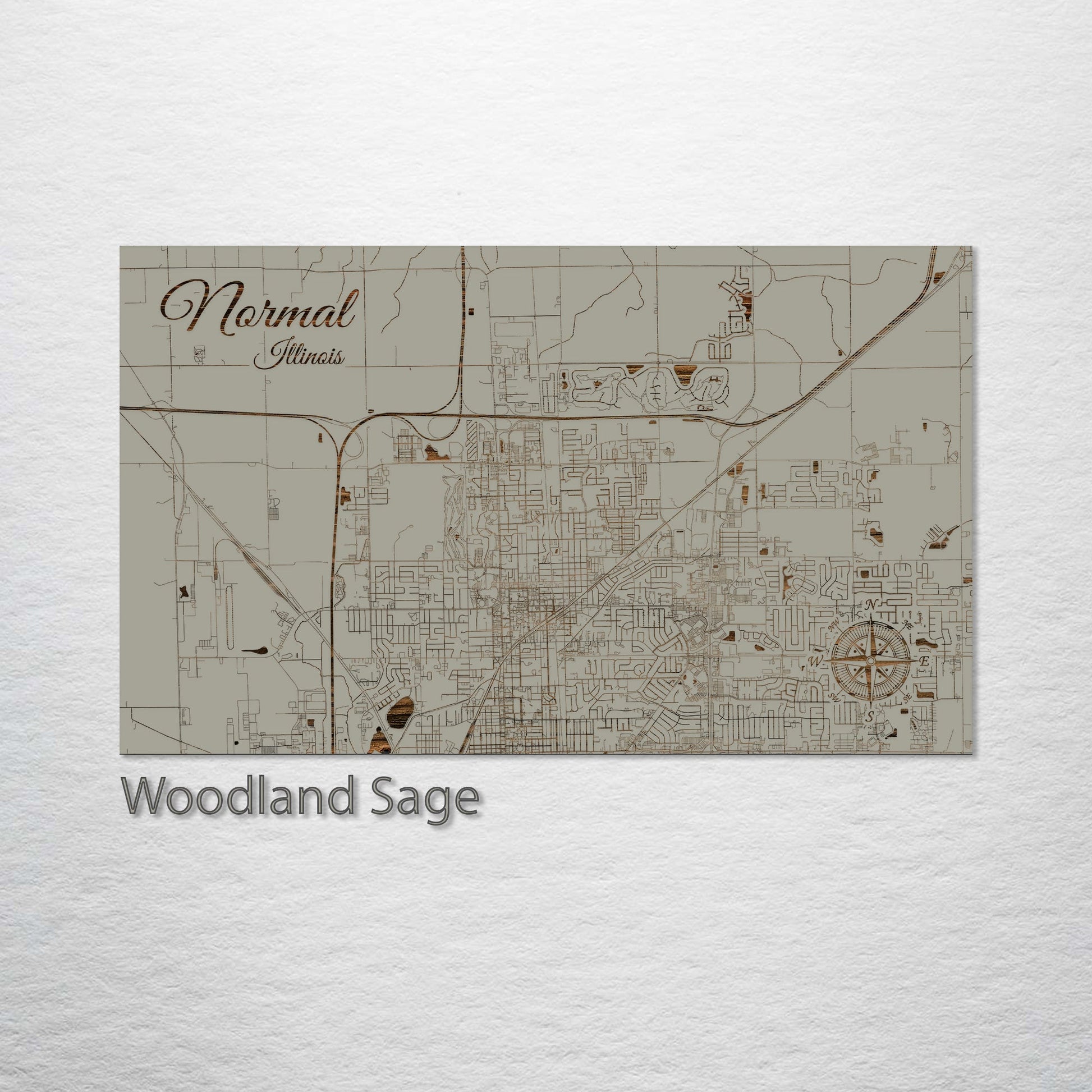 This is a street map of Normal, IL designed by Fire & Pine artists.