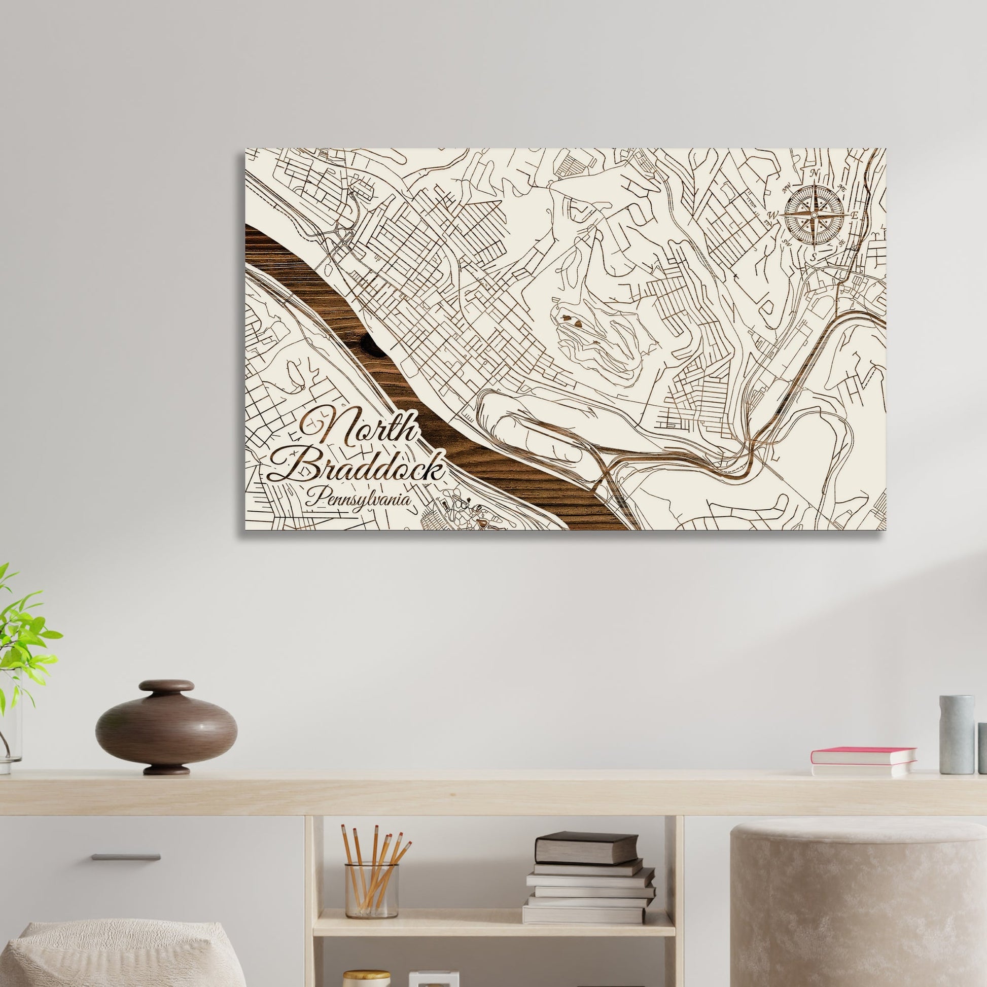 This is a street map of North Braddock, PA designed by Fire & Pine artists.