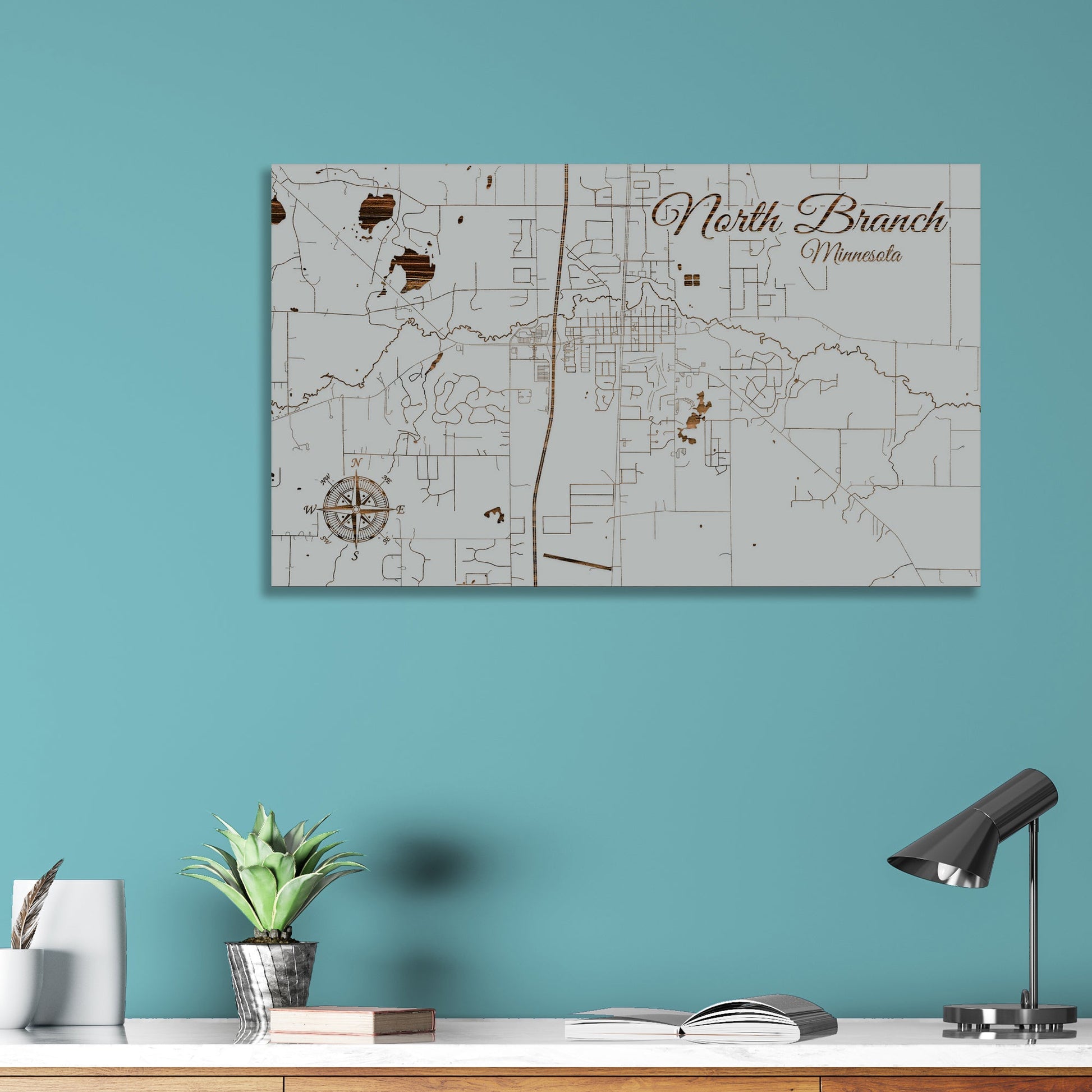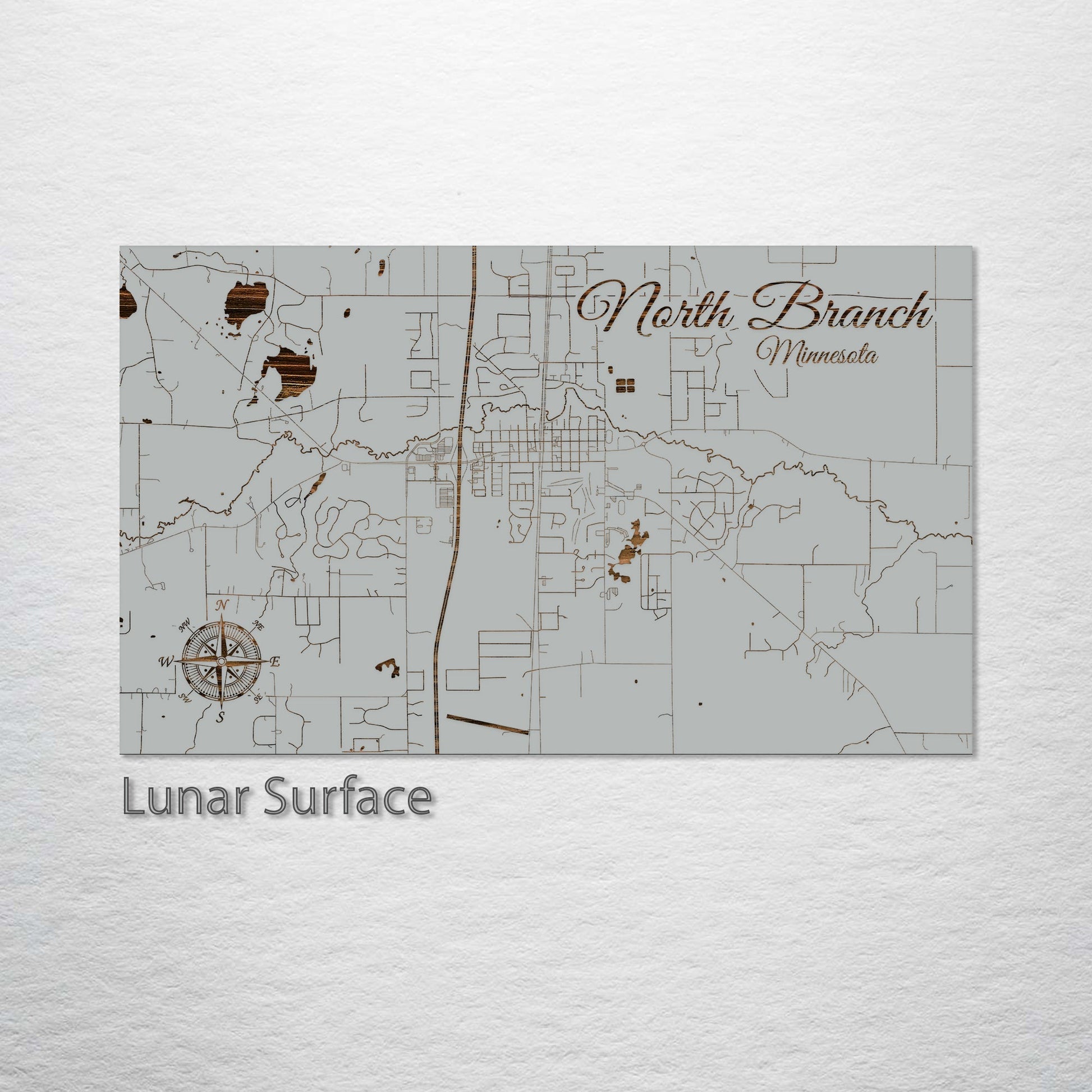 This is a street map of North Branch, MN designed by Fire & Pine artists.
