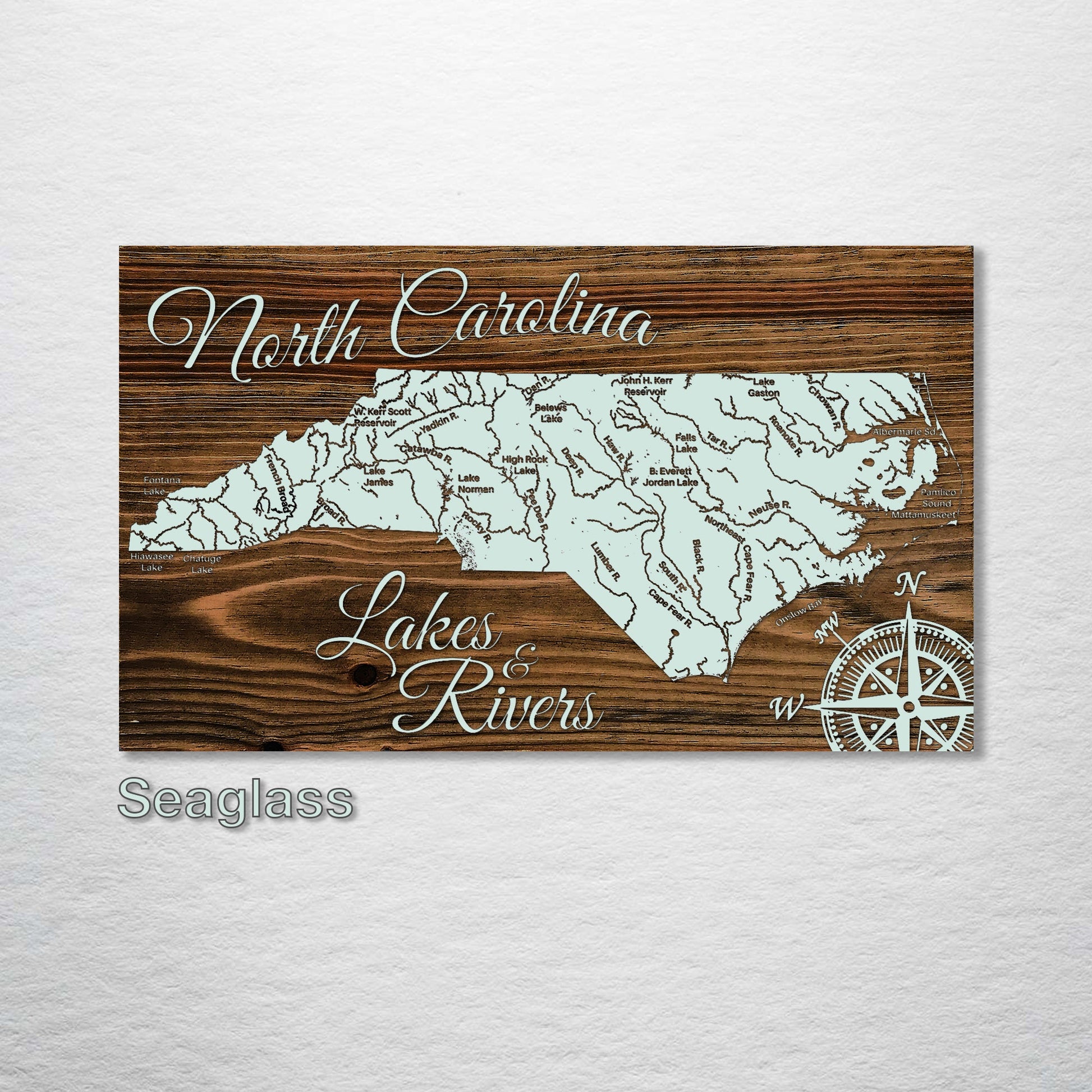 Proudly American Made: This Lakes and Rivers, North Carolina map is designed and produced in the USA, ranking as a highly collectible memorabilia in terms of craftsmanship and artistic value.