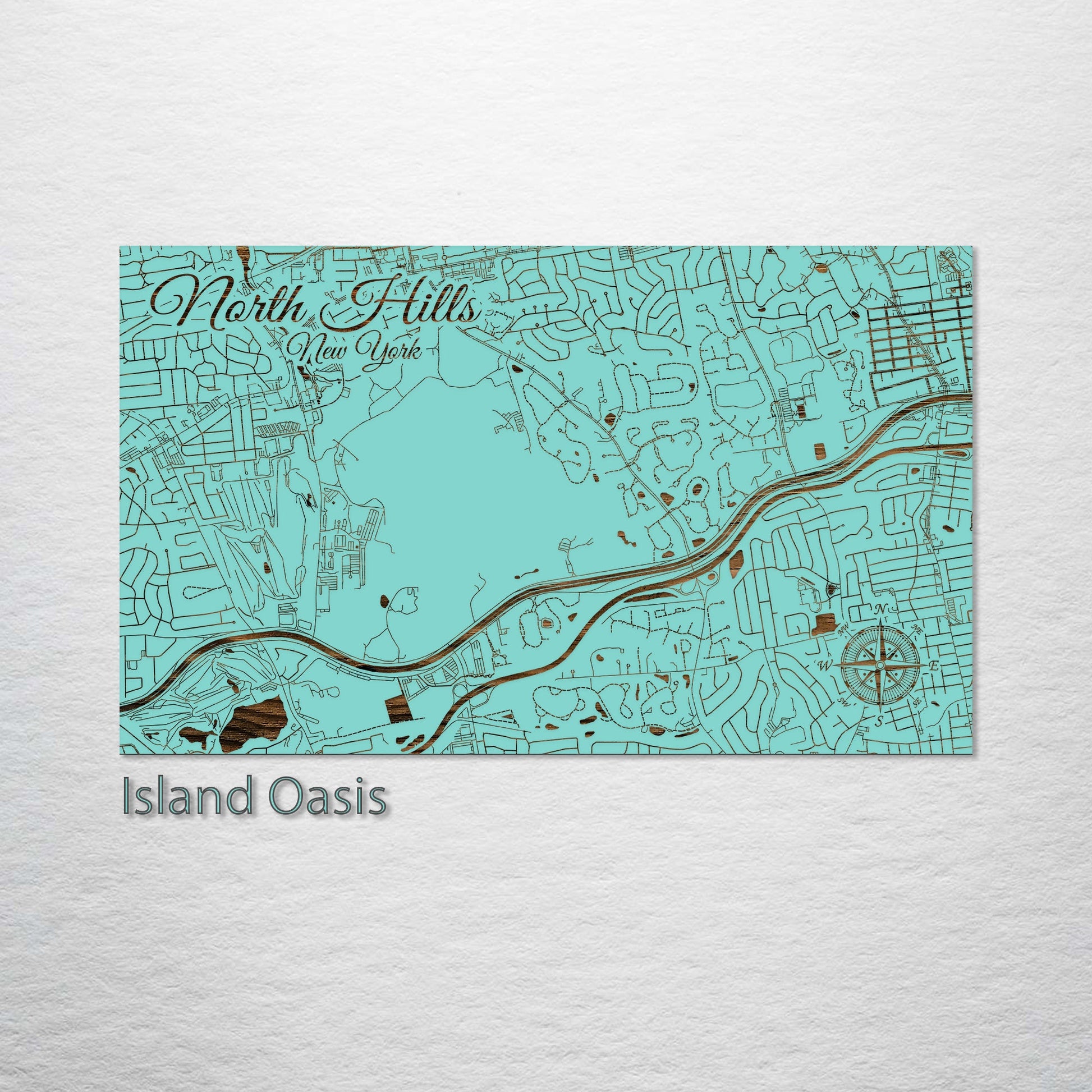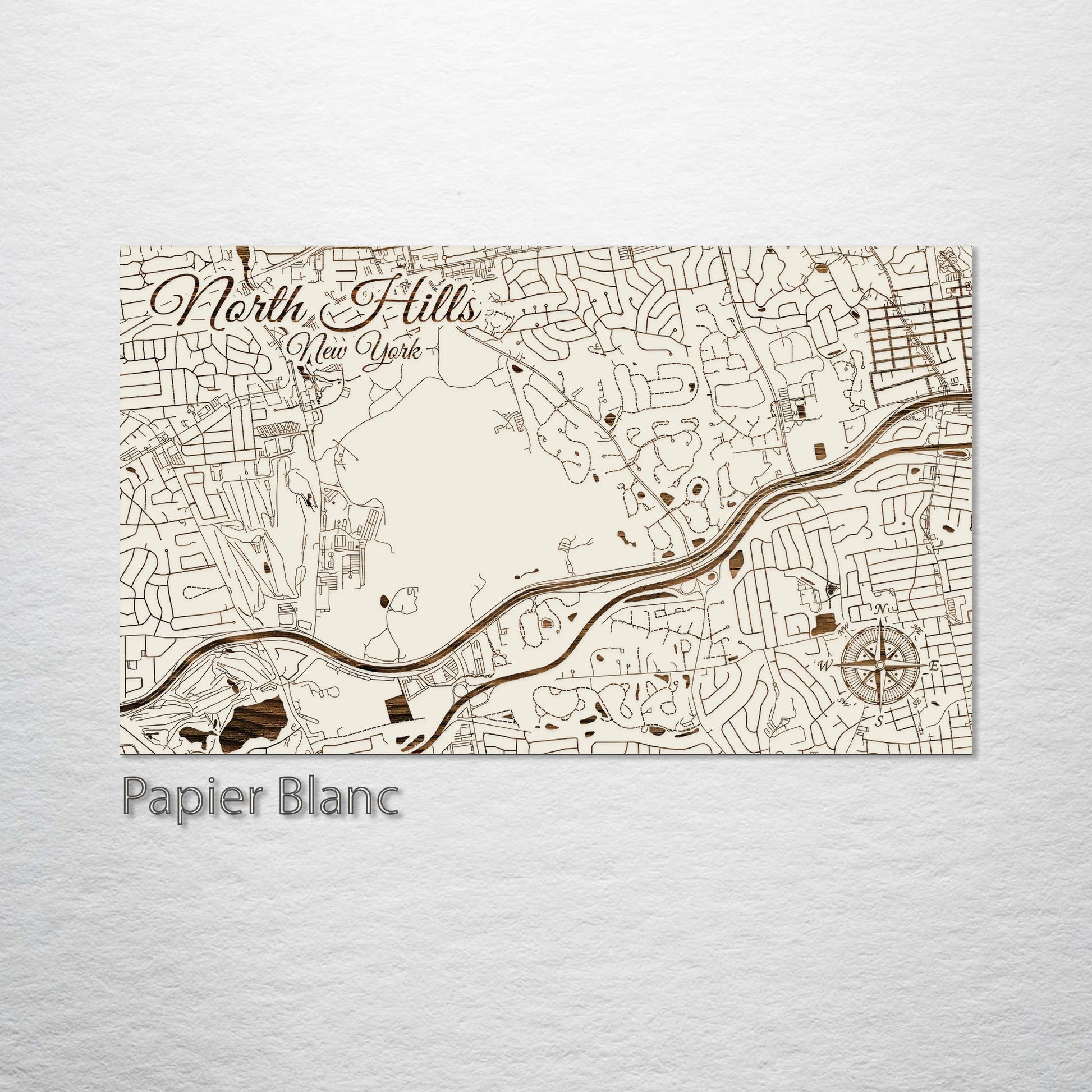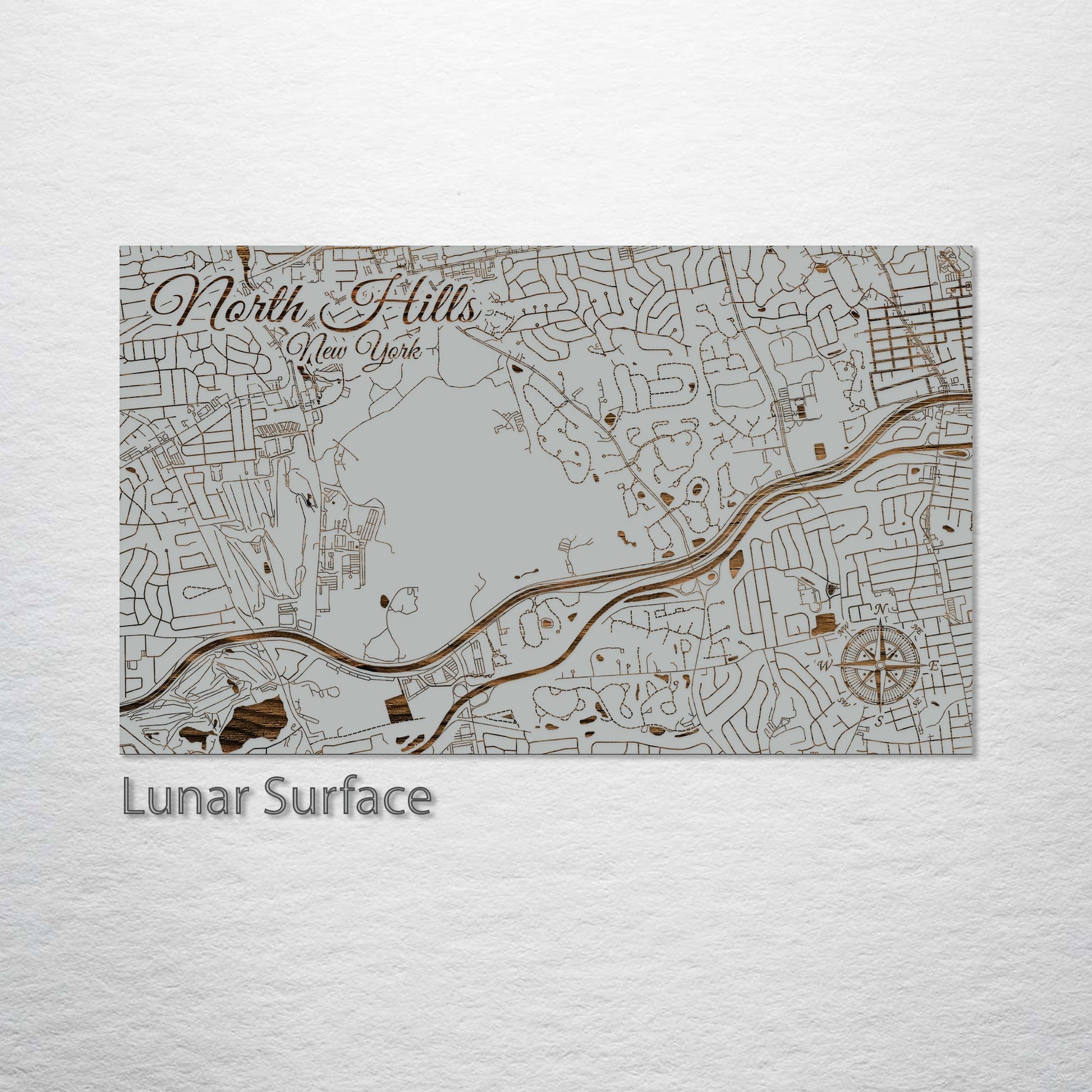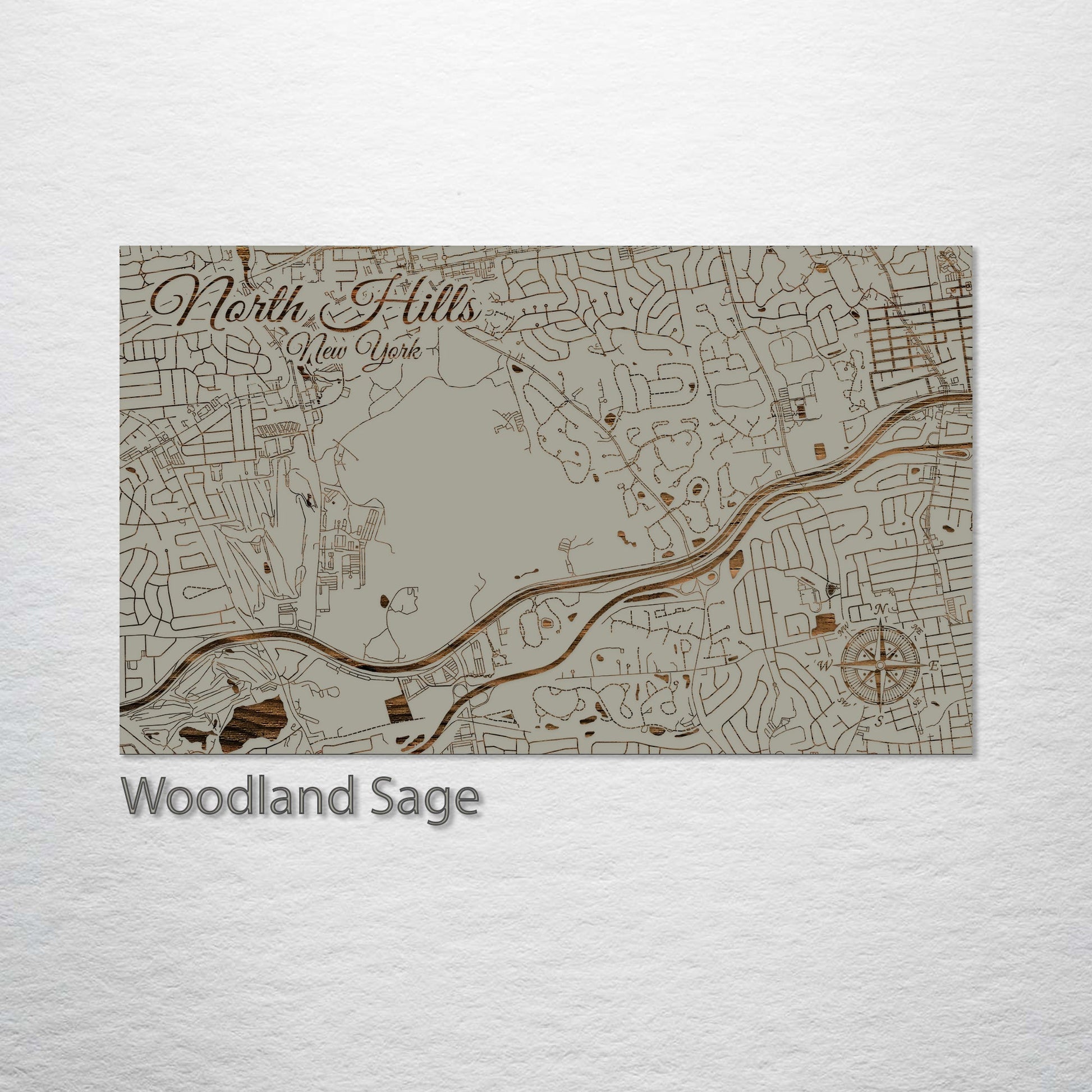This is a street map of North Hills, NY designed by Fire & Pine artists.