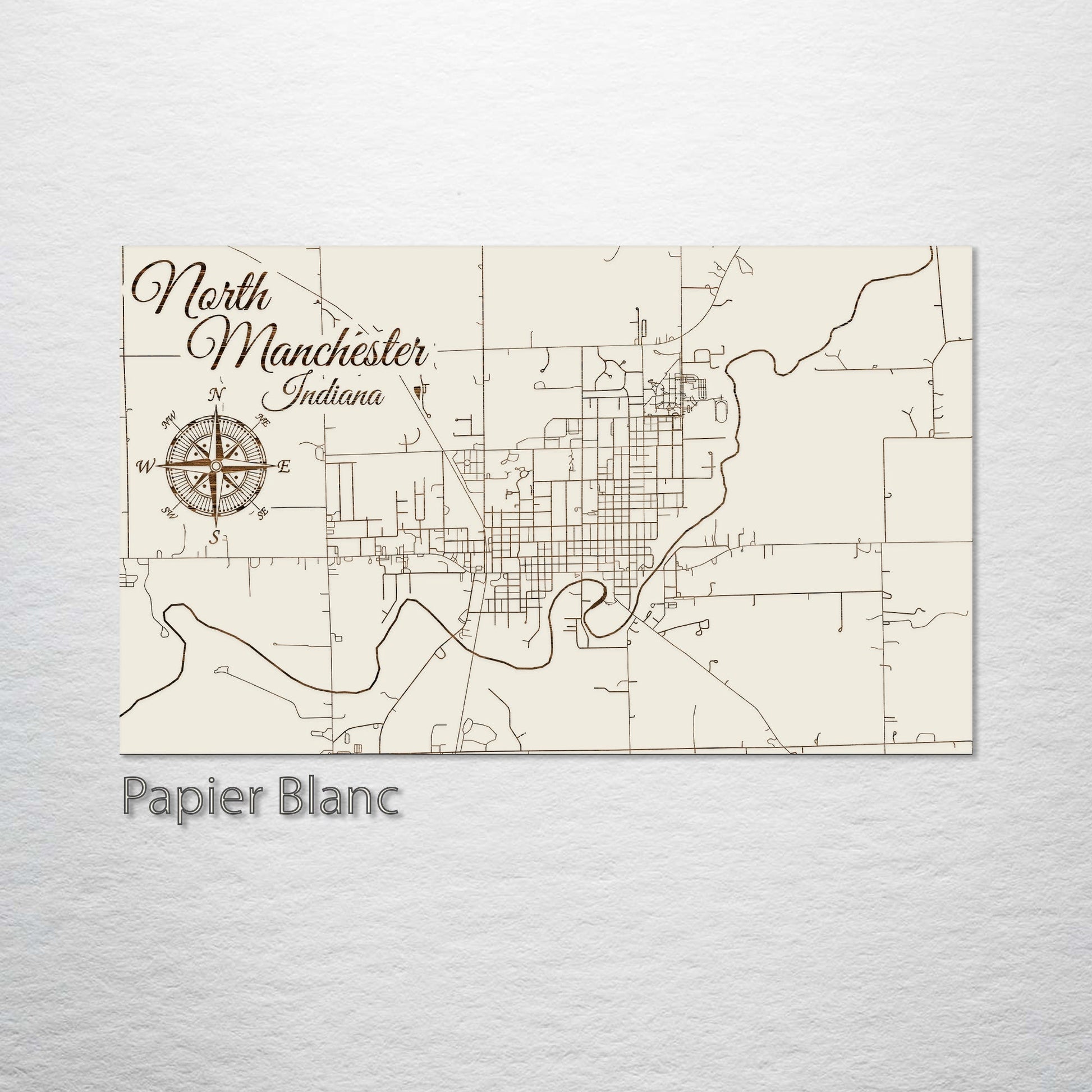 Ideal Gift for Small Town Map Collectors: North Manchester, Indiana, wood-engraved street map is an exceptional addition to any art enthusiast's collection. Carefully crafted from high-quality pine wood, this artwork intricately showcases the streets of North Manchester, offering a visually striking piece. It's perfect for those who have an affinity for the charm of small-town maps, the intricacies of geographic layouts, and the unique allure of North Manchester.