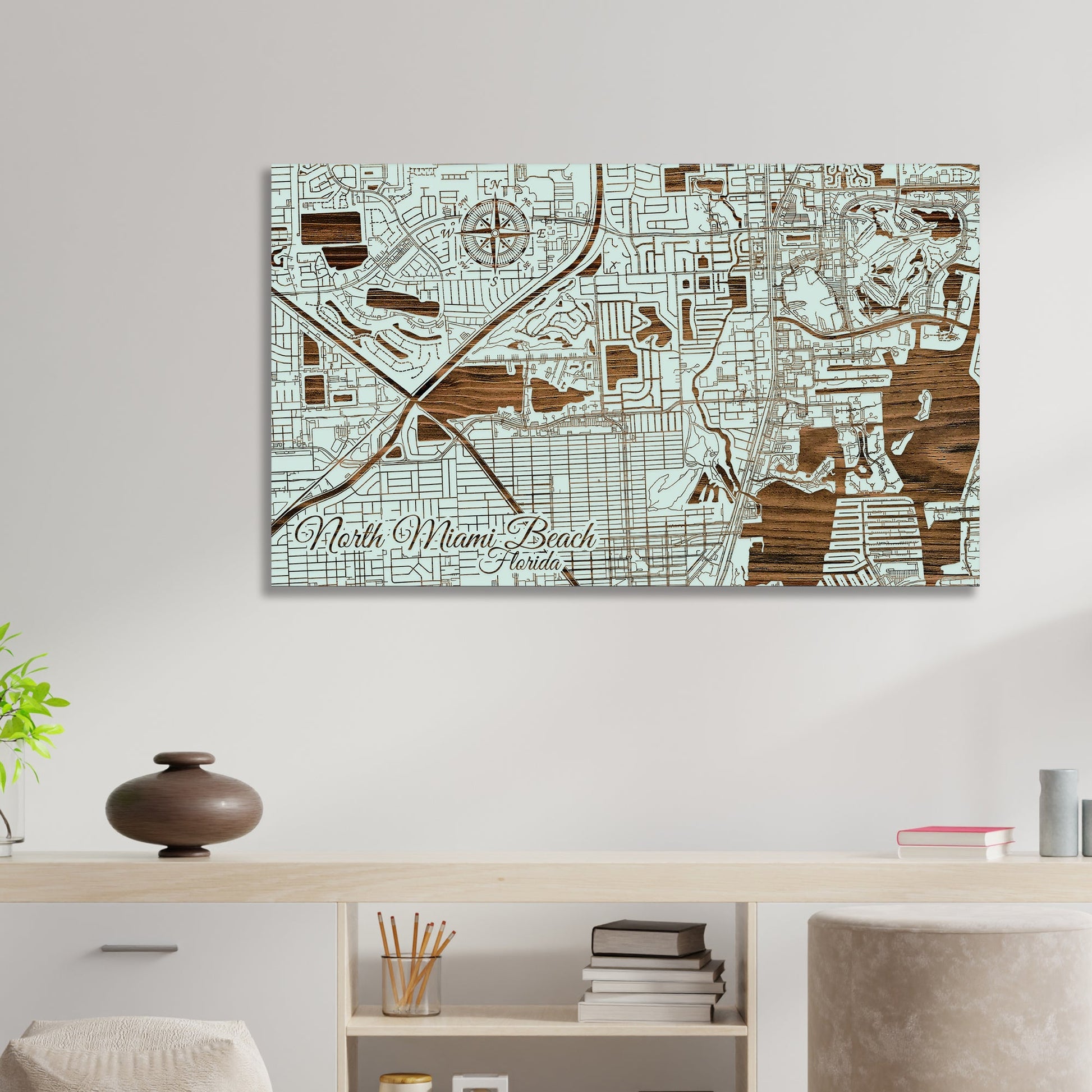 This is a street map of North Miami Beach, FL designed by Fire & Pine artists.