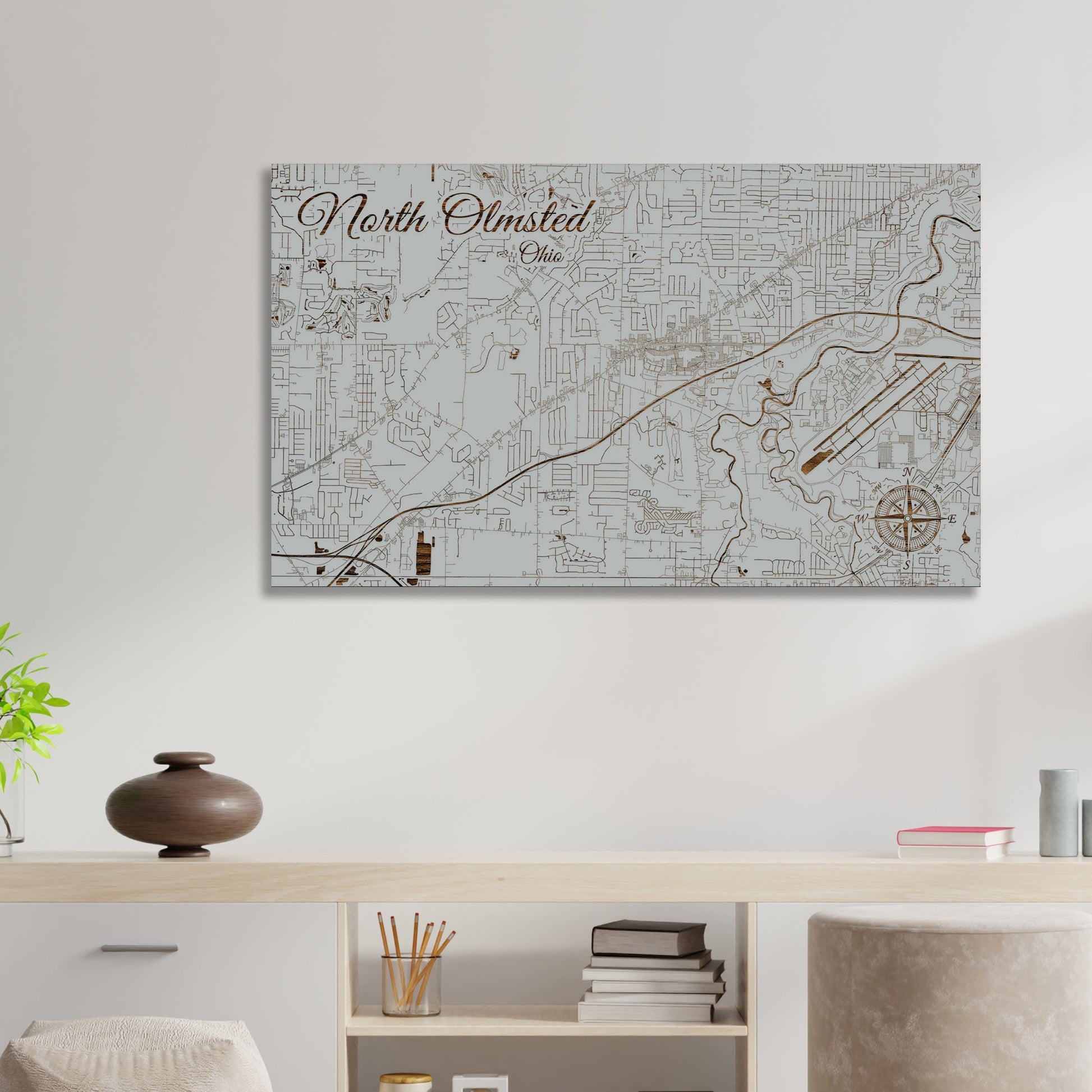 This is a street map of North Olmsted, OH designed by Fire & Pine artists.