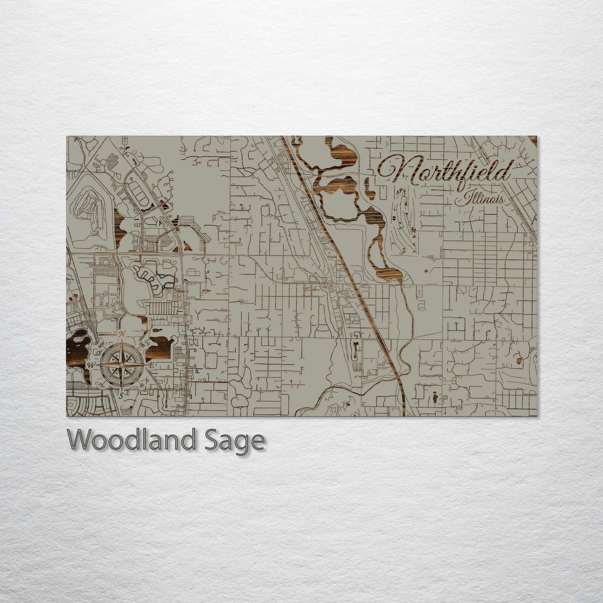 This is a street map of Northfield, IL designed by Fire & Pine artists.