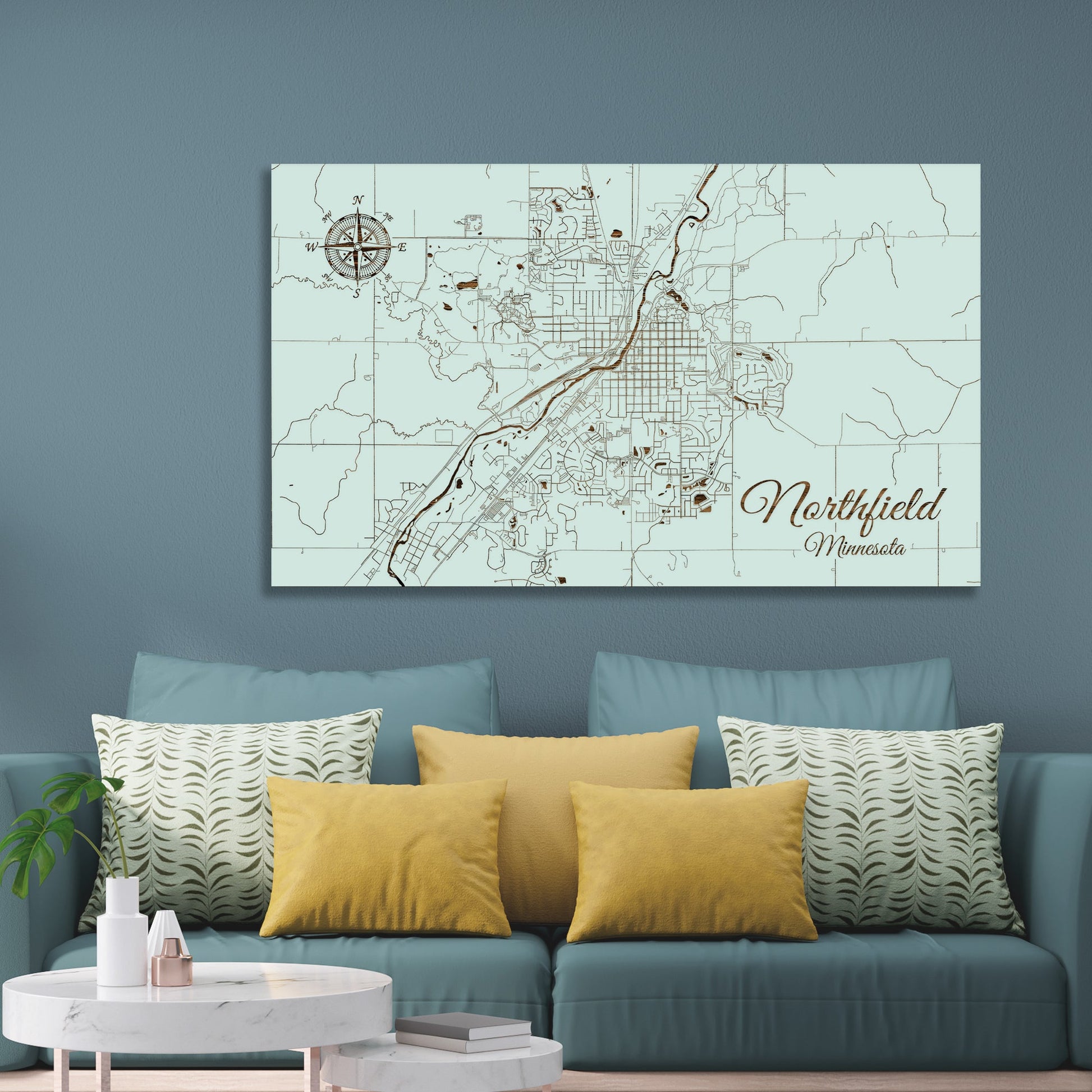This is a street map of Northfield, MN designed by Fire & Pine artists.
