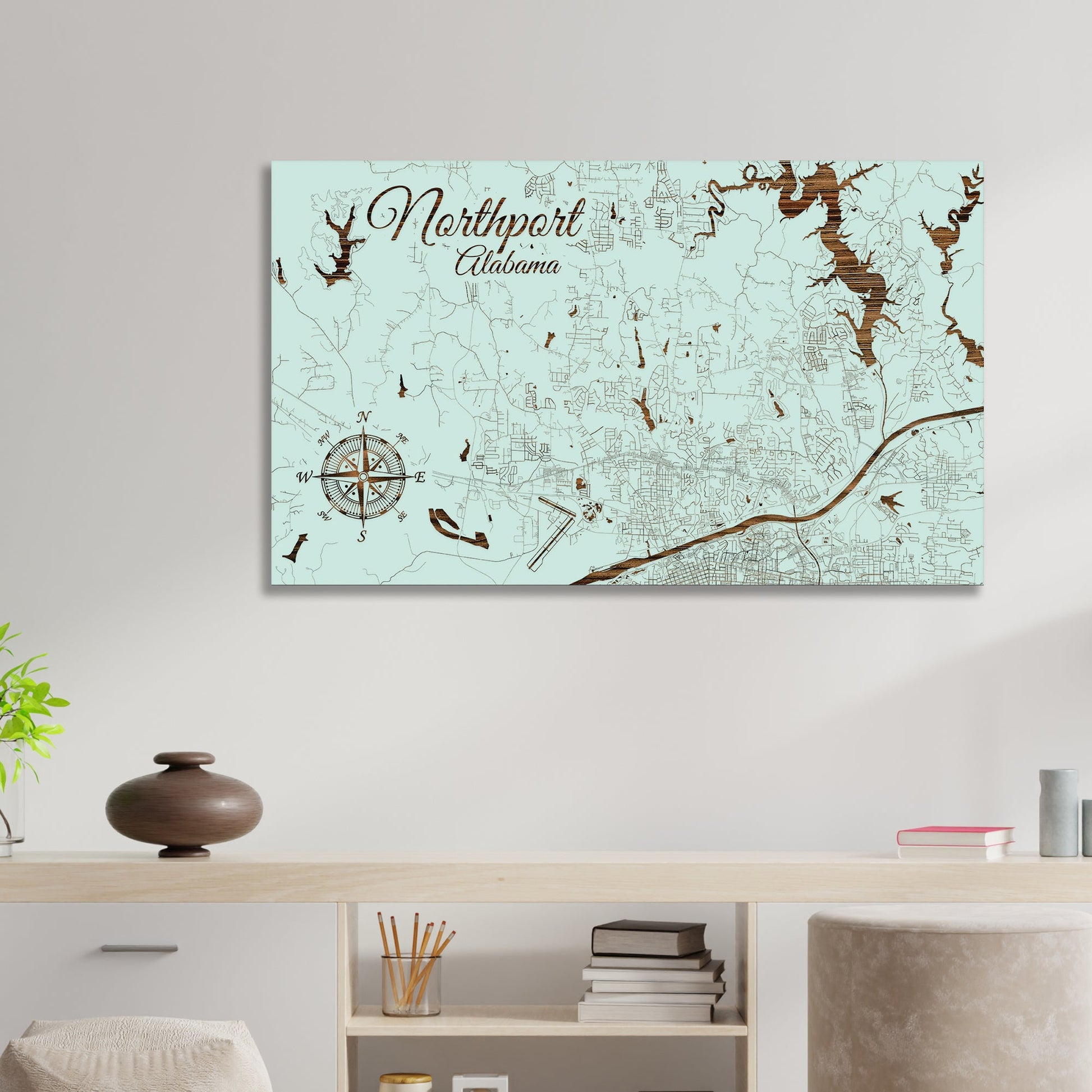 This is a street map of Northport, AL designed by Fire & Pine artists.