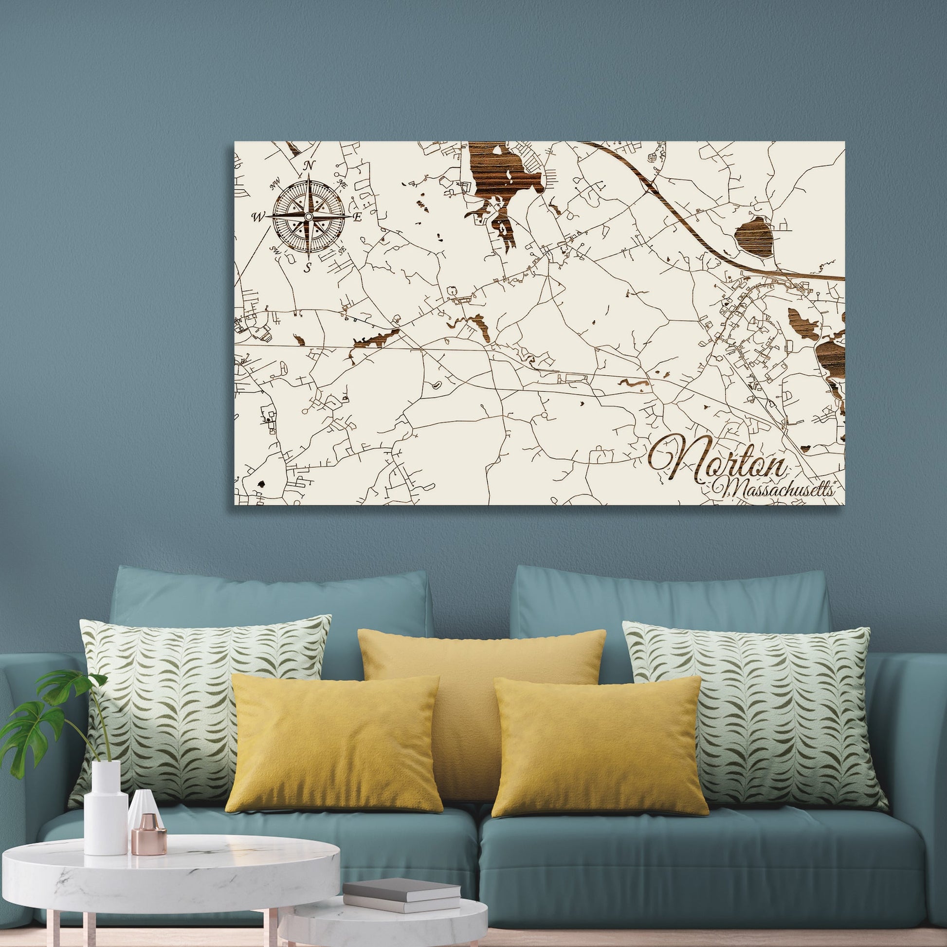 This is a street map of Norton, MA designed by Fire & Pine artists.