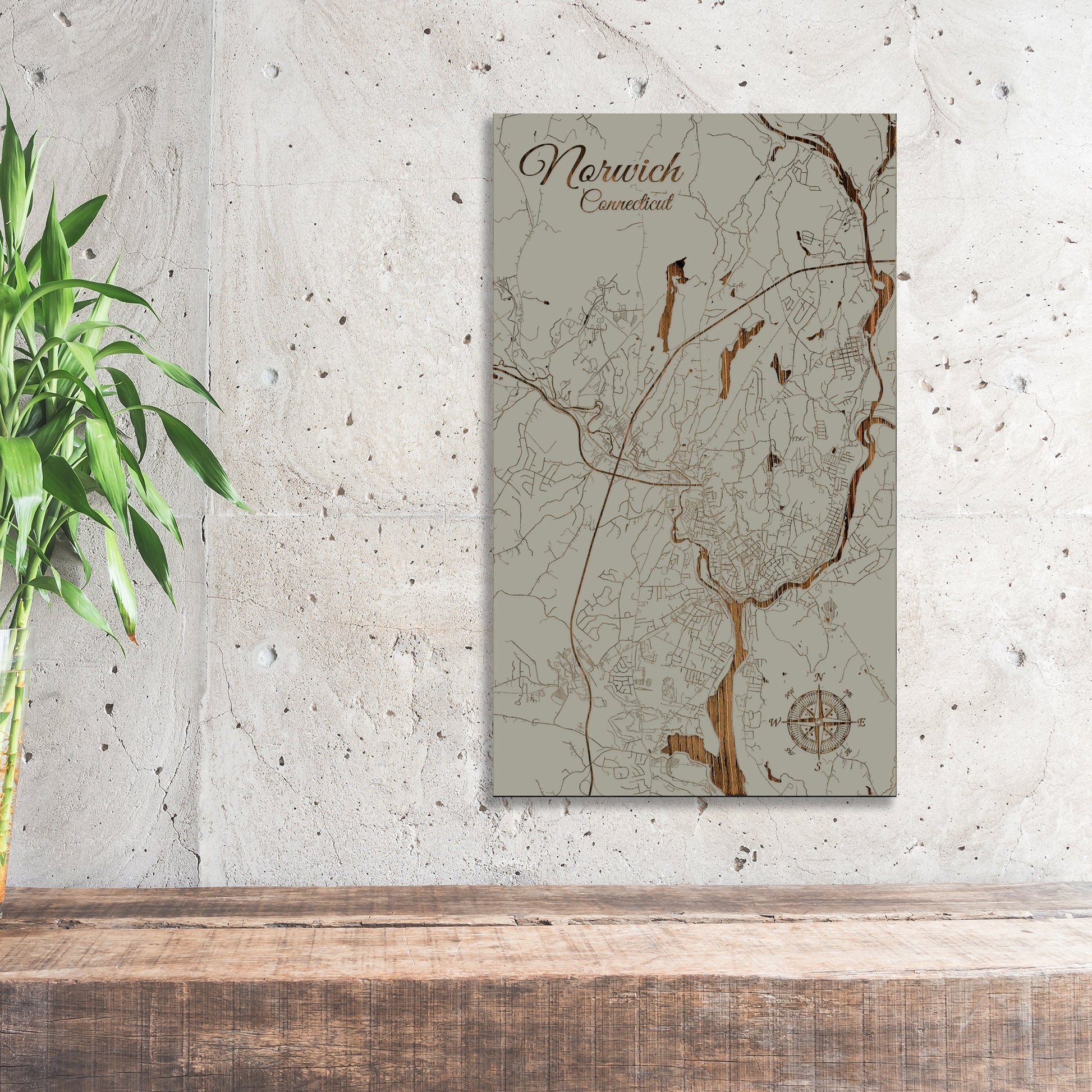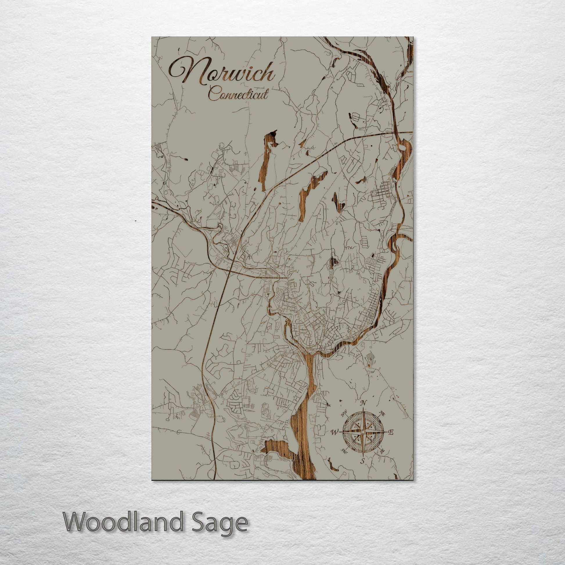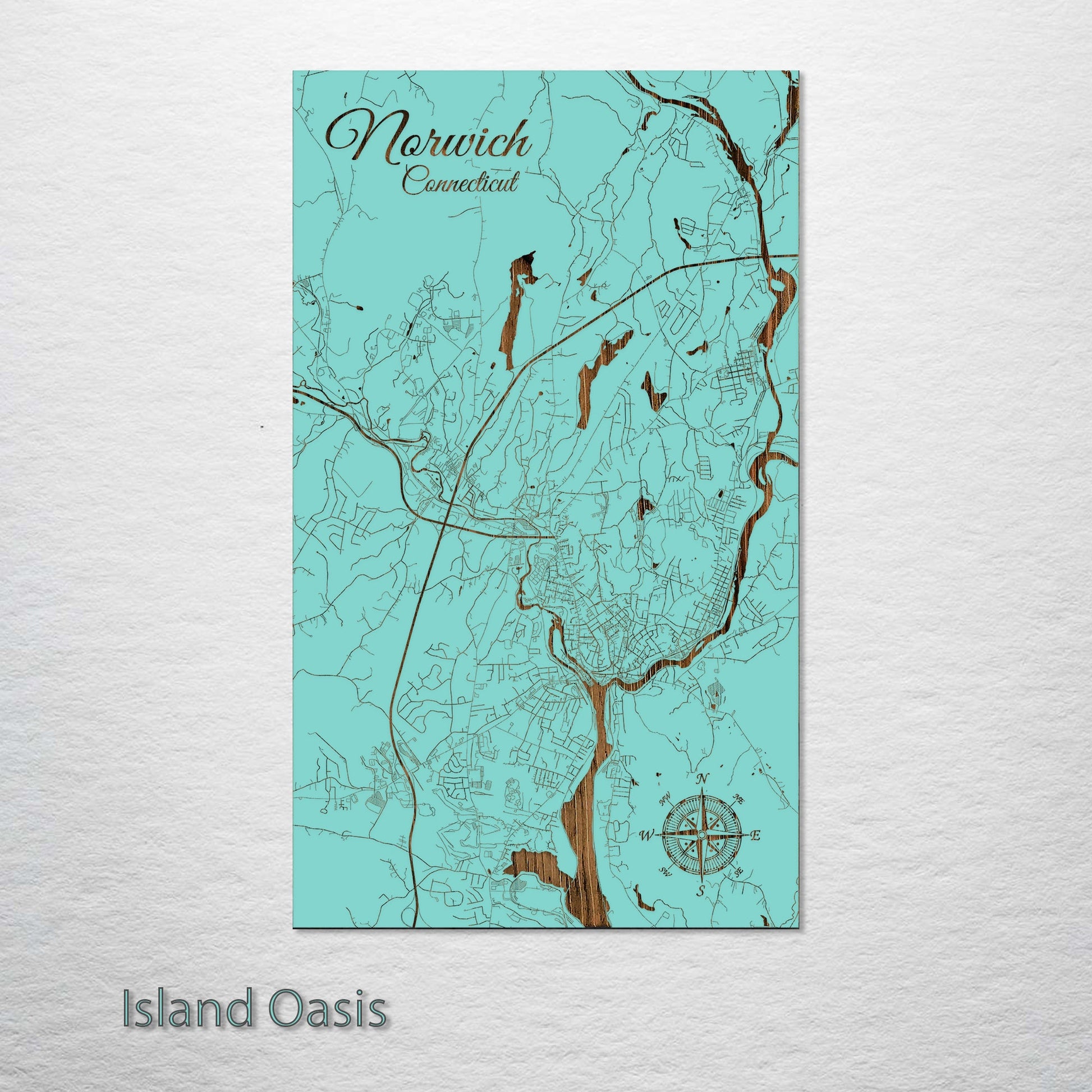 This is a street map of Norwich, CT designed by Fire & Pine artists.