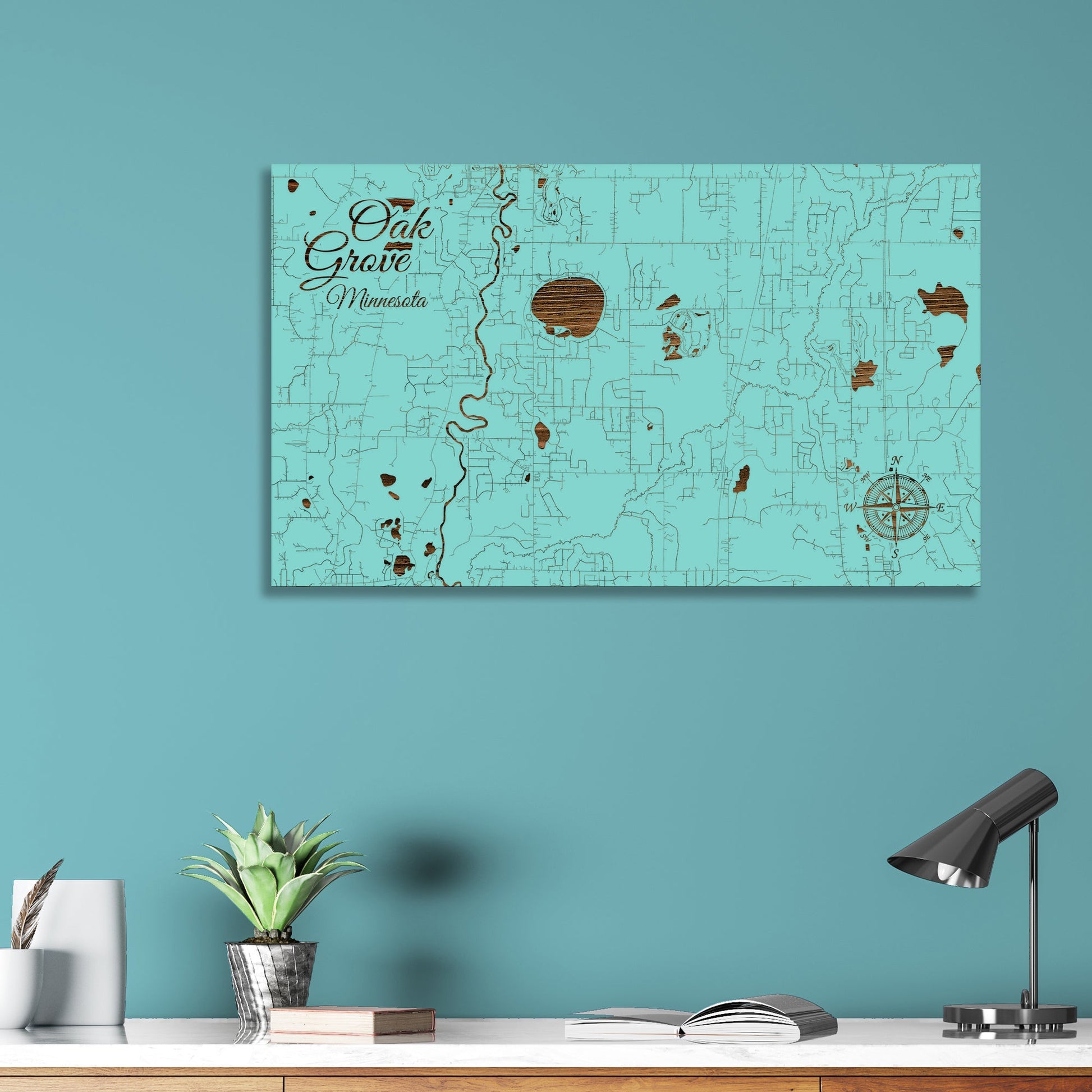 This is a street map of Oak Grove, MN designed by Fire & Pine artists.