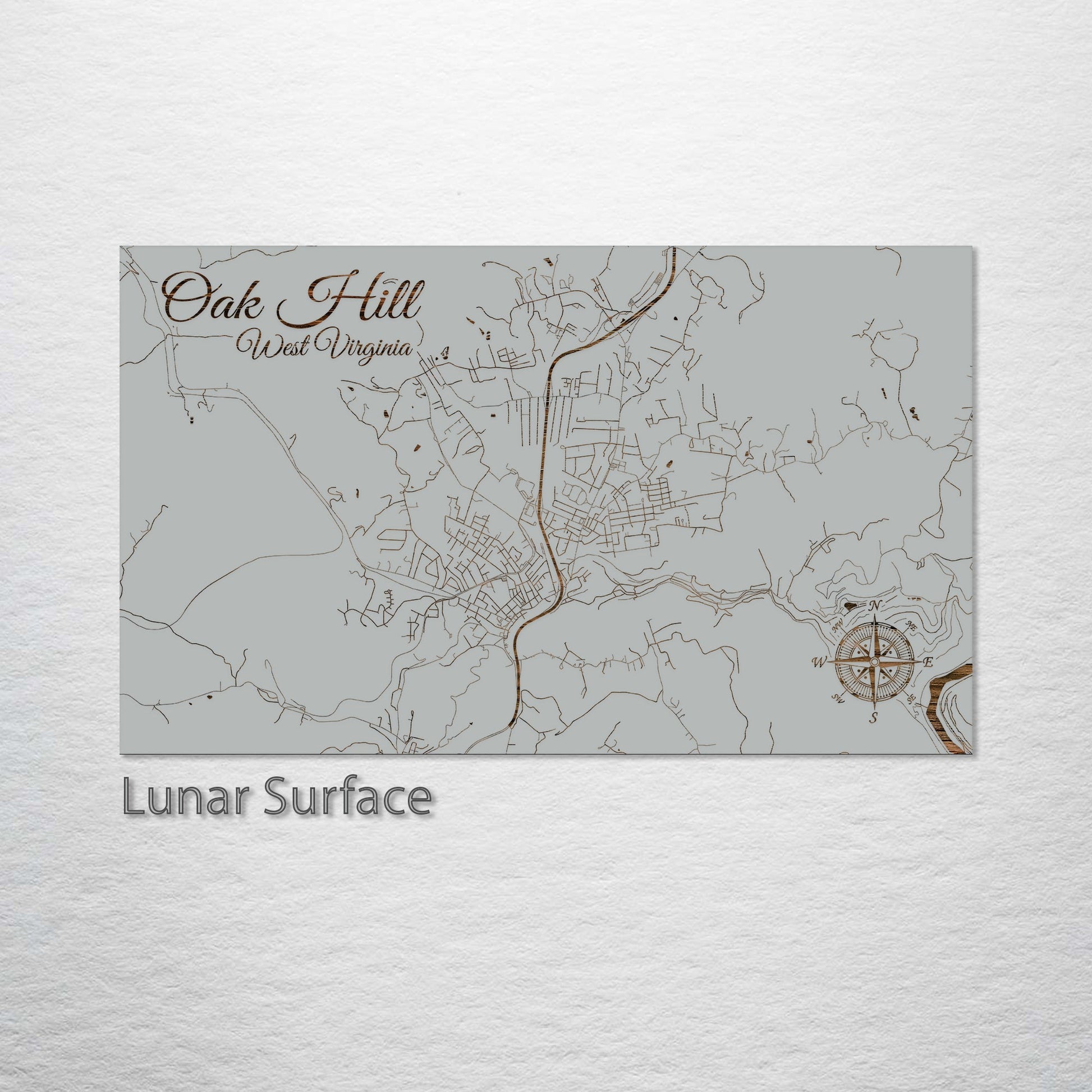 This is a street map of Oak Hill, WV designed by Fire & Pine artists.