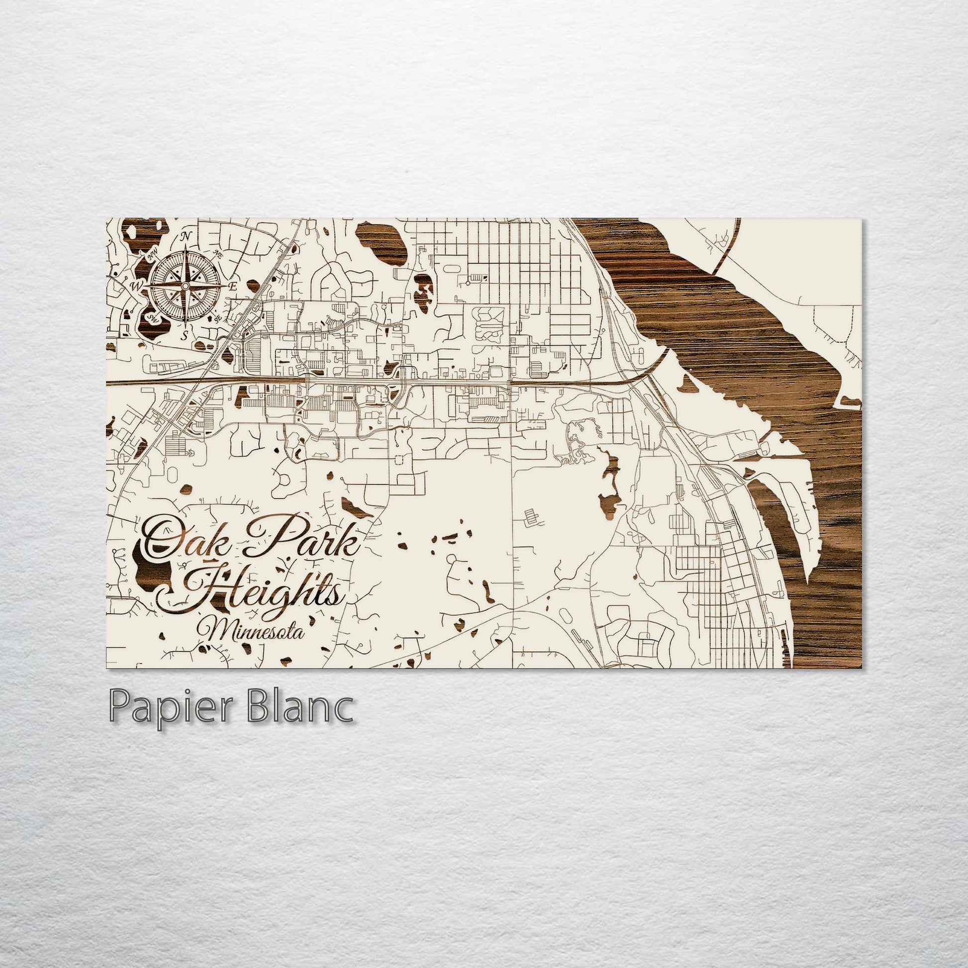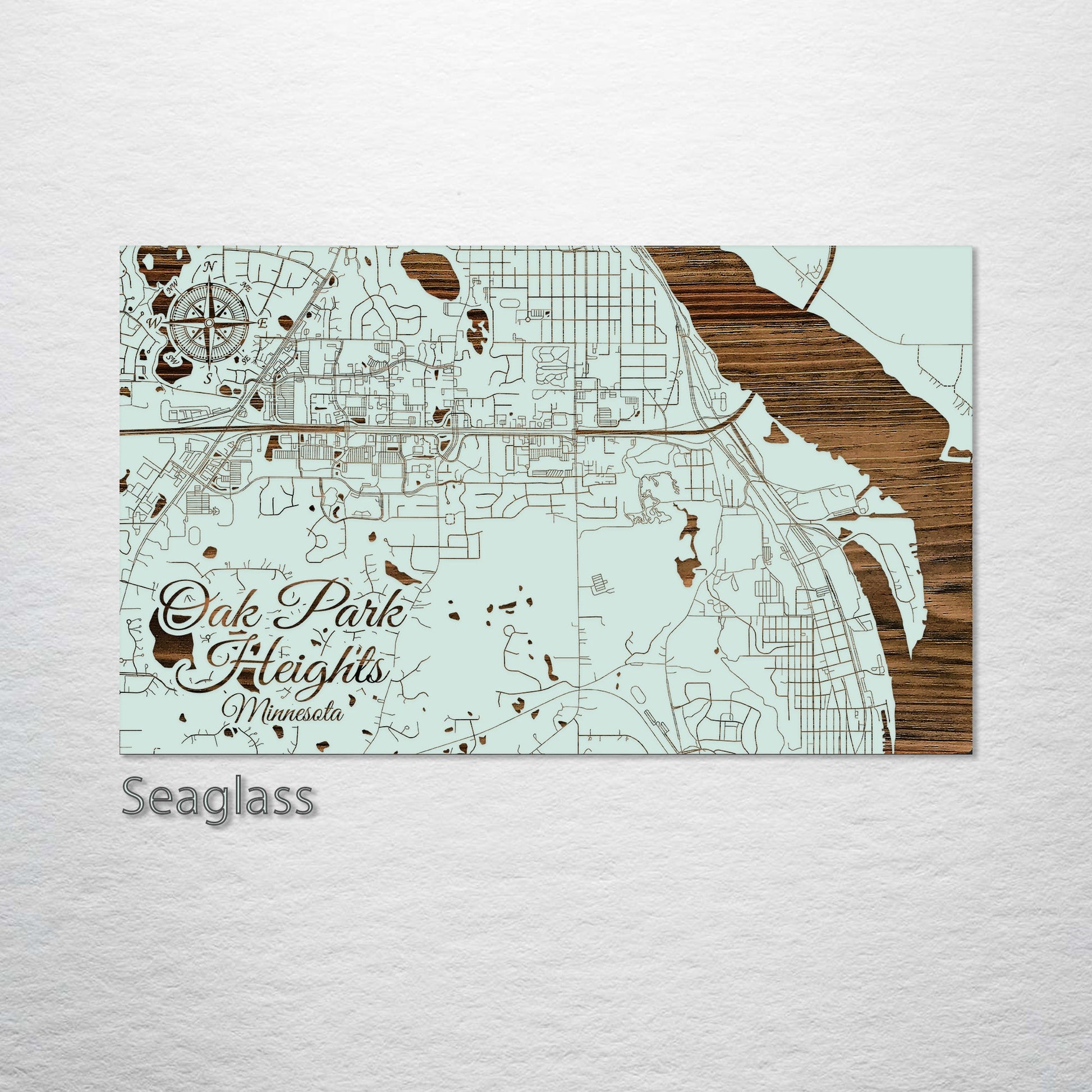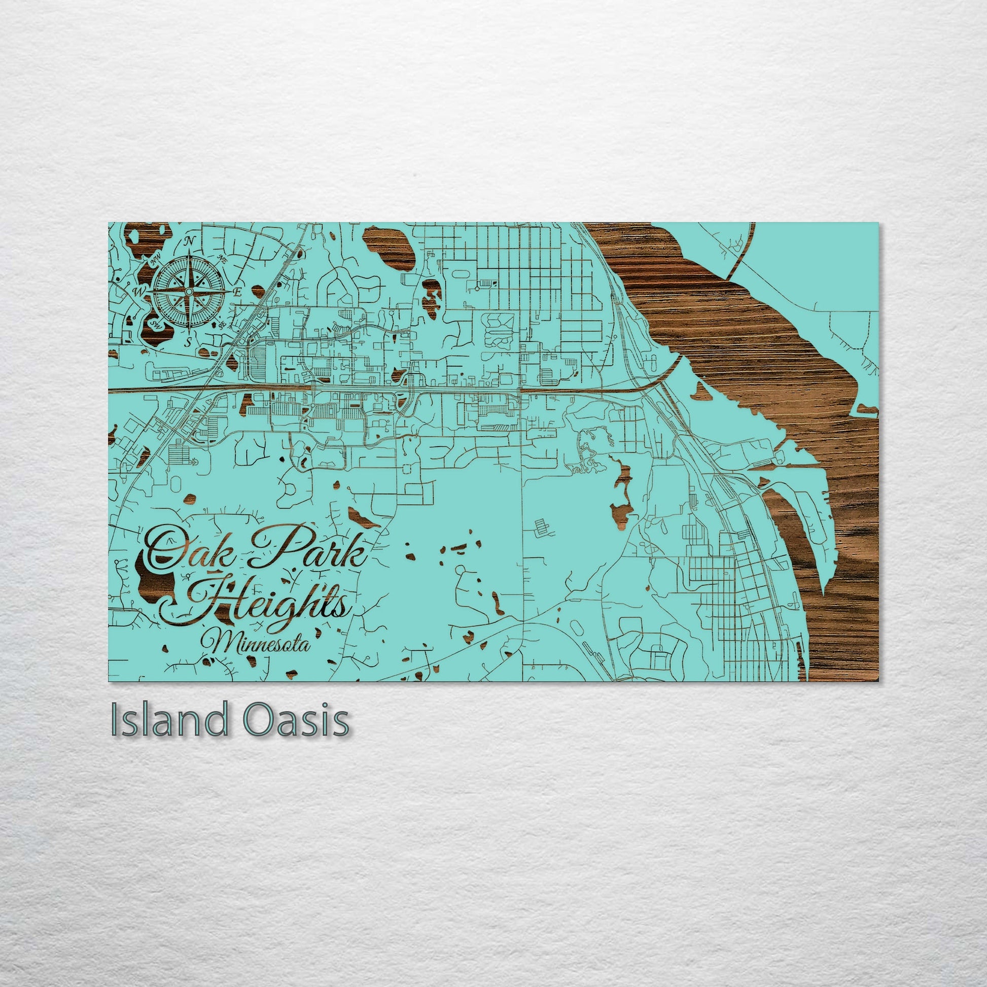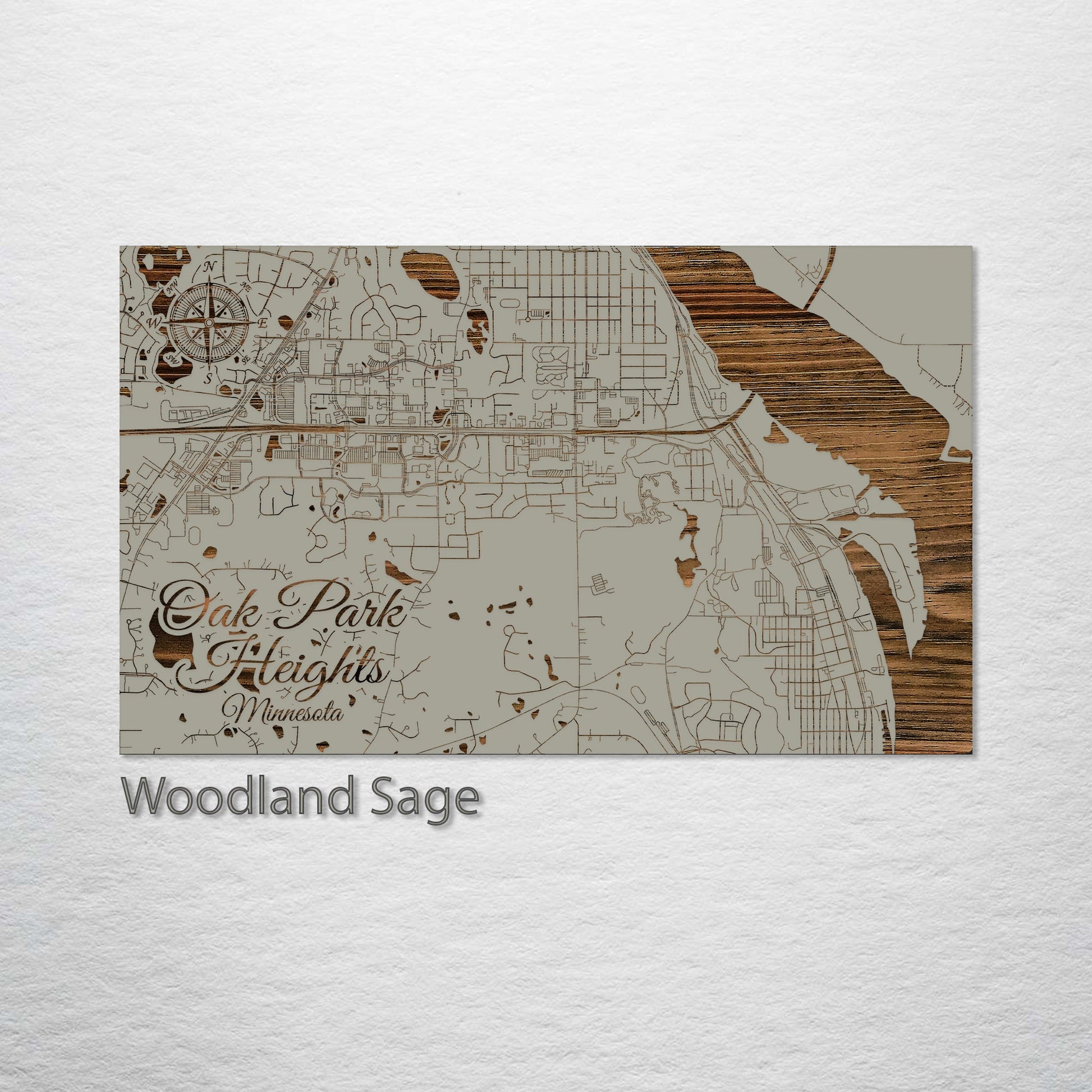 This is a street map of Oak Park Heights, MN designed by Fire & Pine artists.
