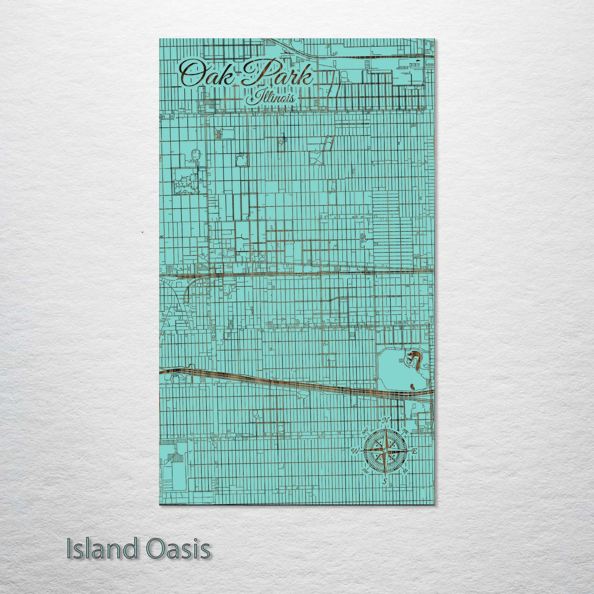 Outstanding Gift for Map Collectors: This wood-engraved Oak Park, Illinois street map is an exceptional piece for any art and map collection. Crafted from top-notch pine wood, it vividly portrays the streets of Oak Park with precision and artistic flair, making it a remarkable item. This map is an ideal choice for those with a passion for detailed cartography and artistic representations of urban layouts.