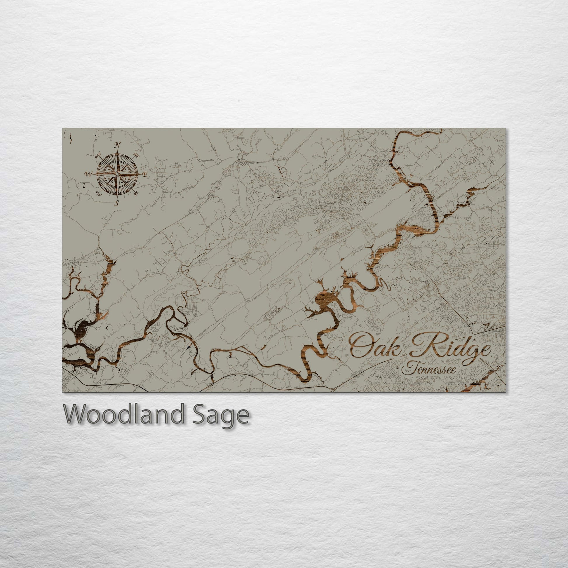 This is a street map of Oak Ridge, TN designed by Fire & Pine artists.