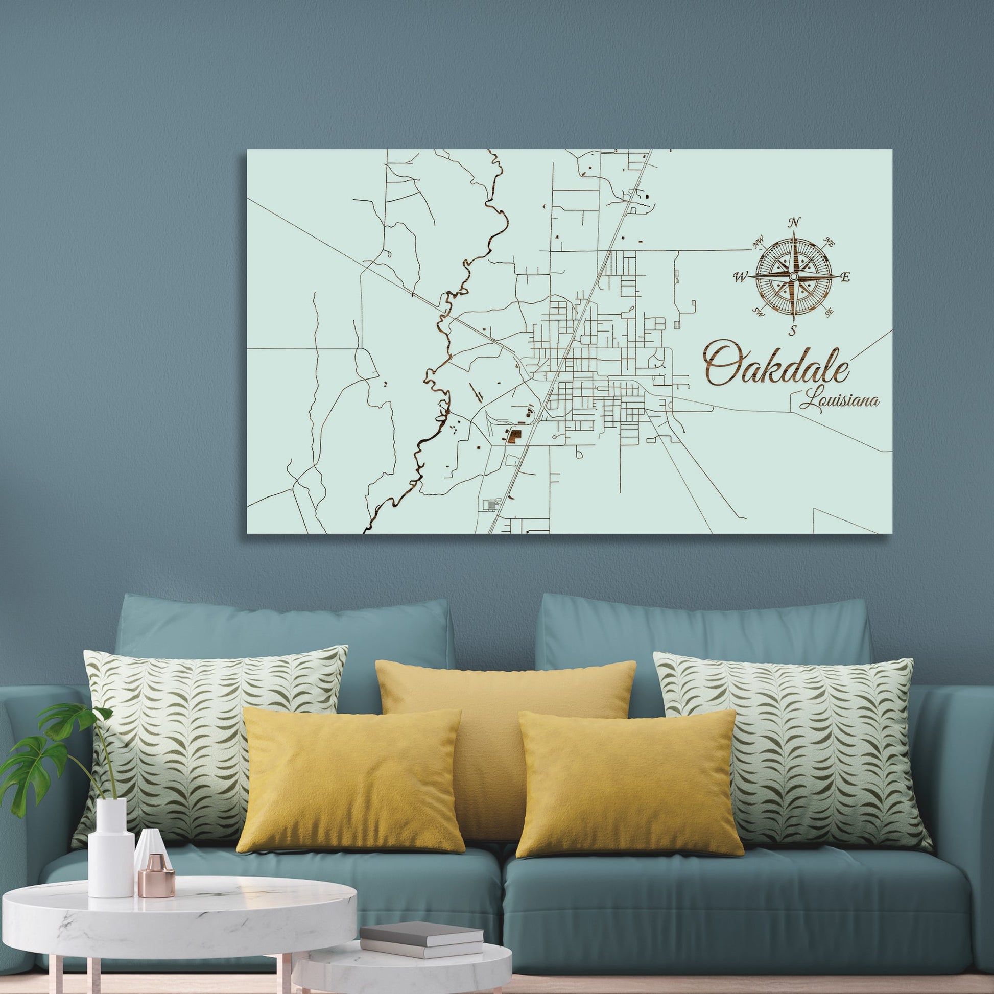 This is a street map of Oakdale, LA designed by Fire & Pine artists.