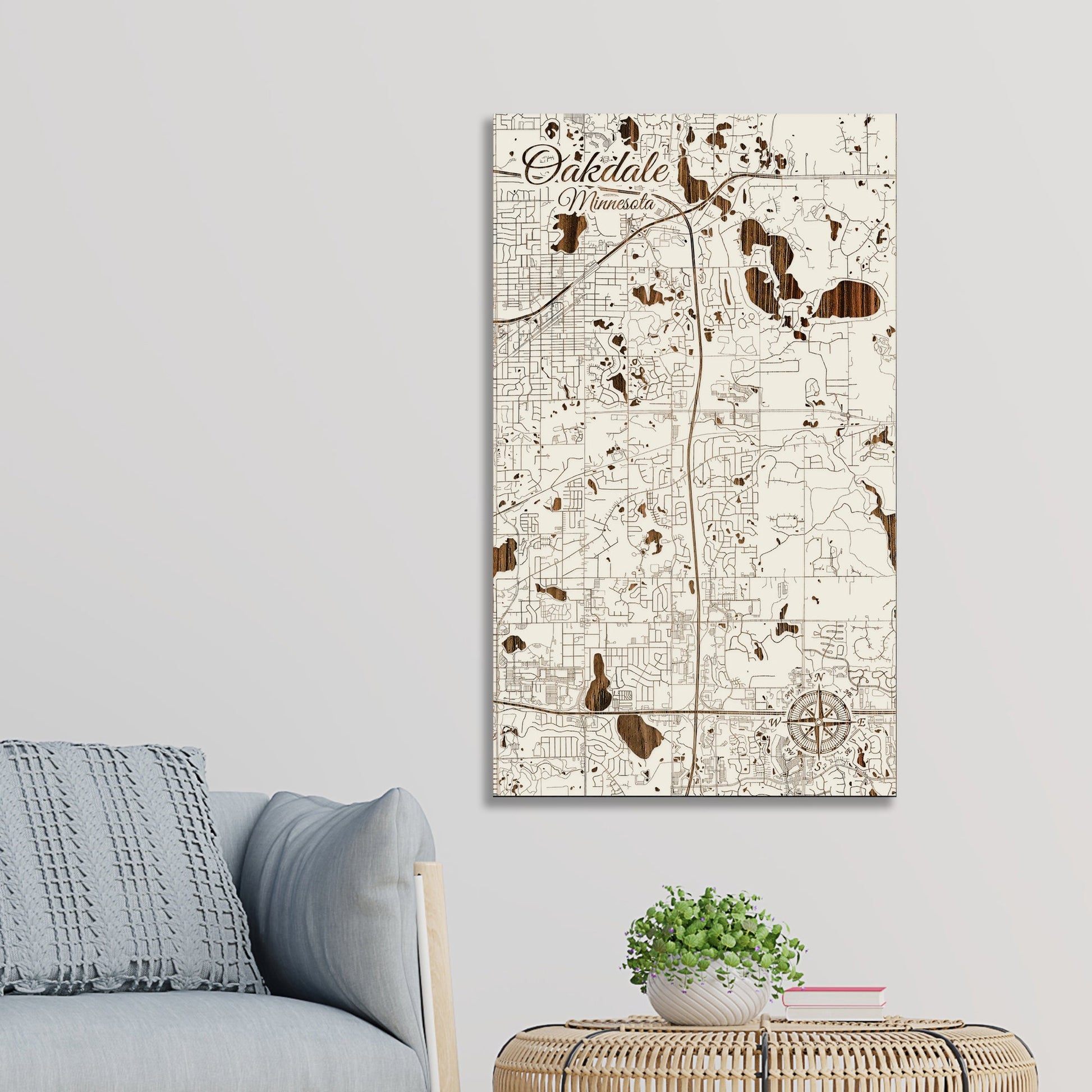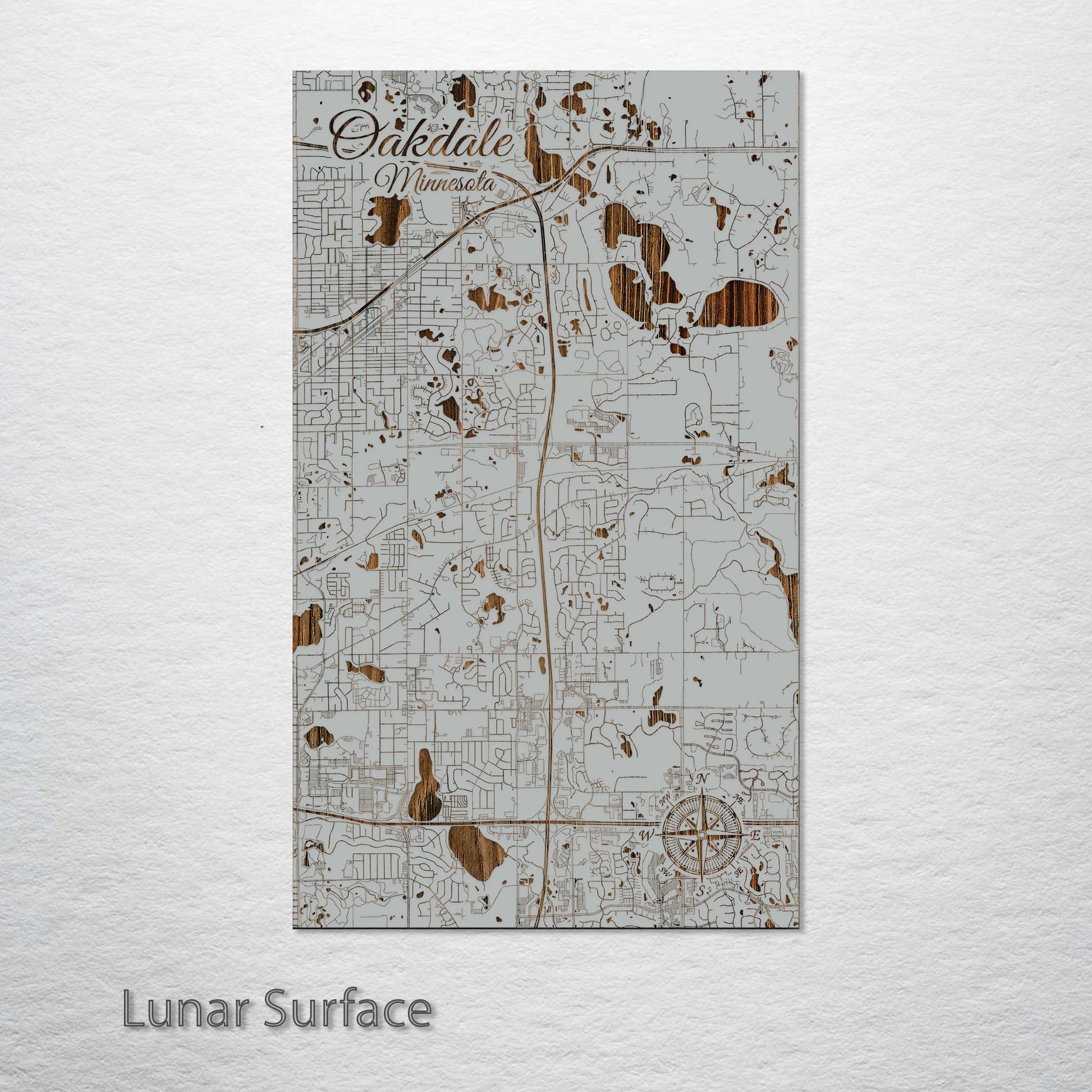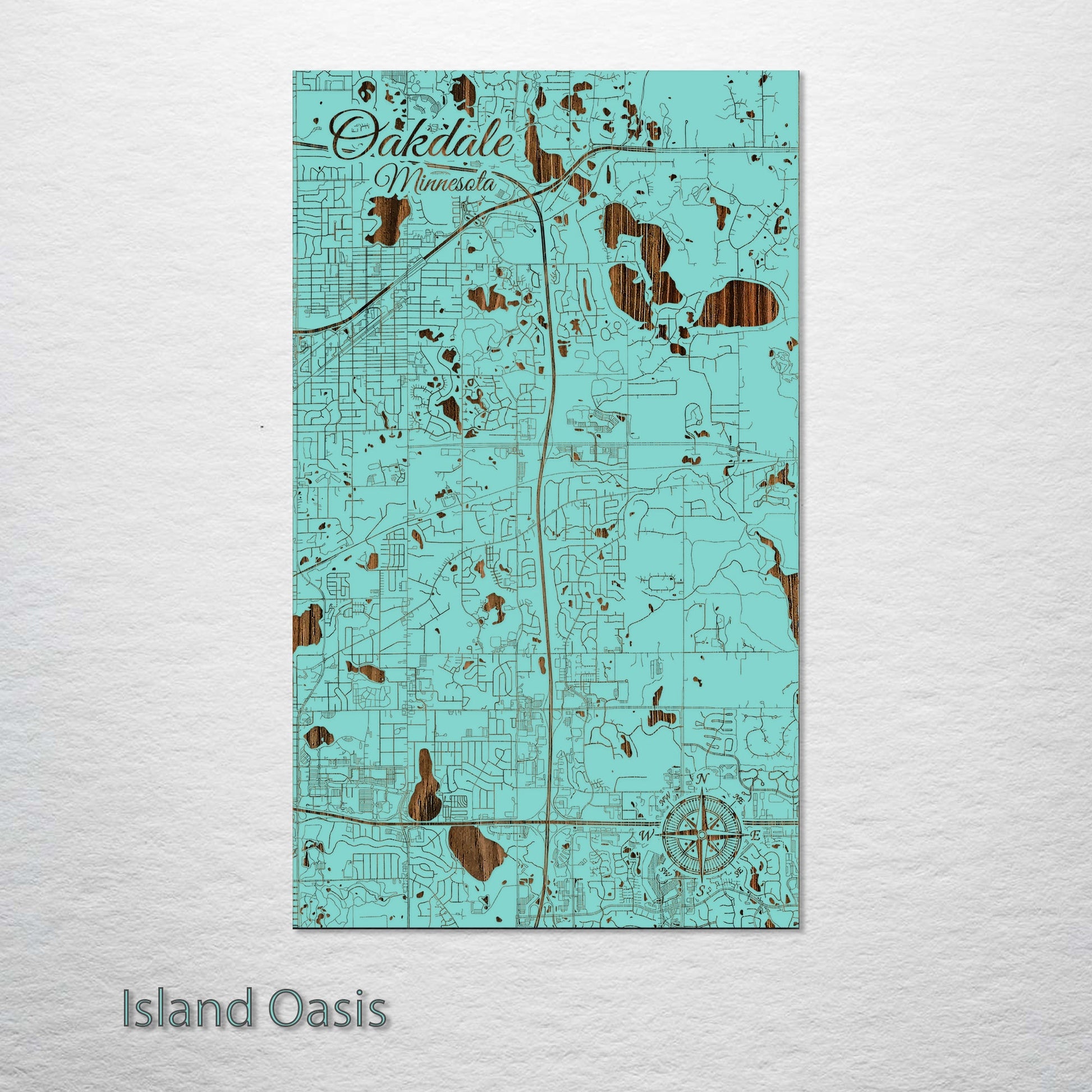 This is a street map of Oakdale, MN designed by Fire & Pine artists.