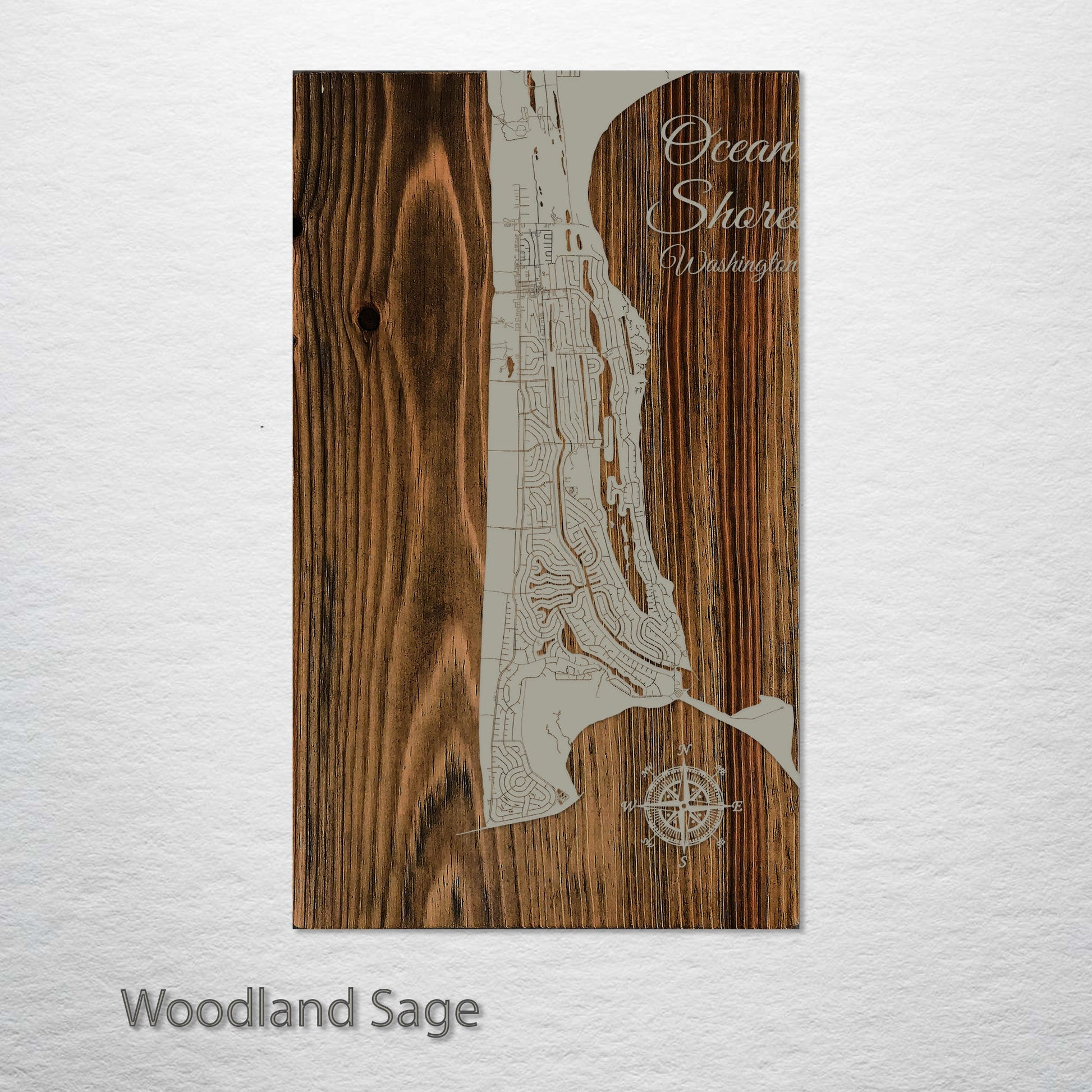 This is a street map of Ocean Shores, WA designed by Fire & Pine artists.