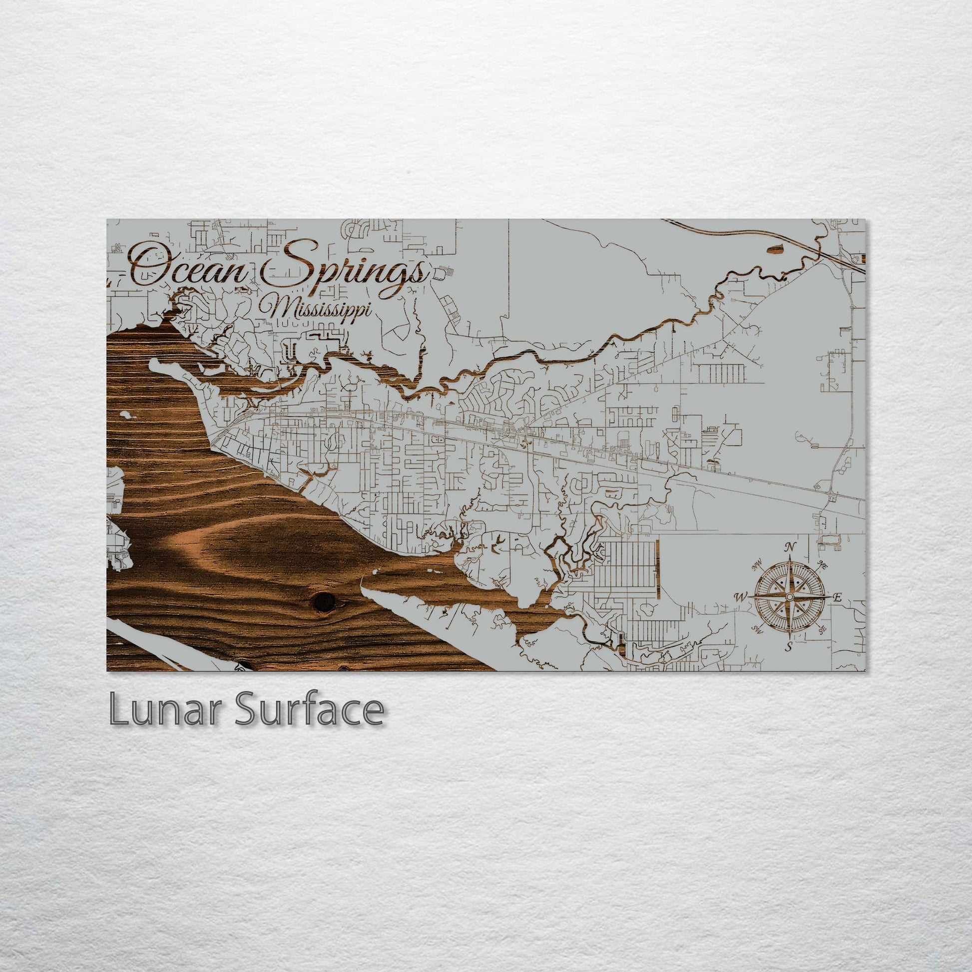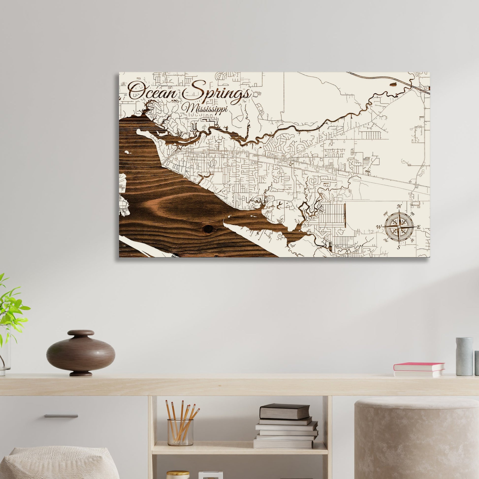 This is a street map of Ocean Springs, MS designed by Fire & Pine artists.