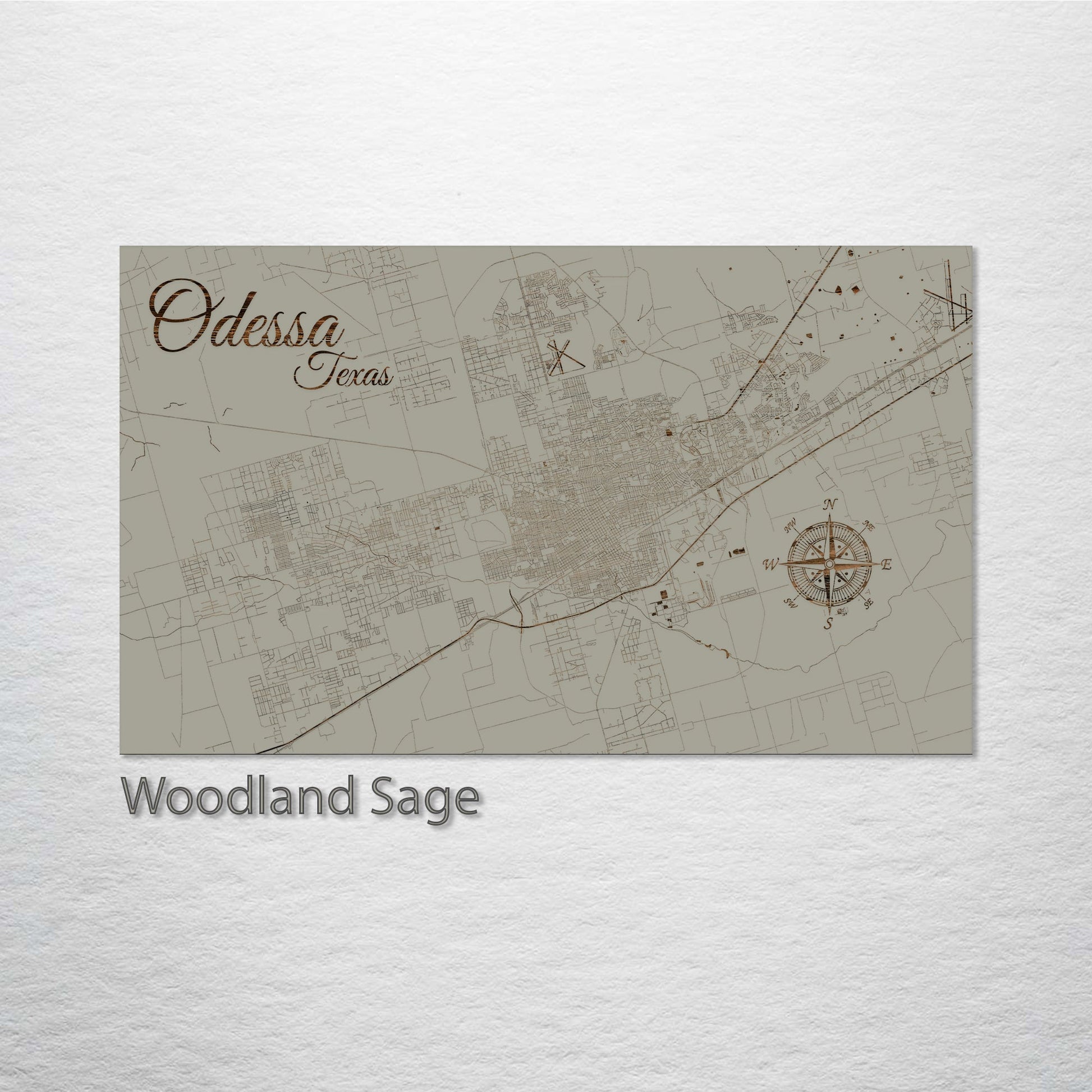 This is a street map of Odessa, TX designed by Fire & Pine artists.