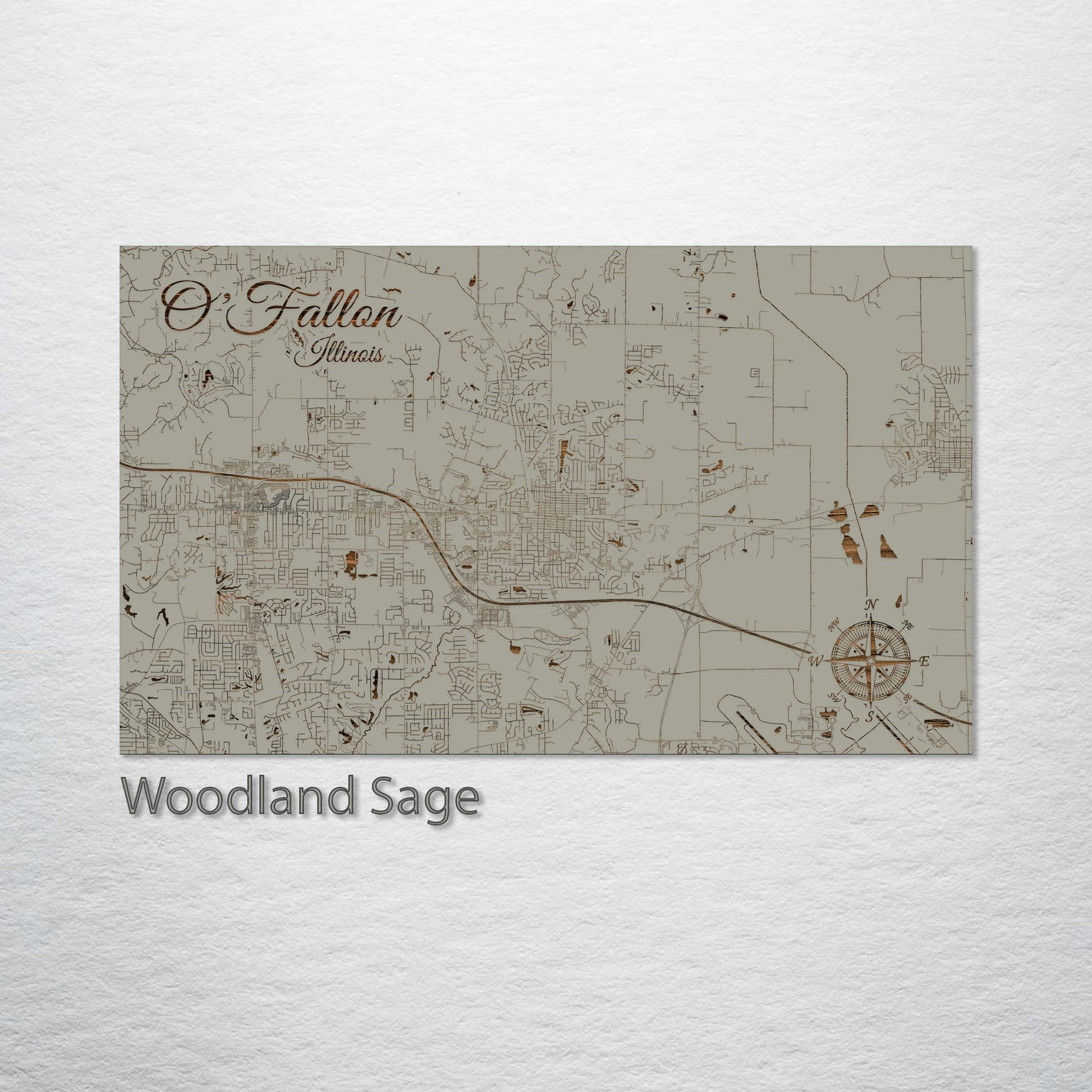This is a street map of O'Fallon, IL designed by Fire & Pine artists.