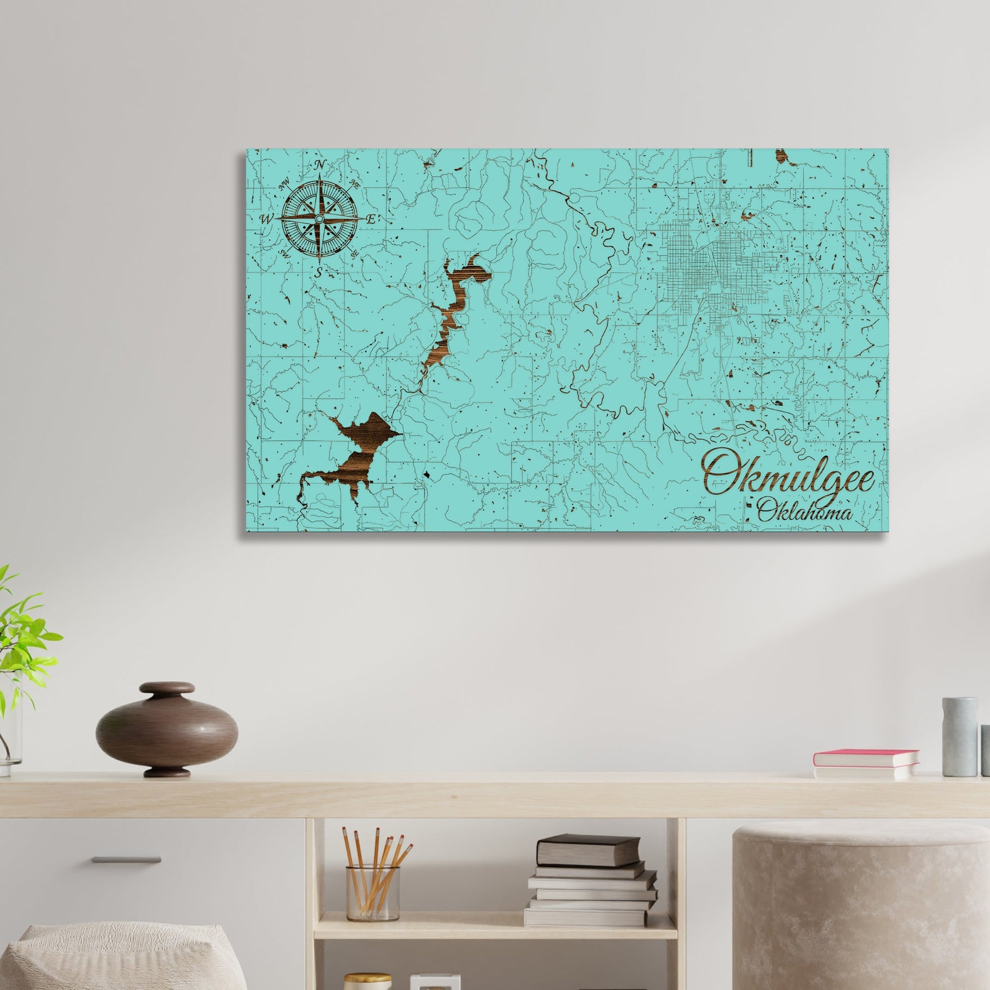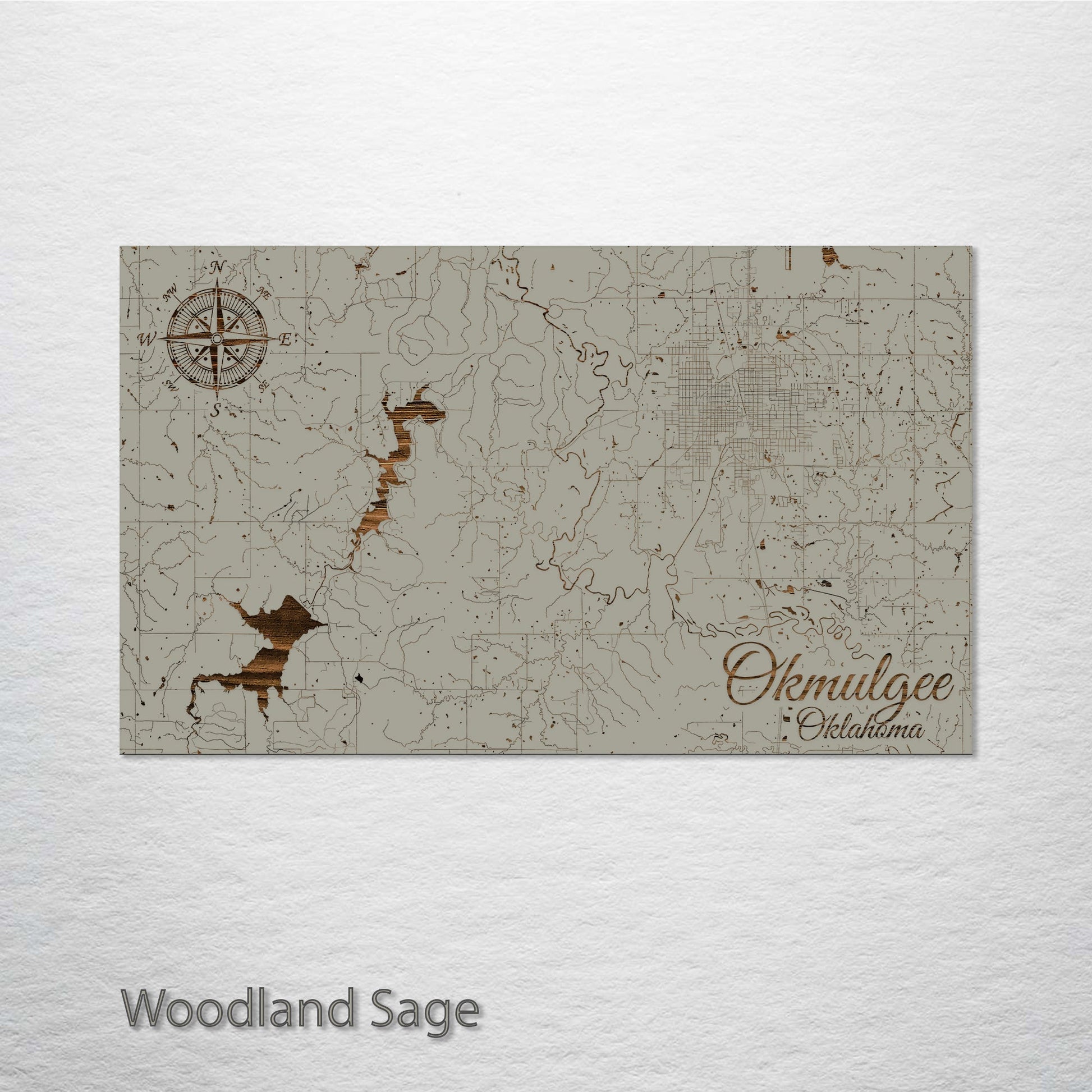 This is a street map of Okmulgee, OK designed by Fire & Pine artists.
