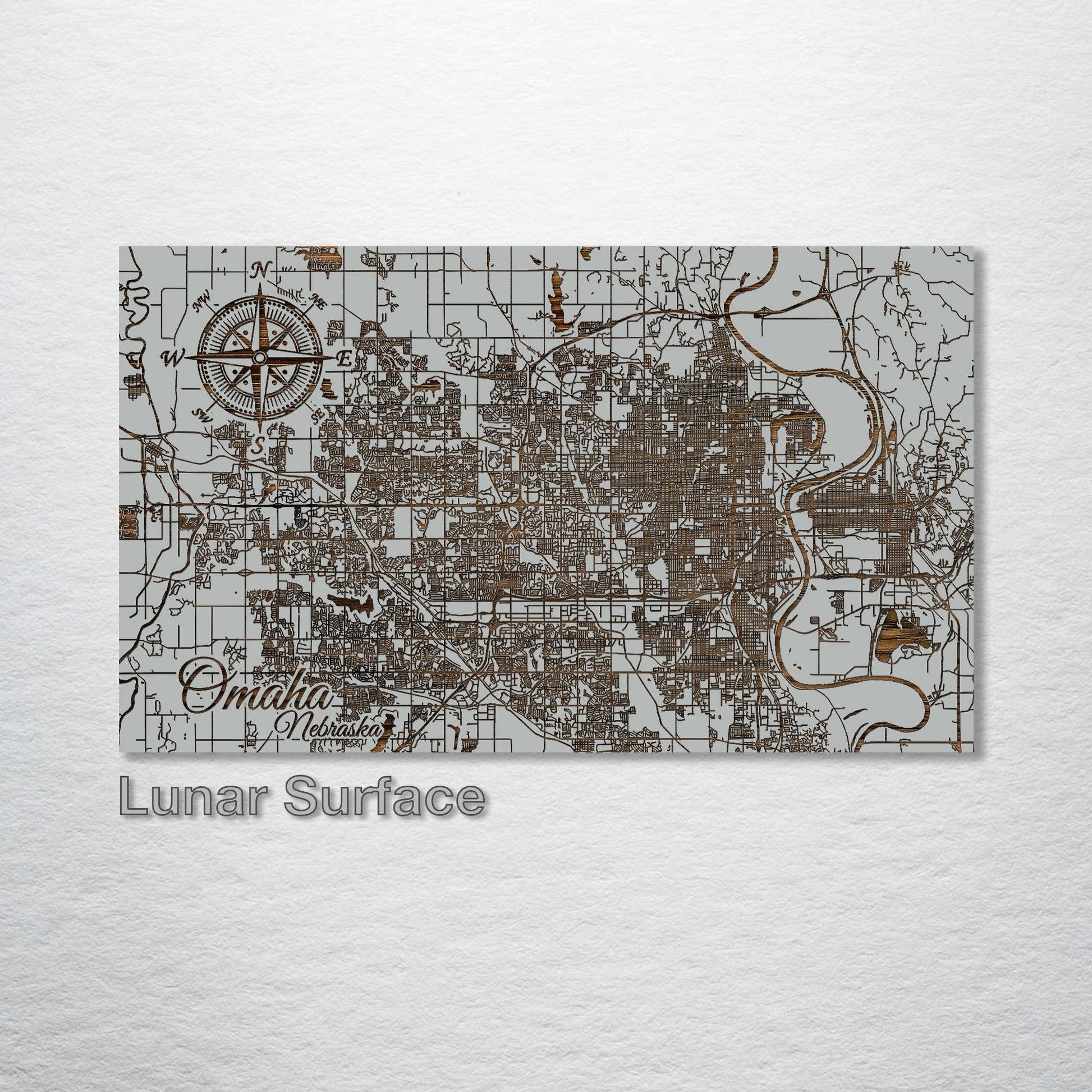 This is a street map of Omaha, Nebraska designed by Fire & Pine artists.