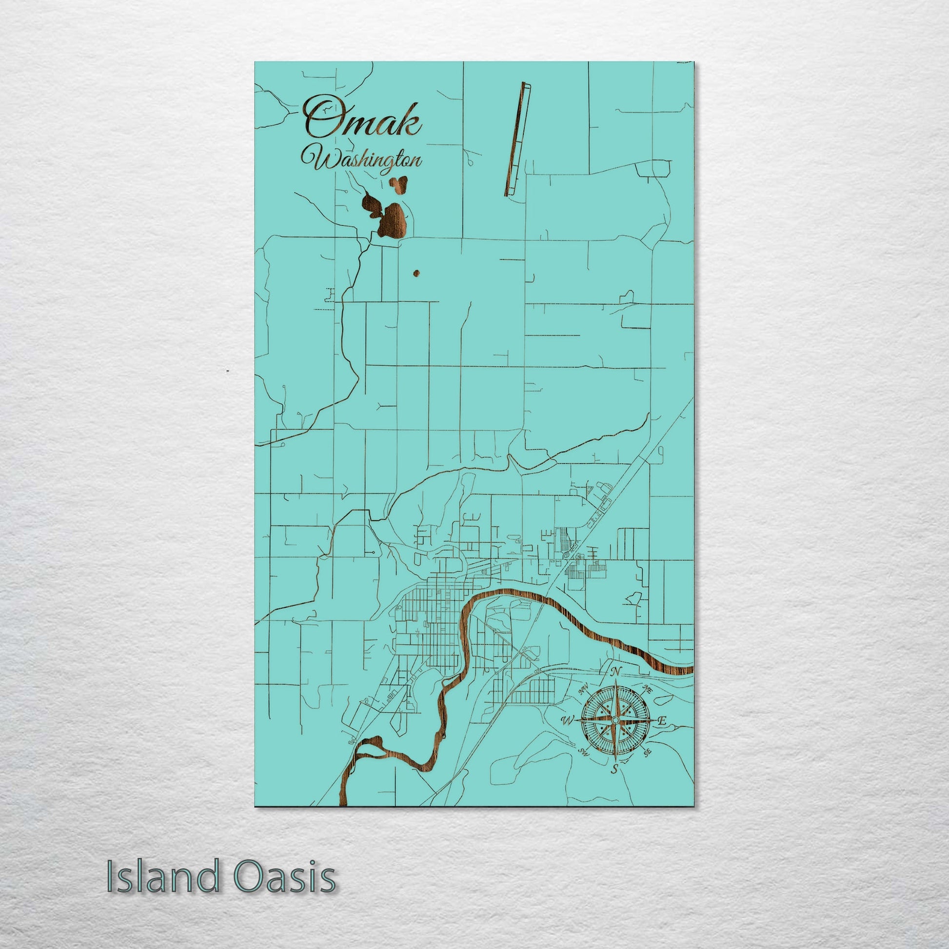 This is a street map of Omak, WA designed by Fire & Pine artists.
