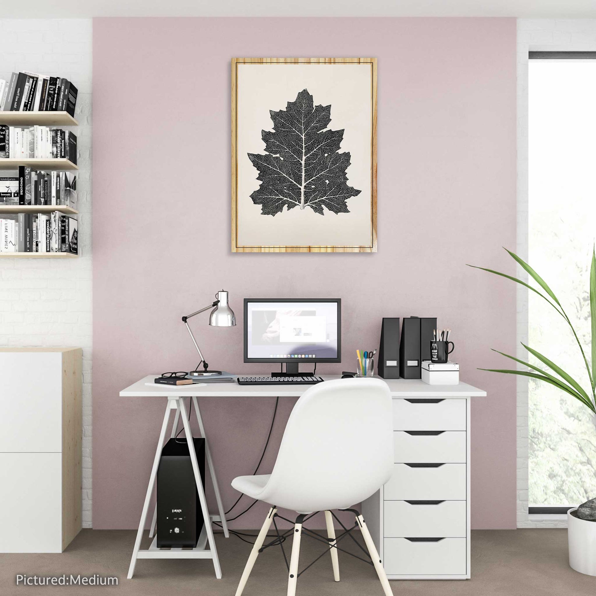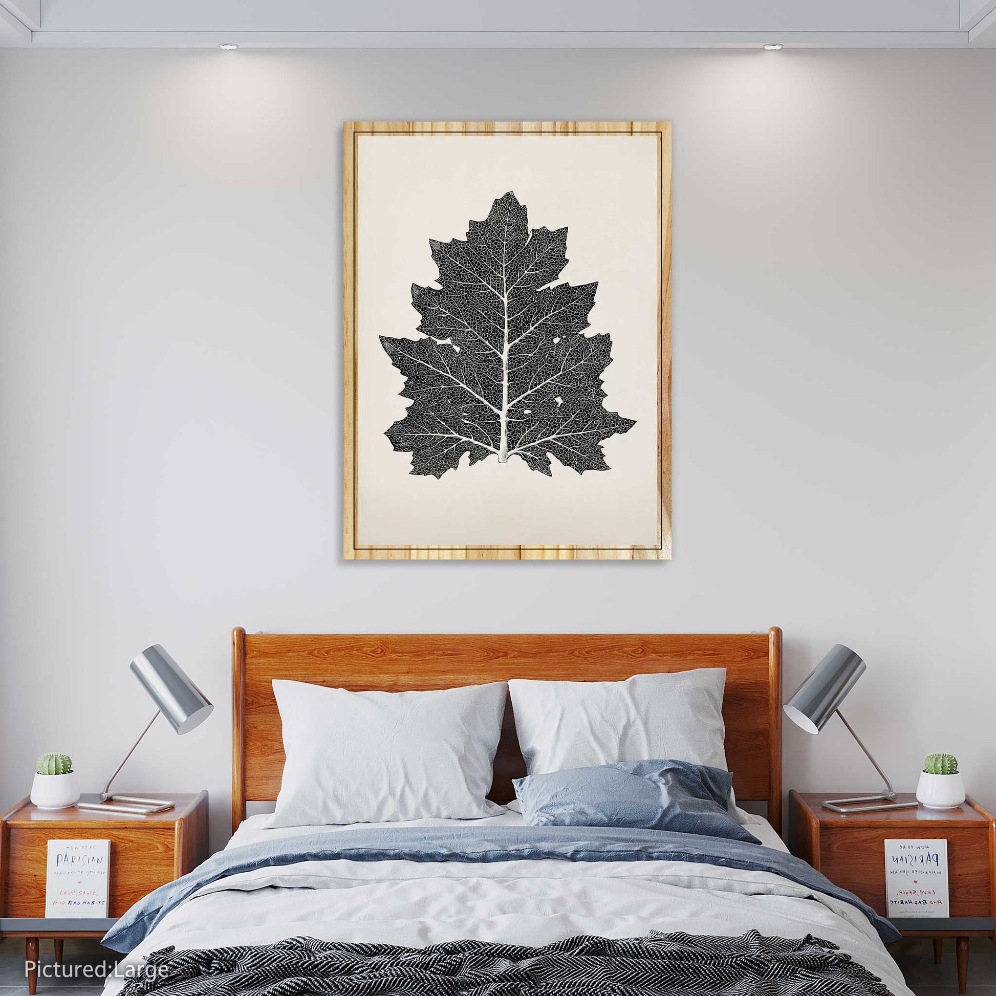 Ideal for your living room, study, or bedroom, the 'One Leaf' print introduces a touch of natural elegance and tranquility into your decor. Available in various sizes, this pine wood print seamlessly combines the rustic texture of wood grain with the crisp details and subtle hues of a single leaf.
