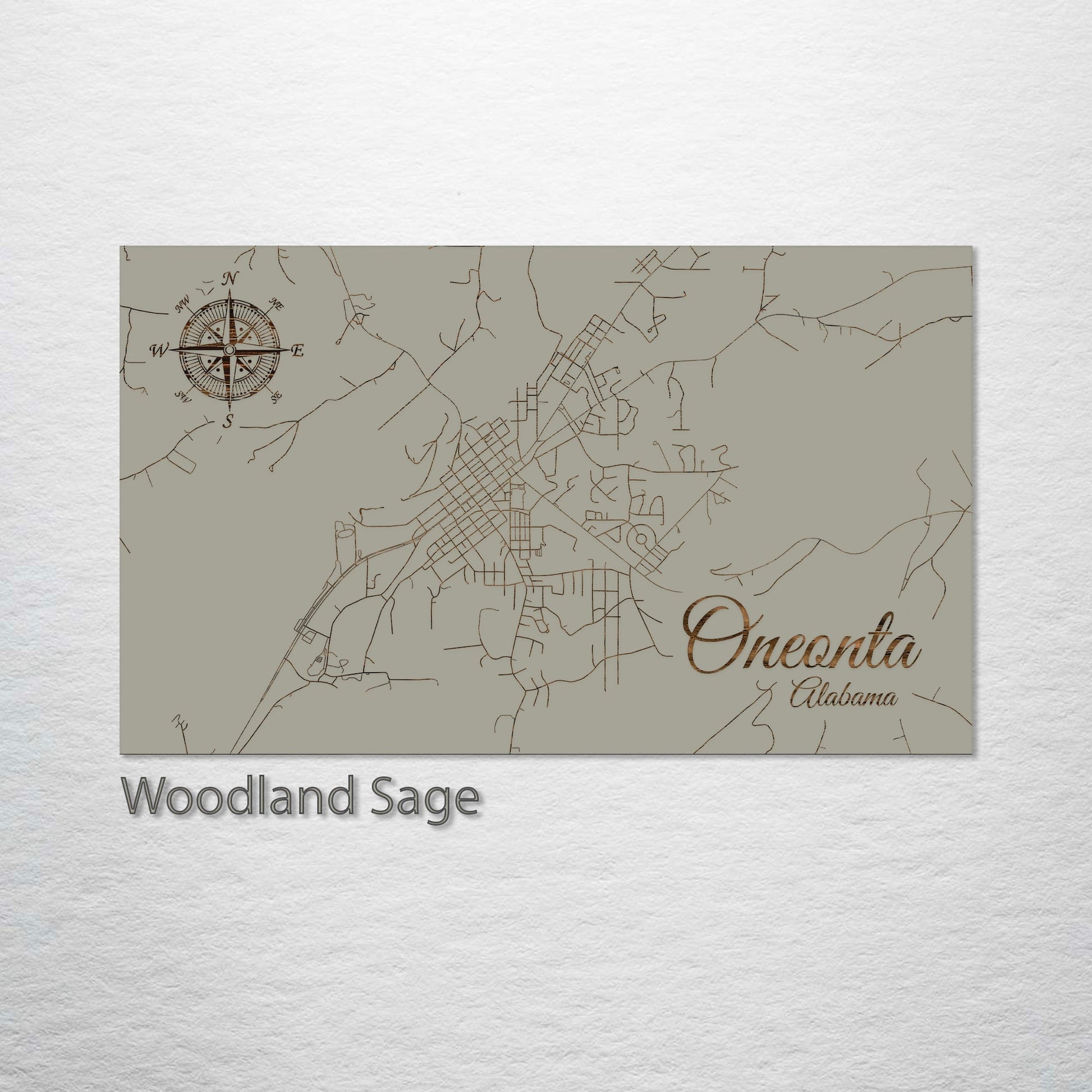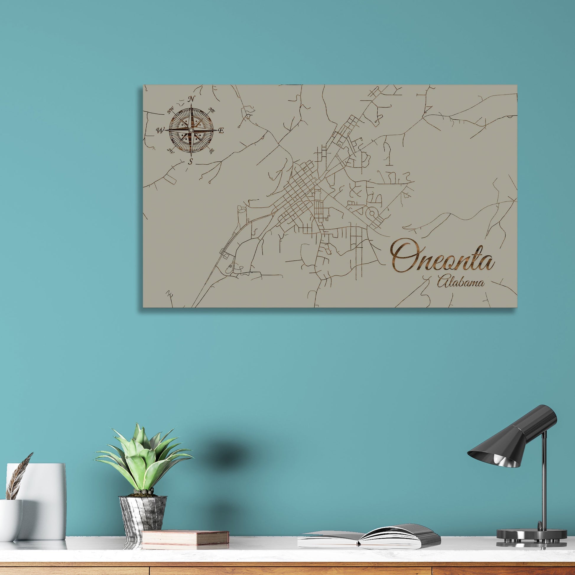This is a street map of Oneonta, AL designed by Fire & Pine artists.