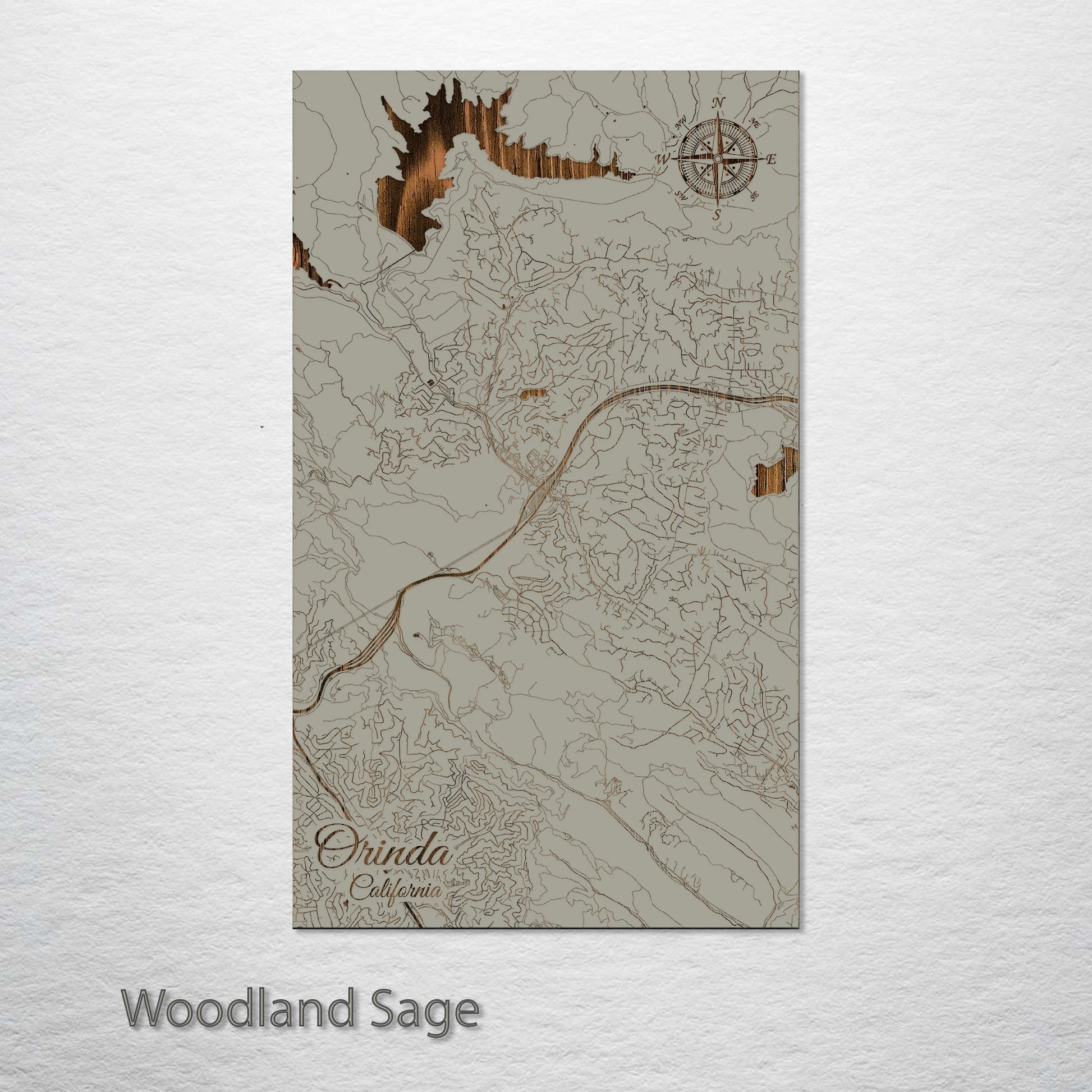 This is a street map of Orinda, CA designed by Fire & Pine artists.