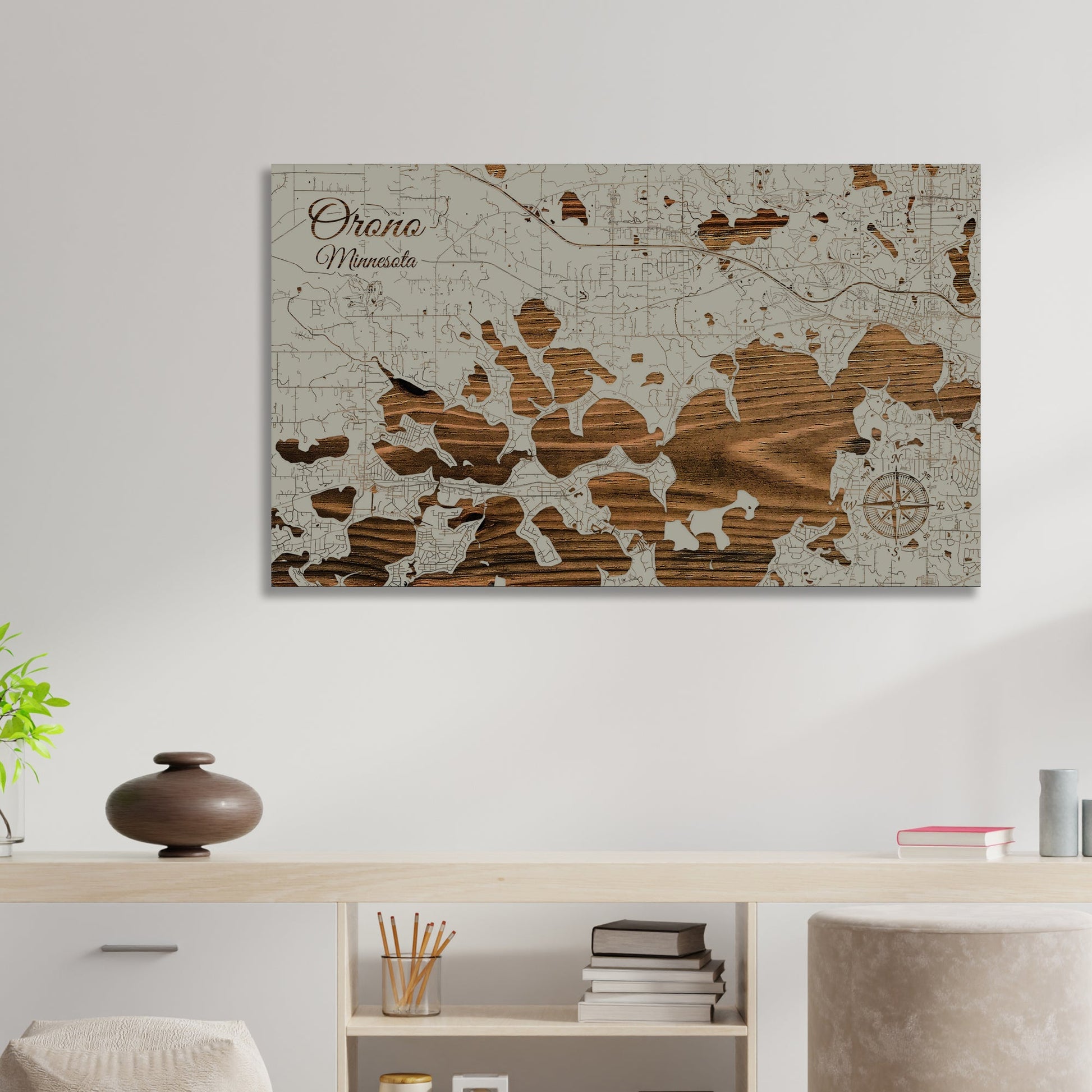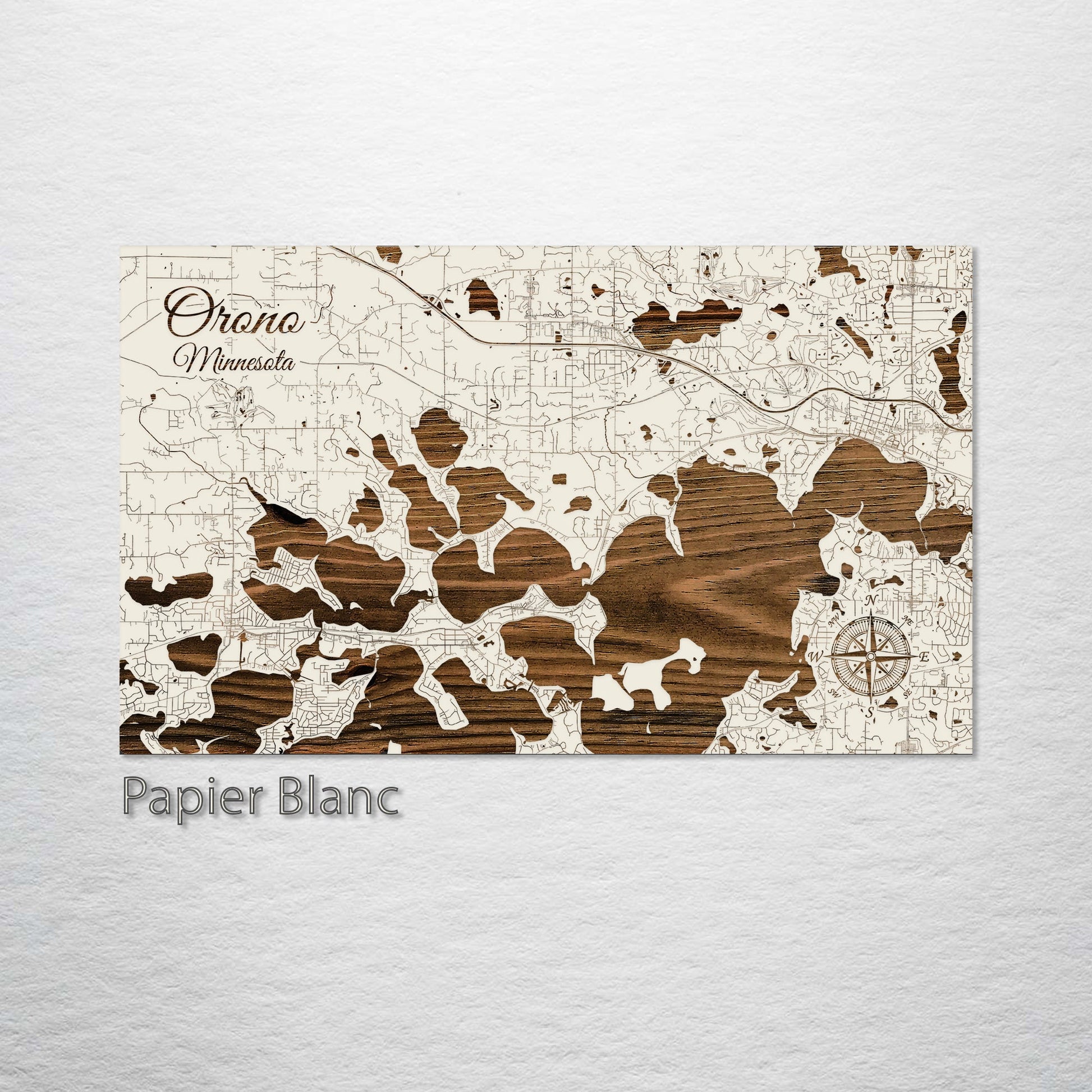 This is a street map of Orono, MN designed by Fire & Pine artists.