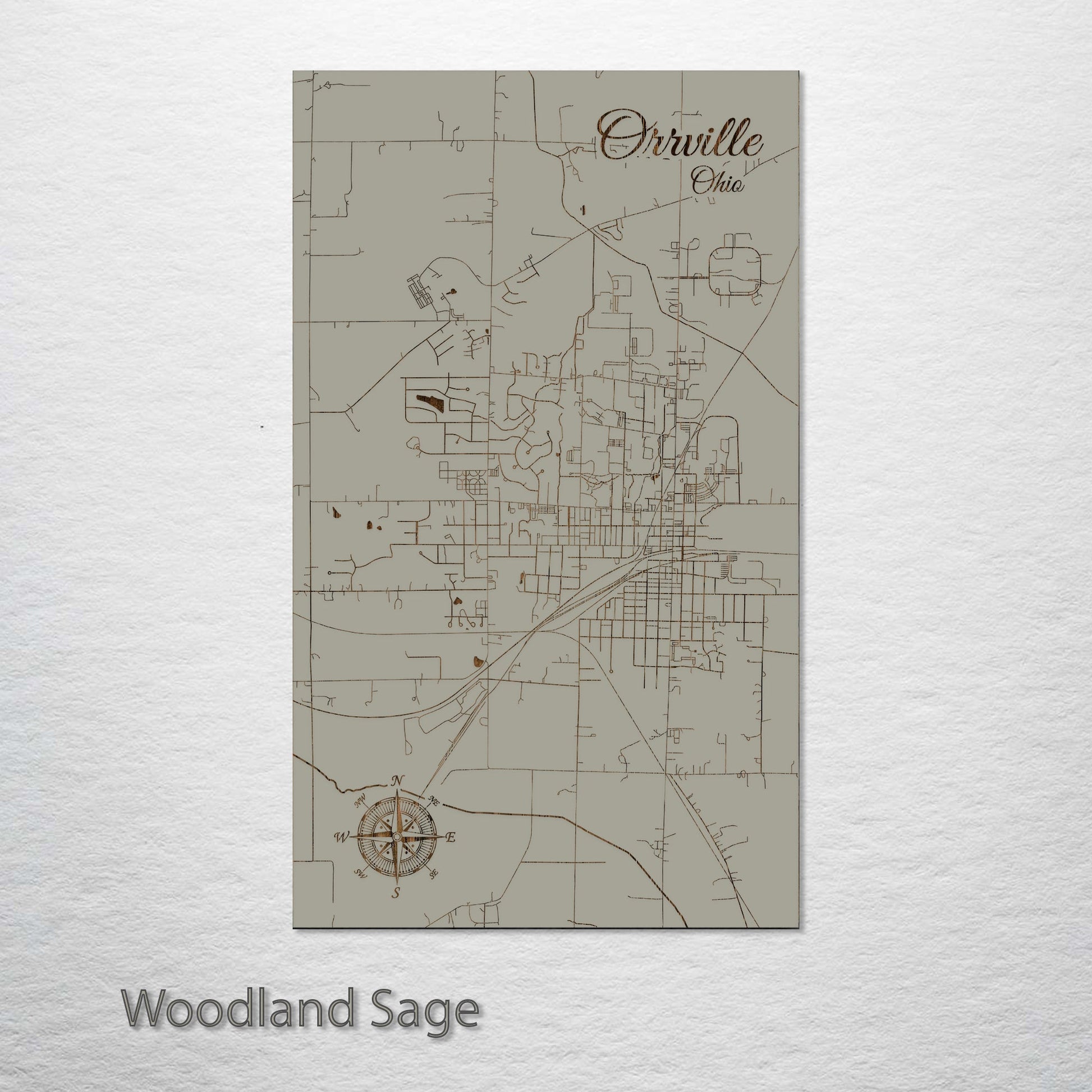 This is a street map of Orrville, OH designed by Fire & Pine artists.