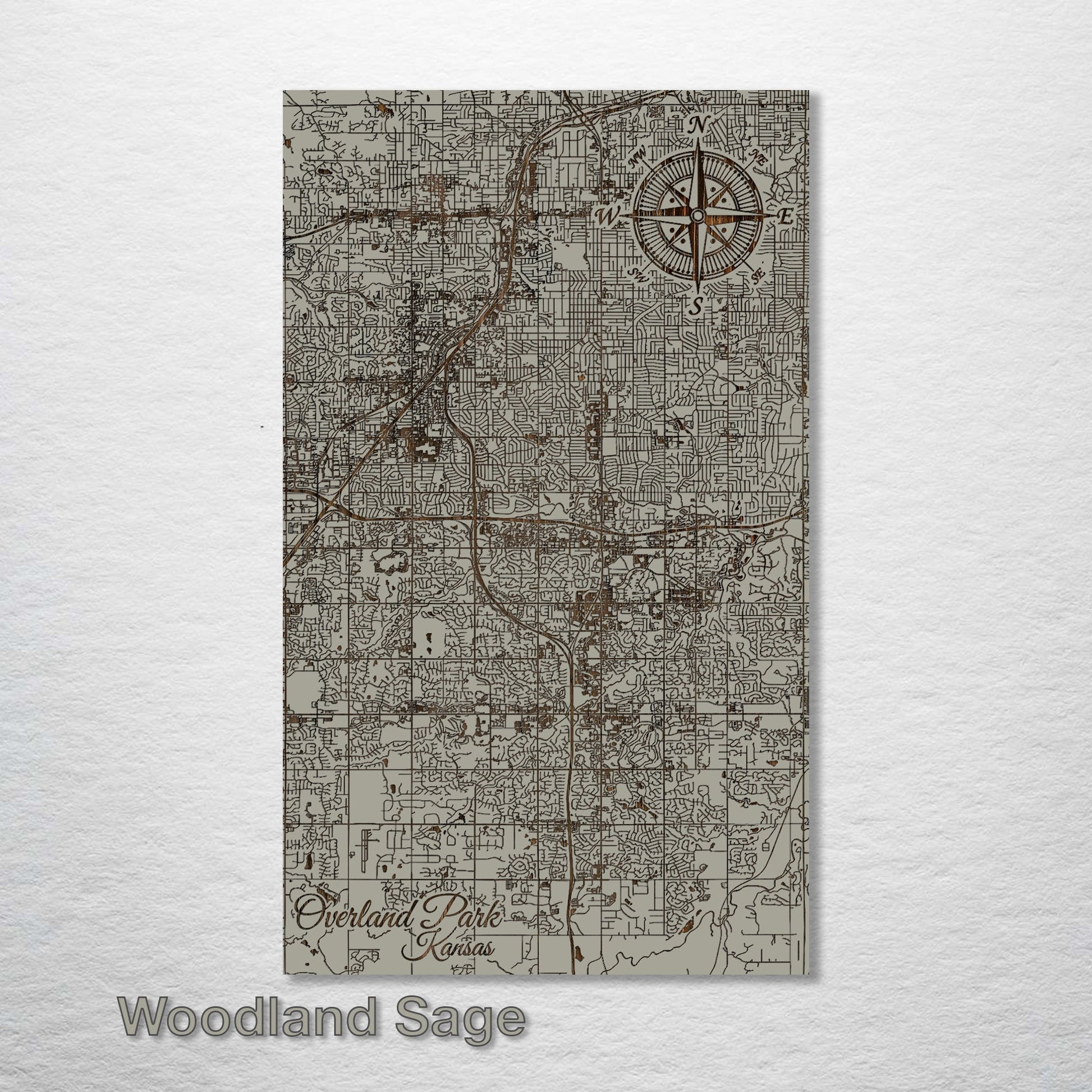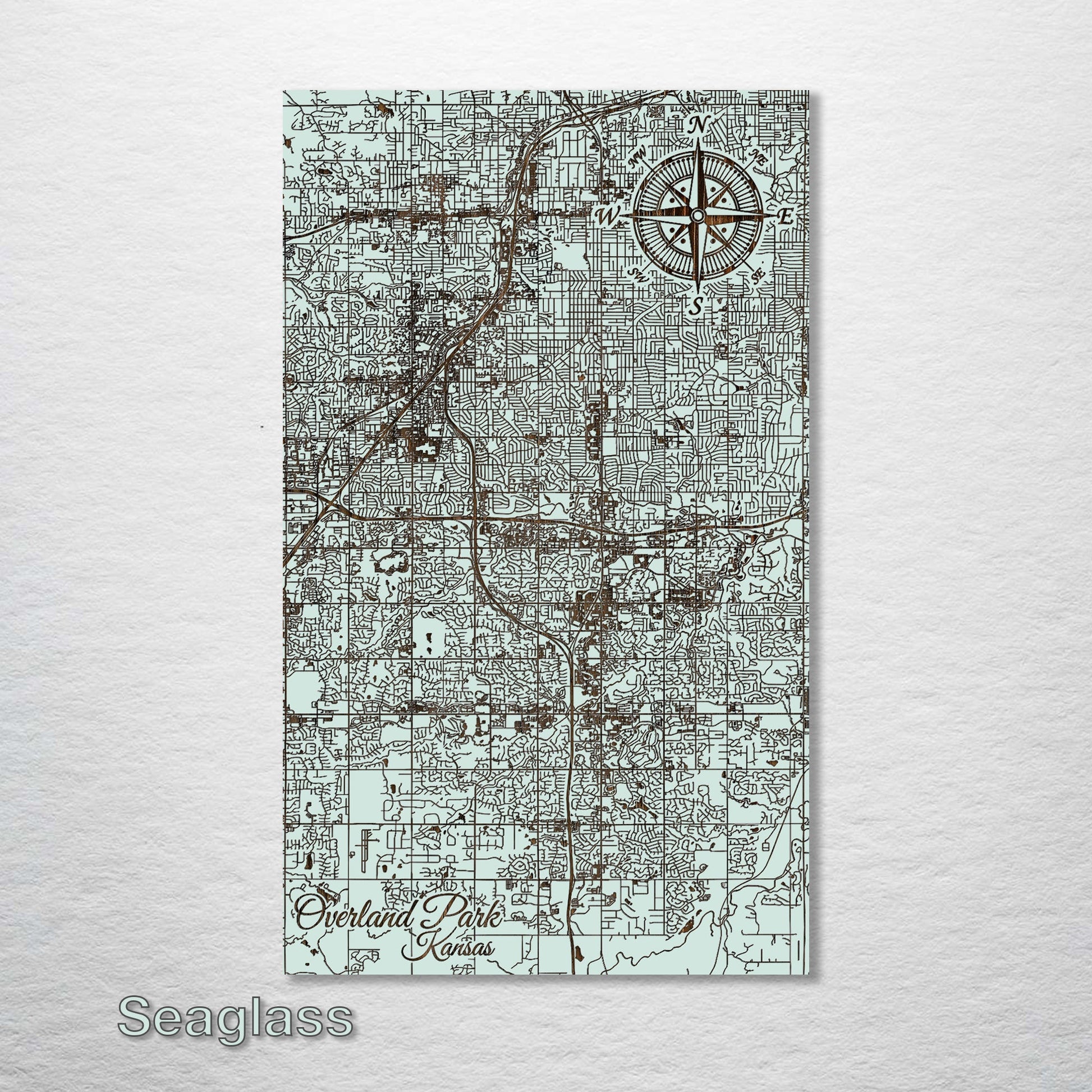 This is a street map of Overland Park, Kansas designed by Fire & Pine artists.