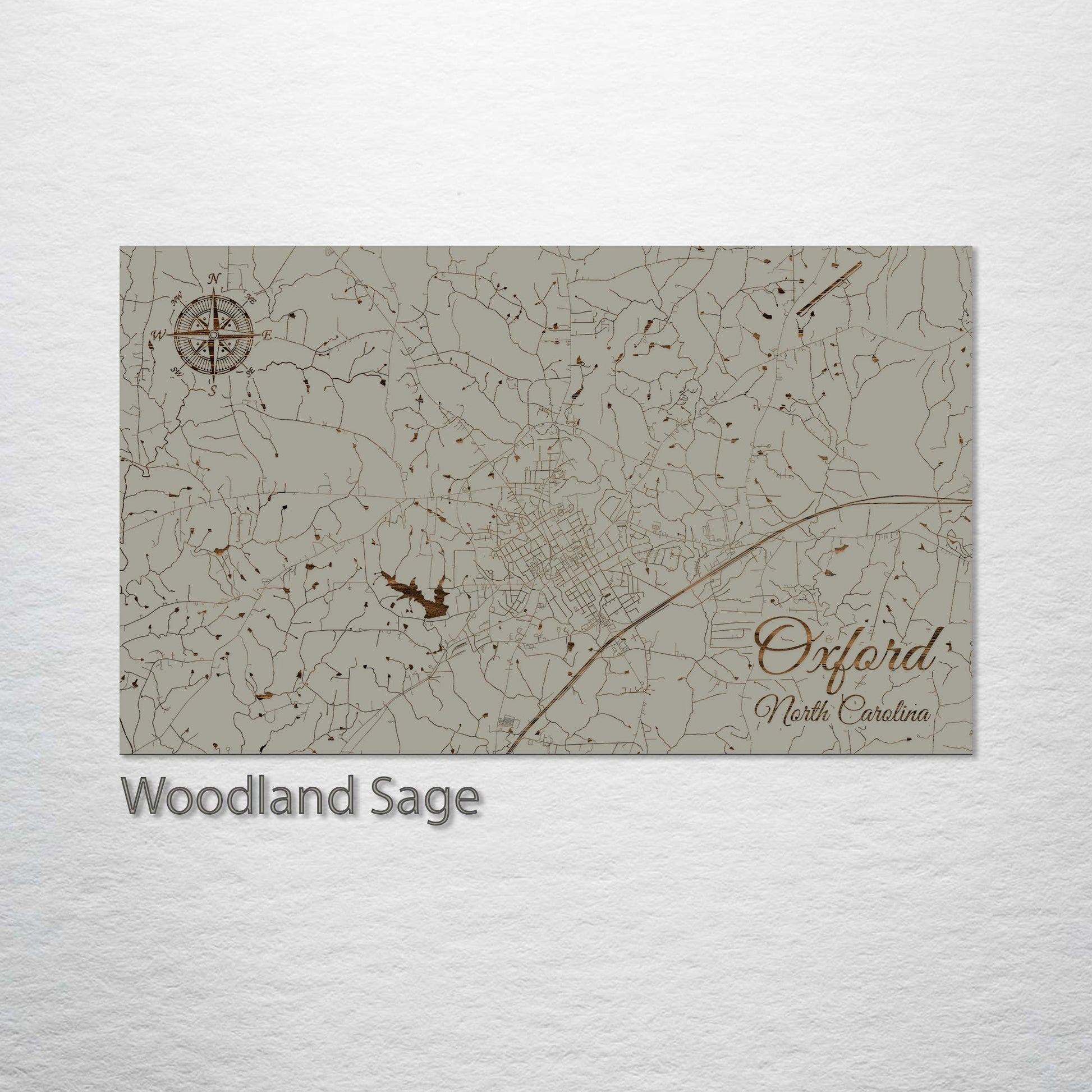 This is a street map of Oxford, NC designed by Fire & Pine artists.