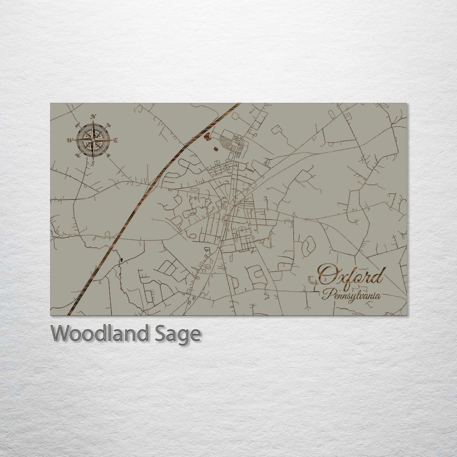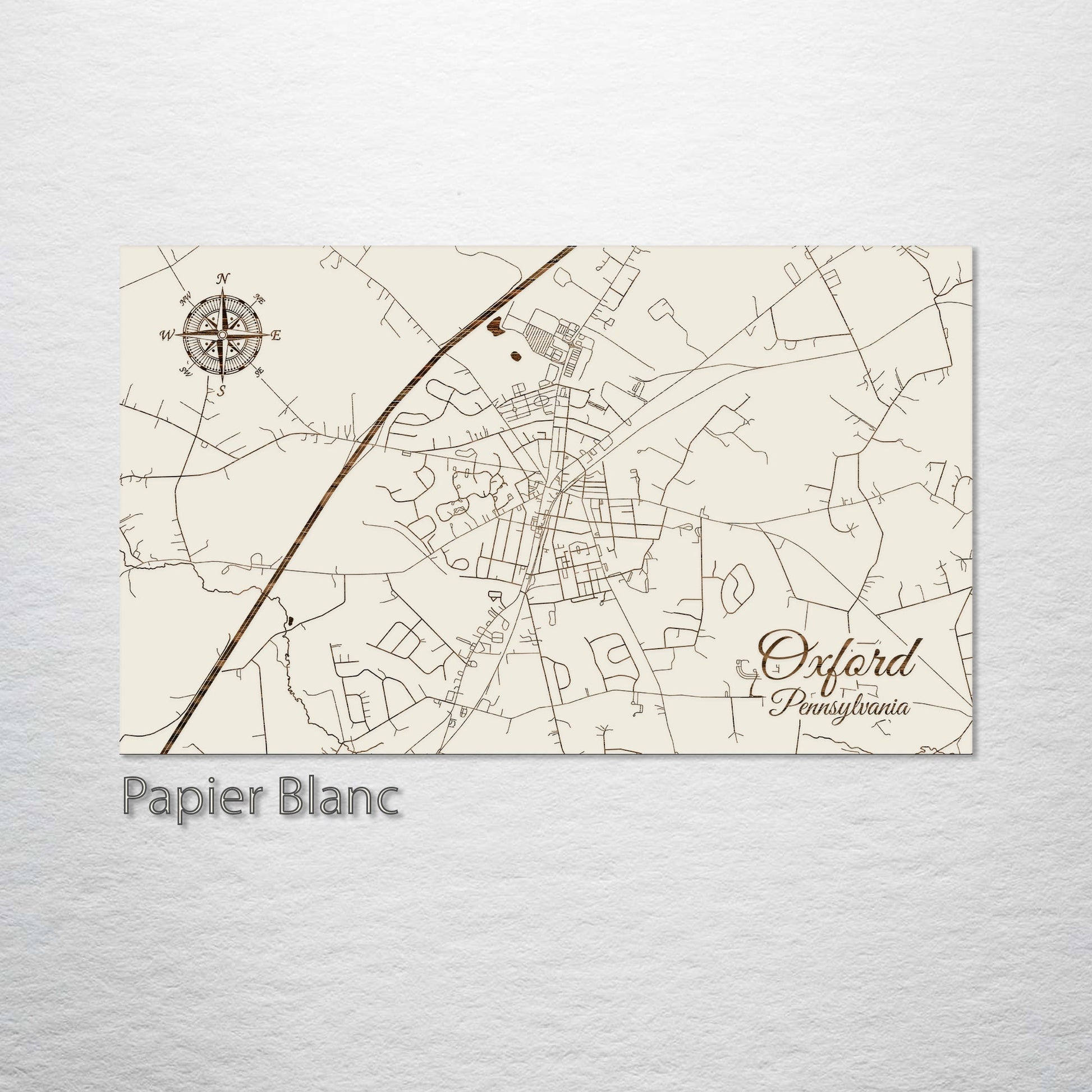 This is a street map of Oxford, PA designed by Fire & Pine artists.