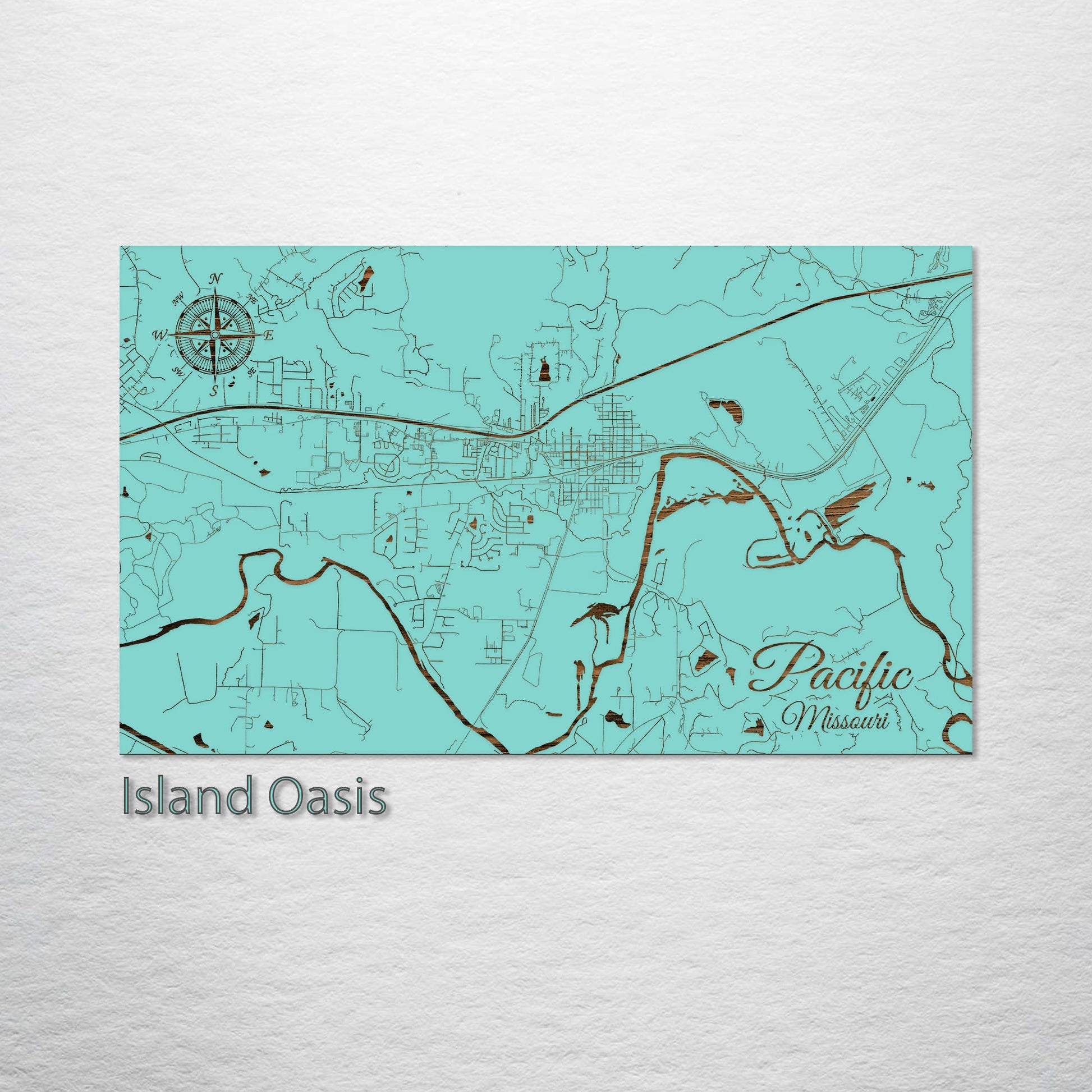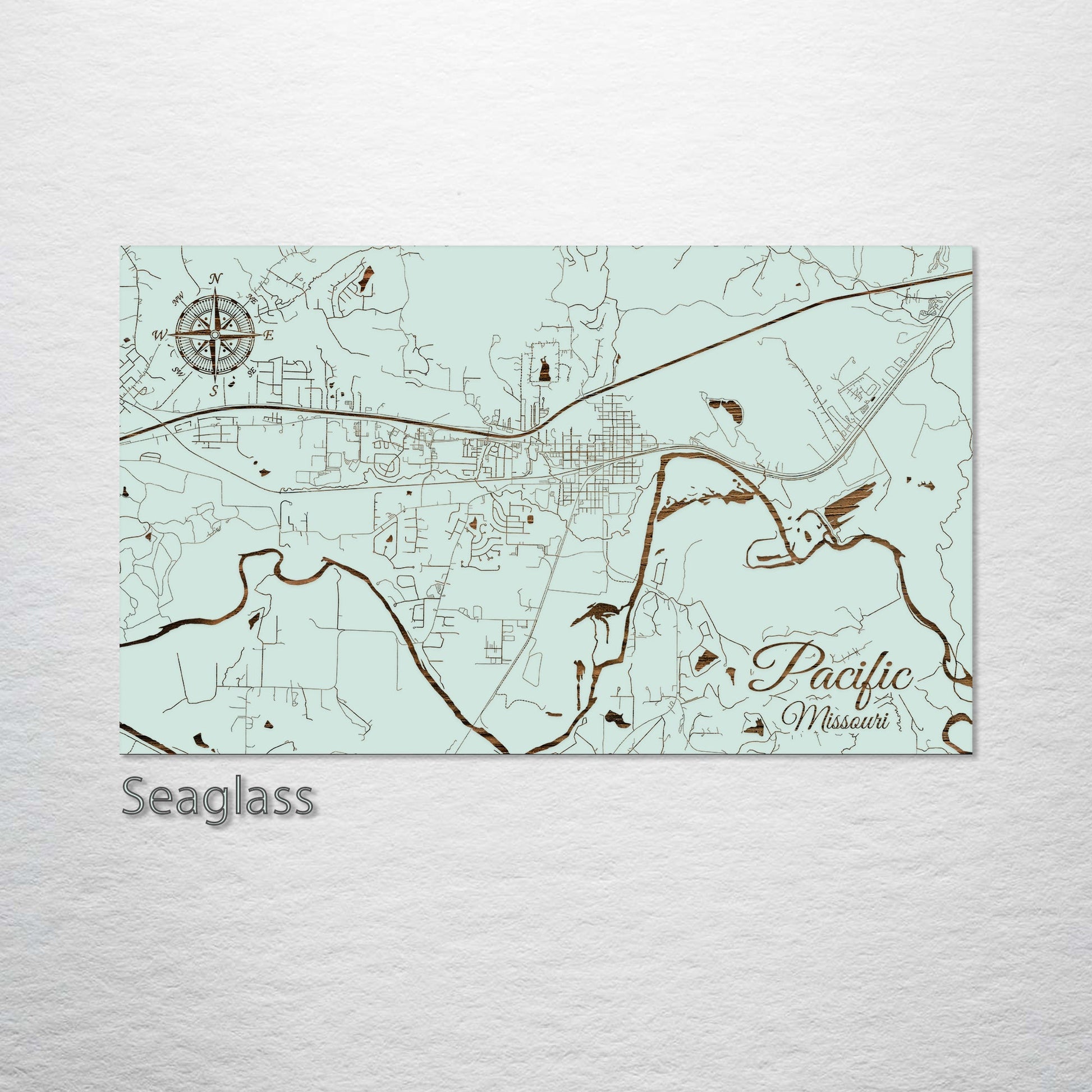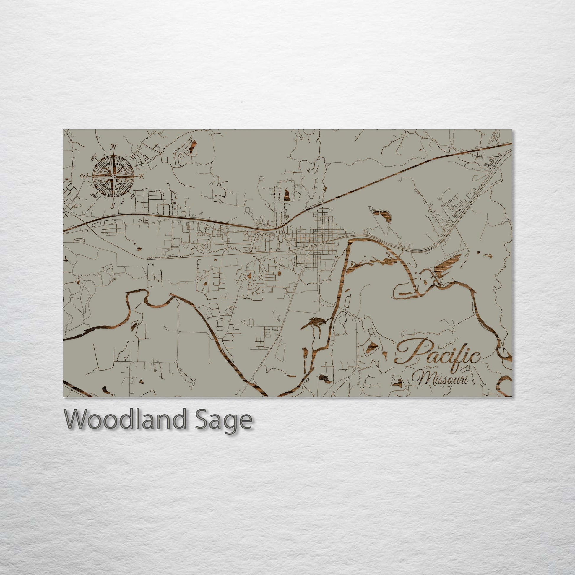 This is a street map of Pacific, MO designed by Fire & Pine artists.