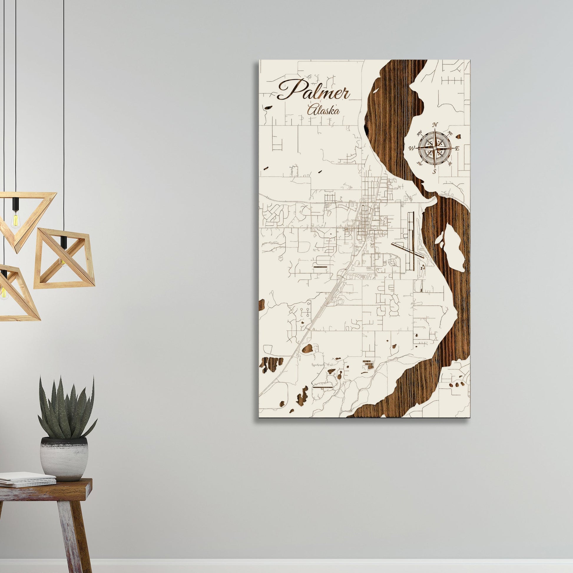 This is a street map of Palmer, AK designed by Fire & Pine artists.