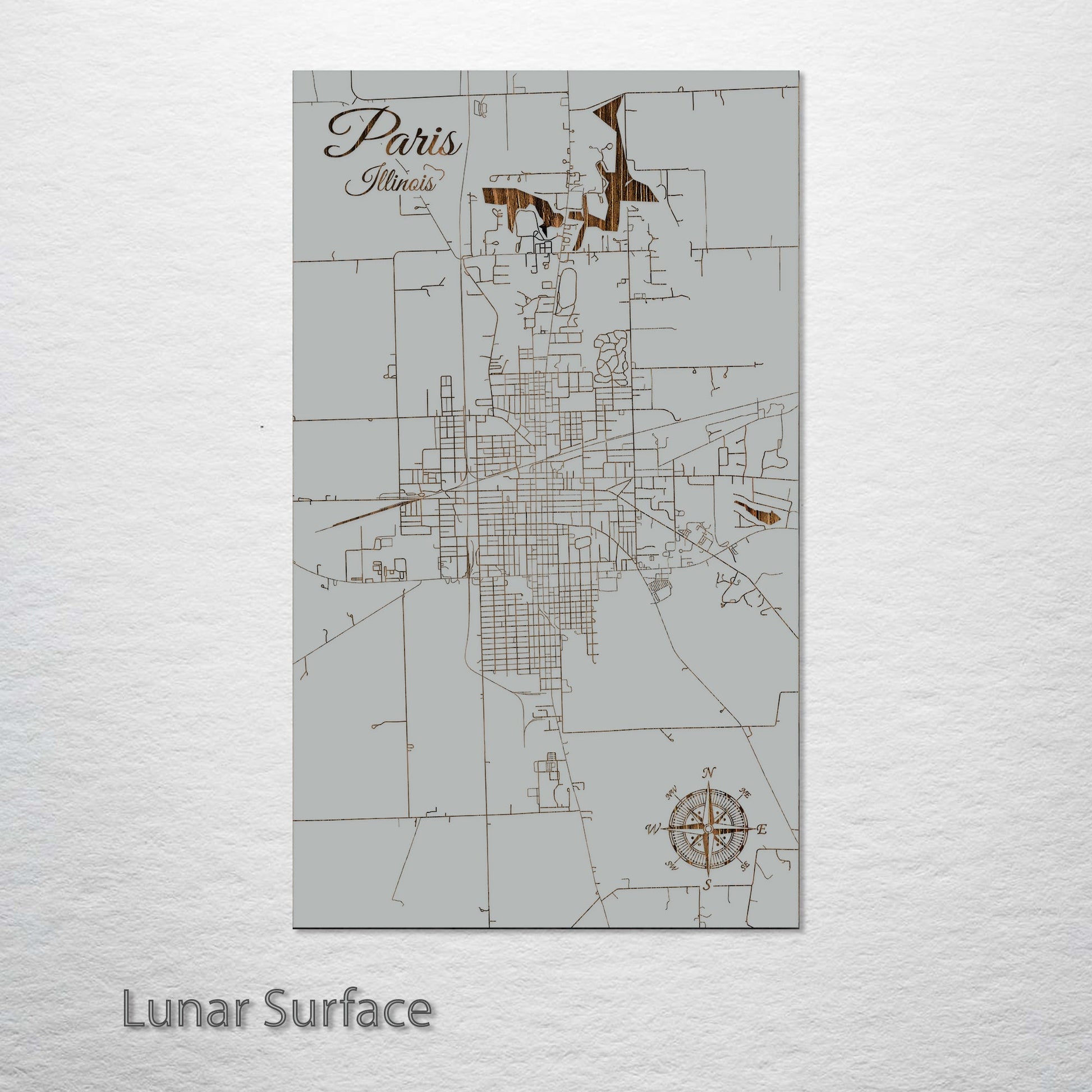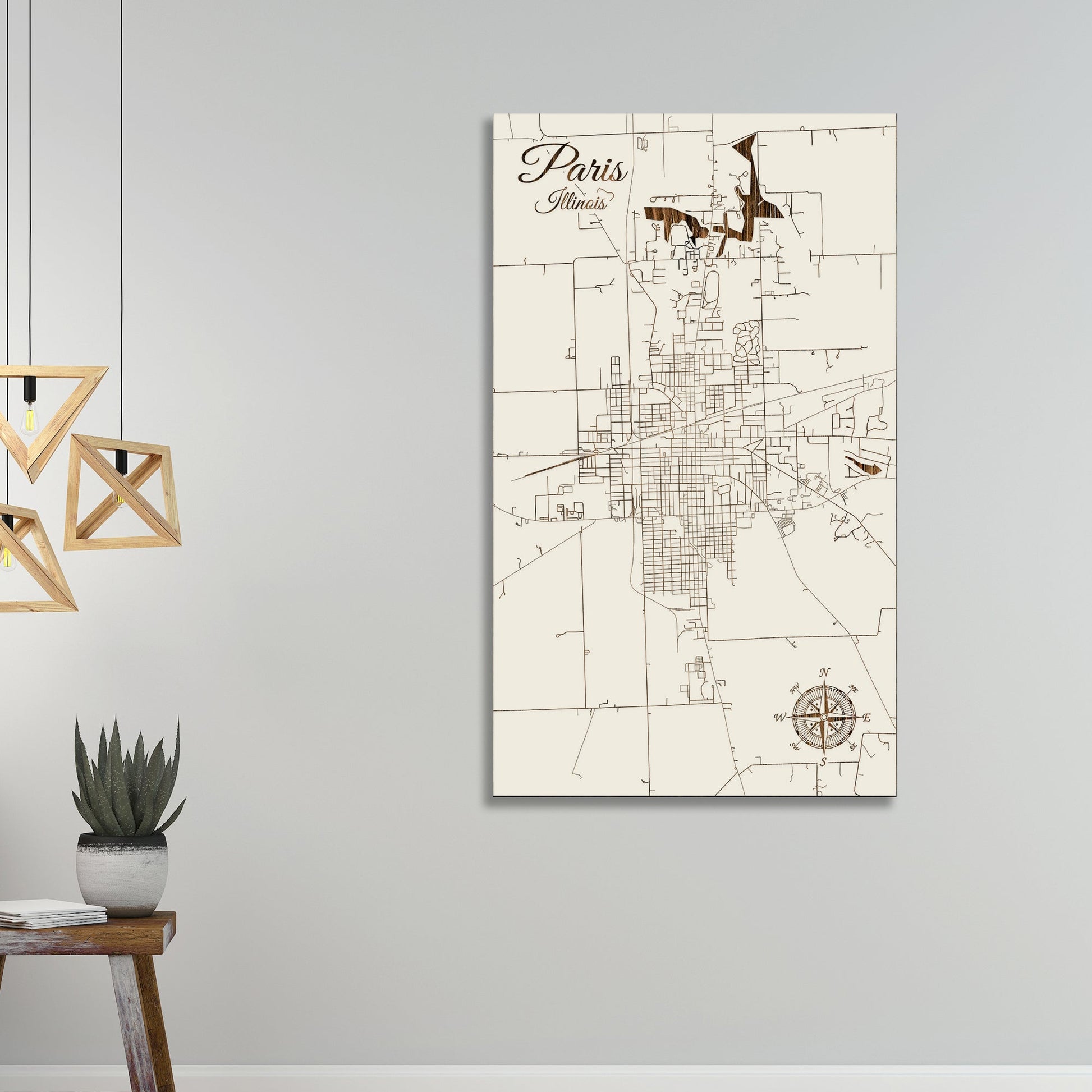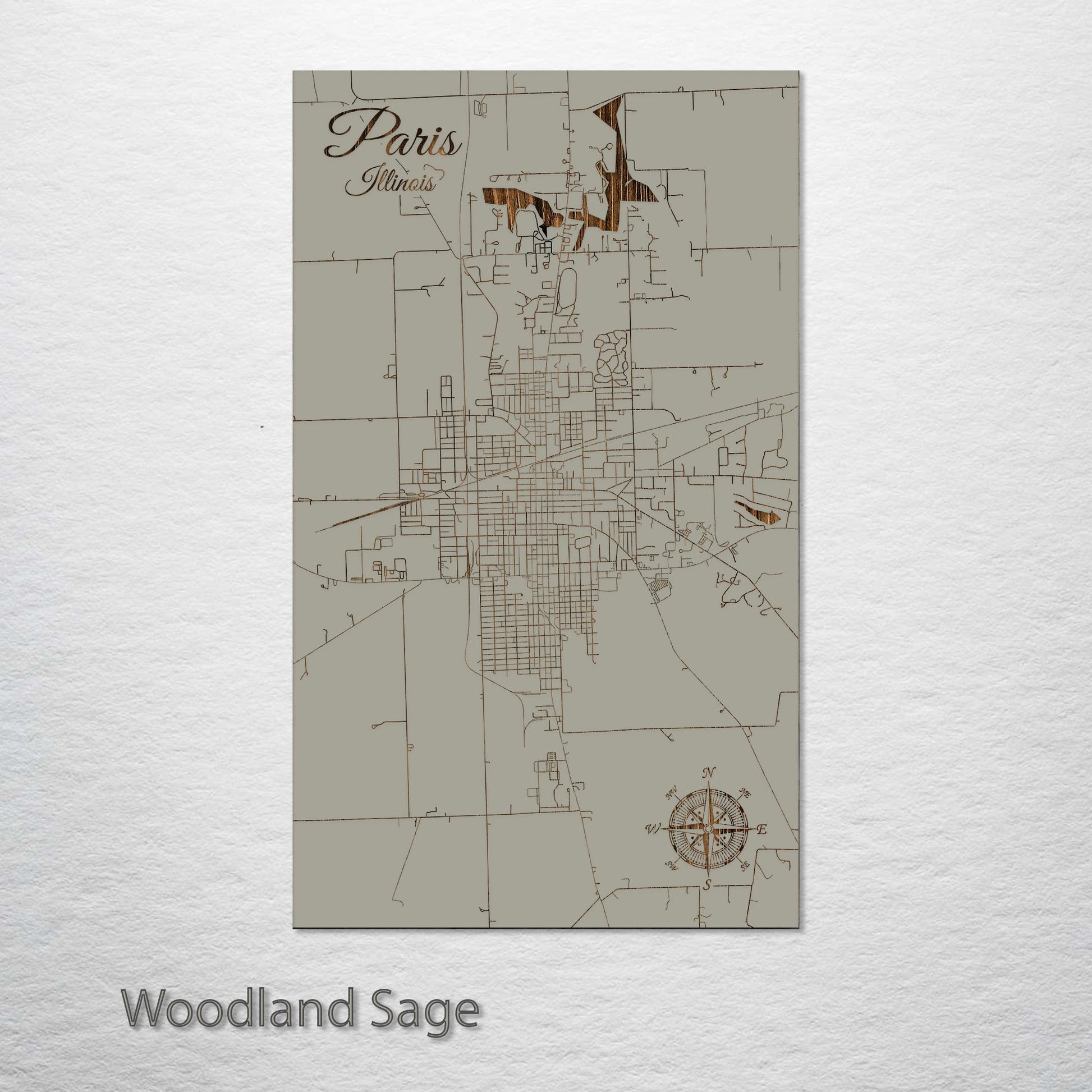 This is a street map of Paris, IL designed by Fire & Pine artists.