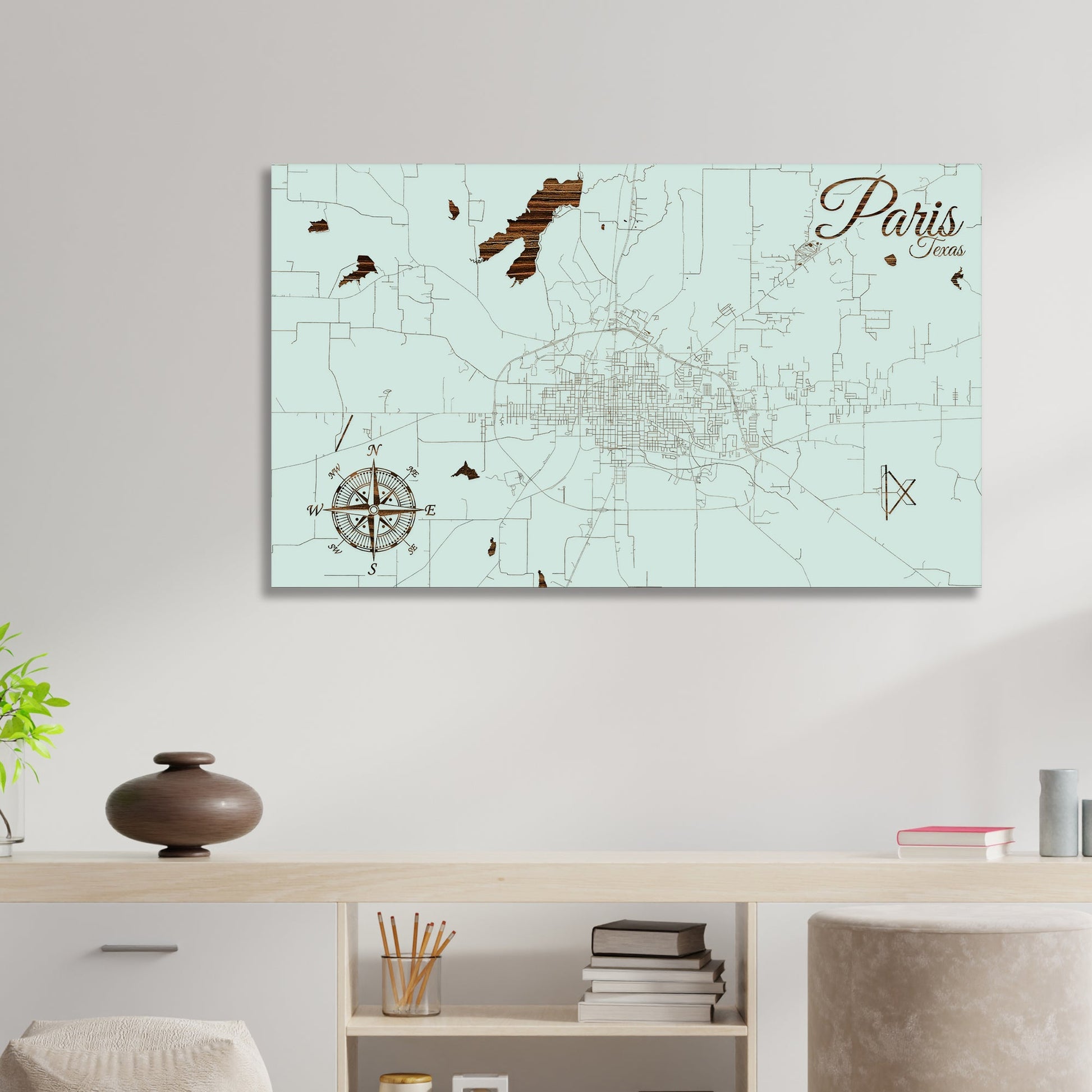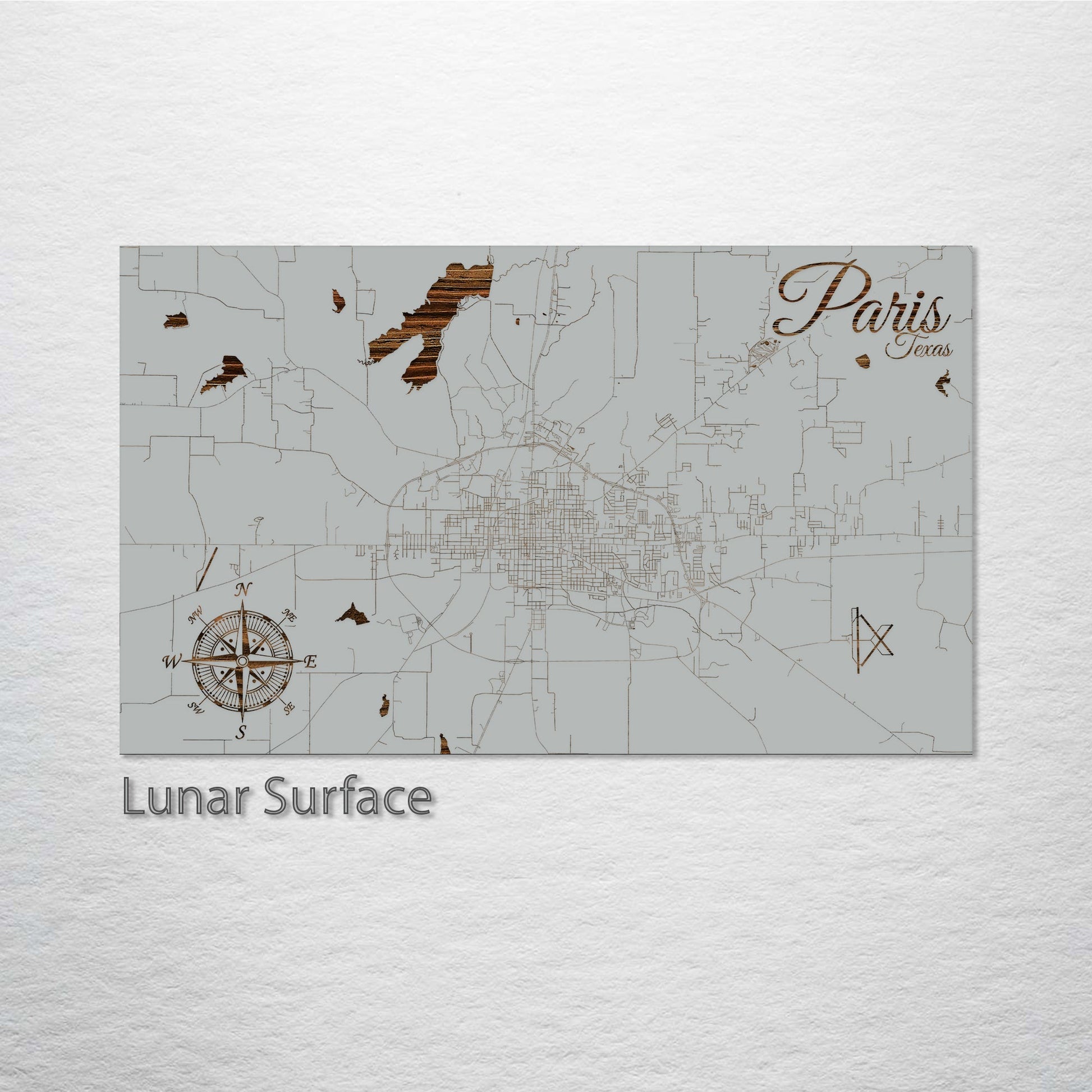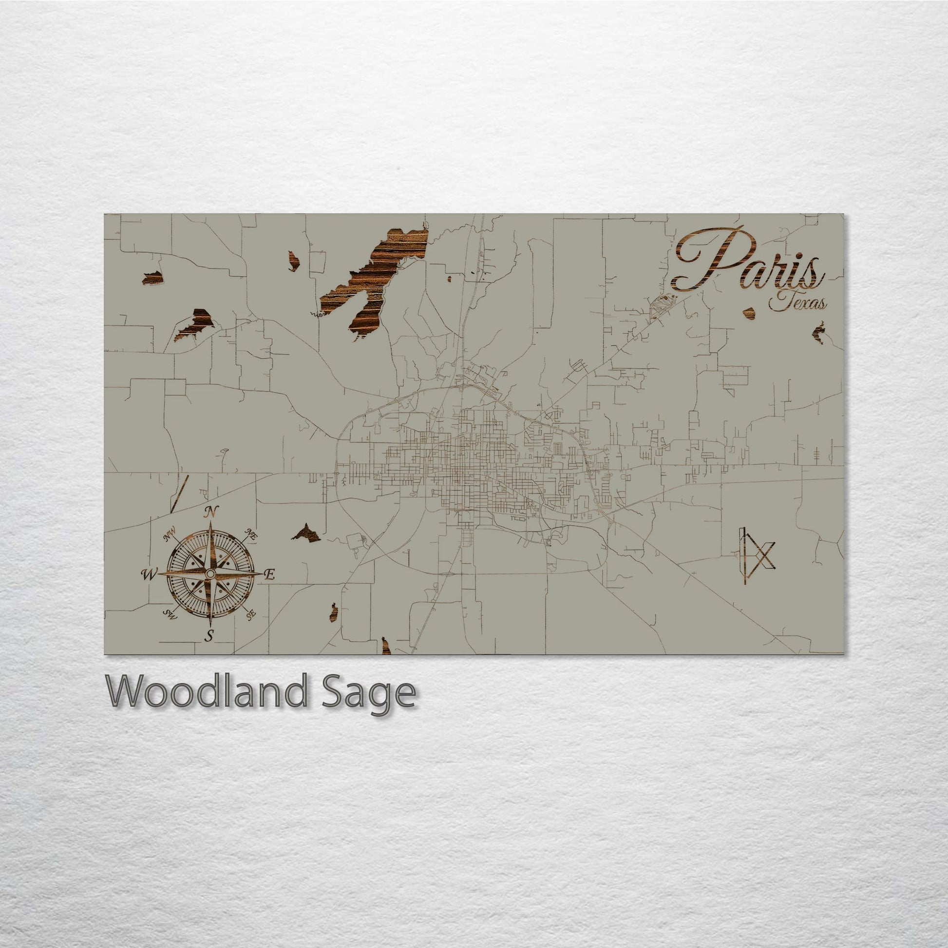 This is a street map of Paris, TX designed by Fire & Pine artists.
