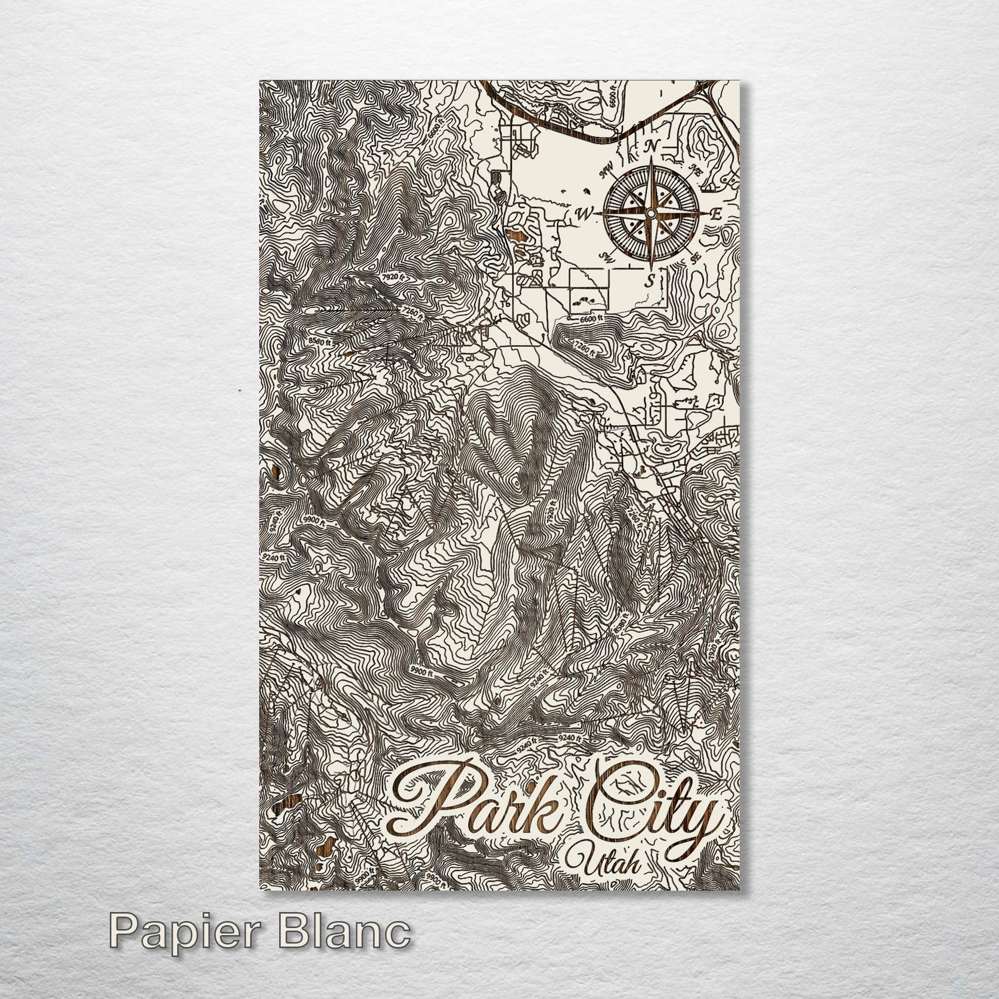 This is a topographical map of Park City, Utah designed by Fire & Pine artists.