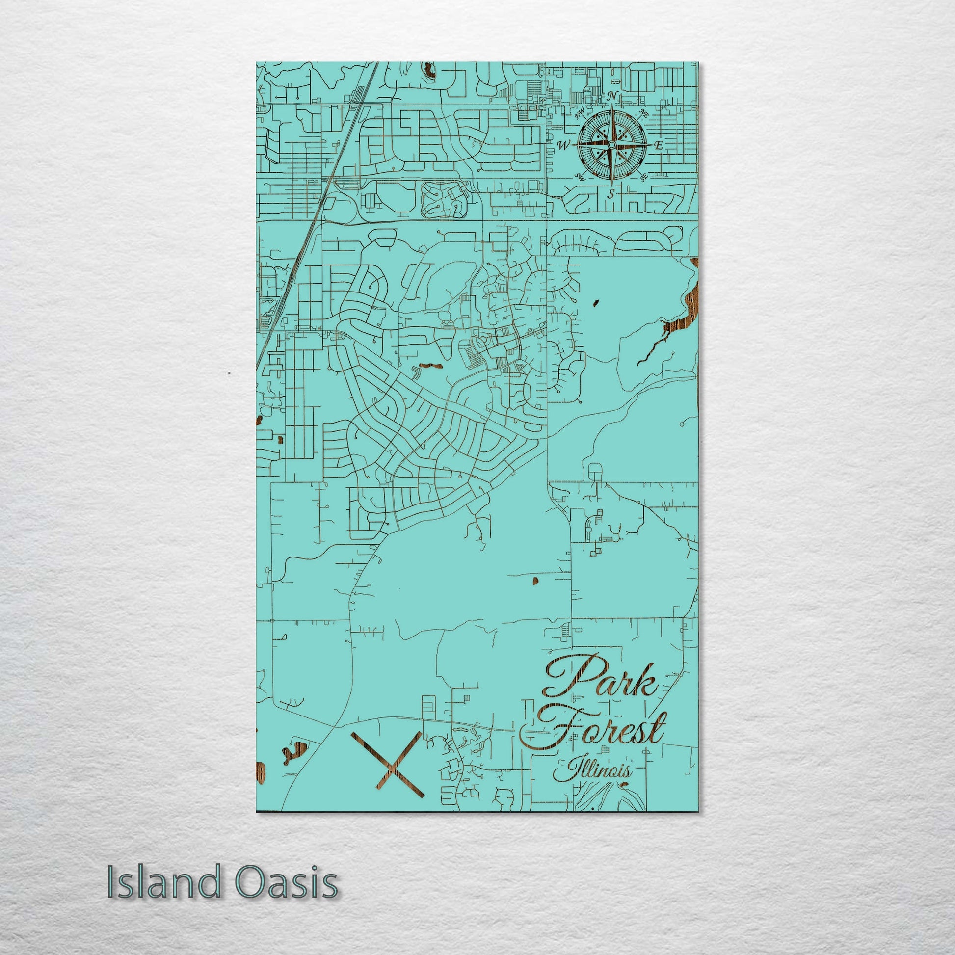 This is a street map of Park Forest, IL designed by Fire & Pine artists.