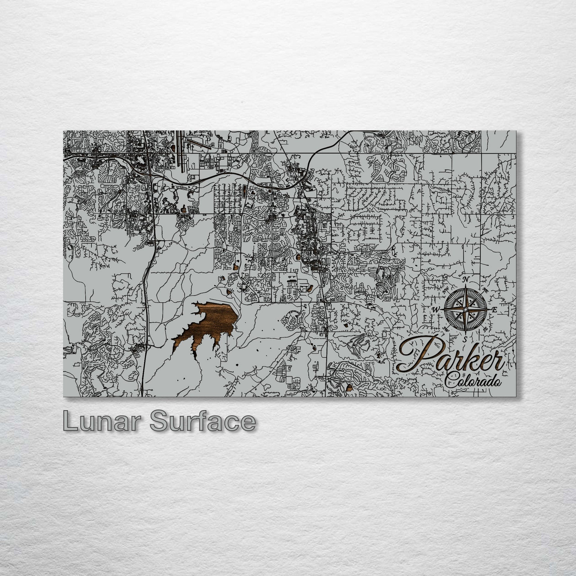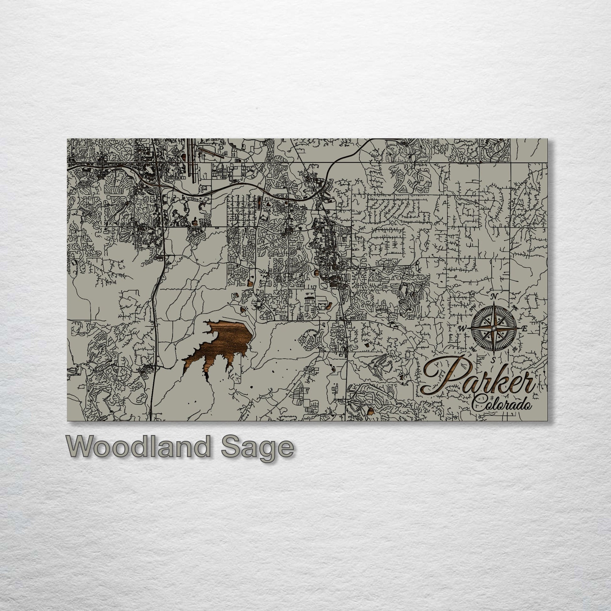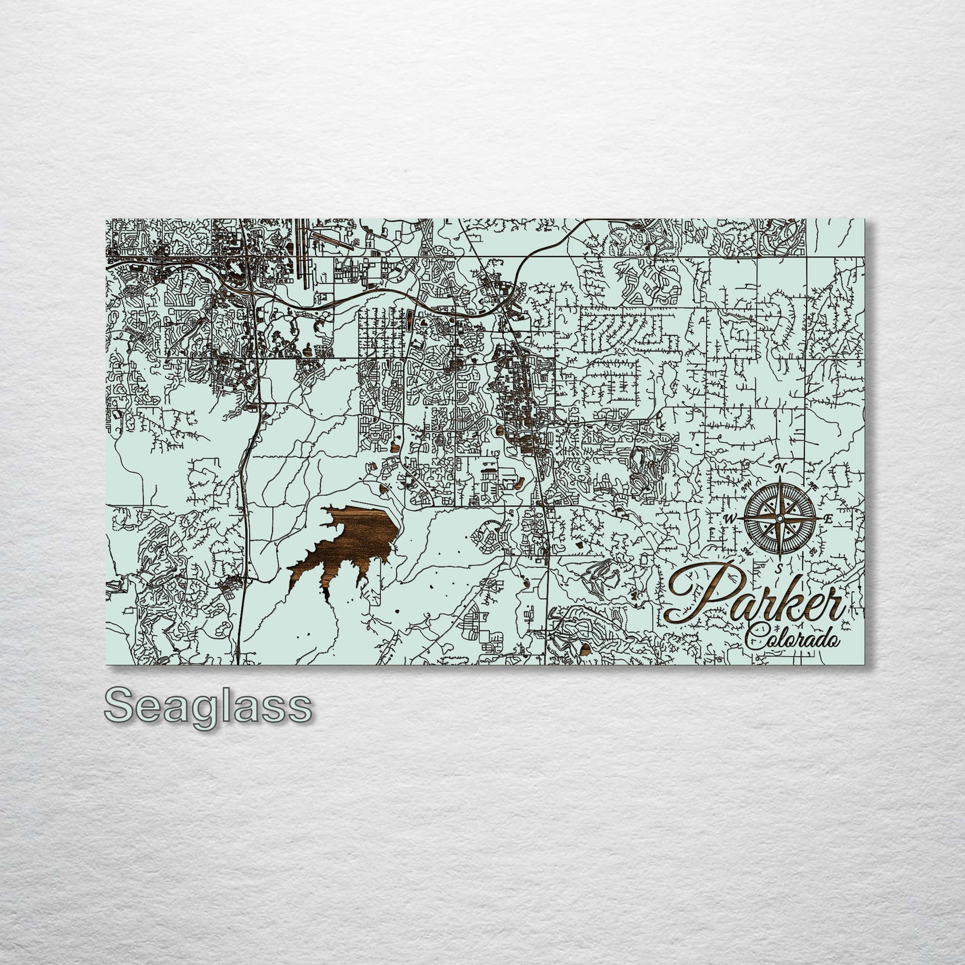 This is a street map of Parker, Colorado designed by Fire & Pine artists.