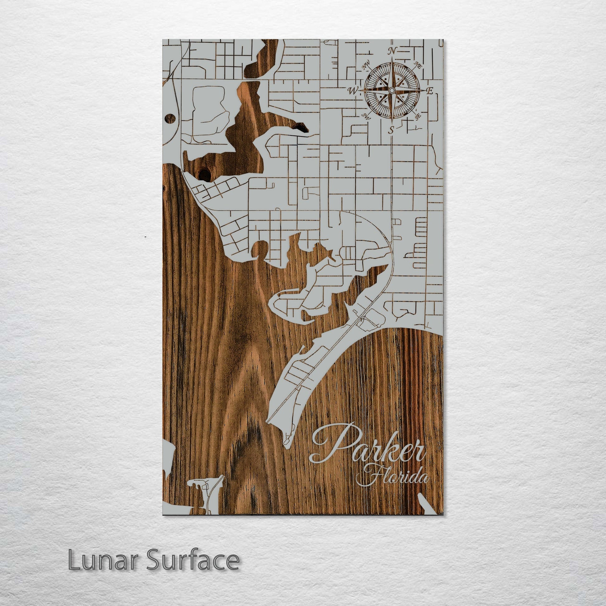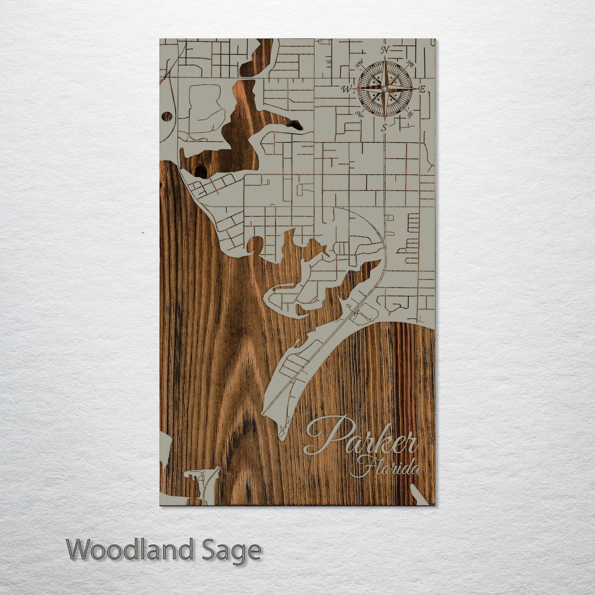 This is a street map of Parker, FL designed by Fire & Pine artists.