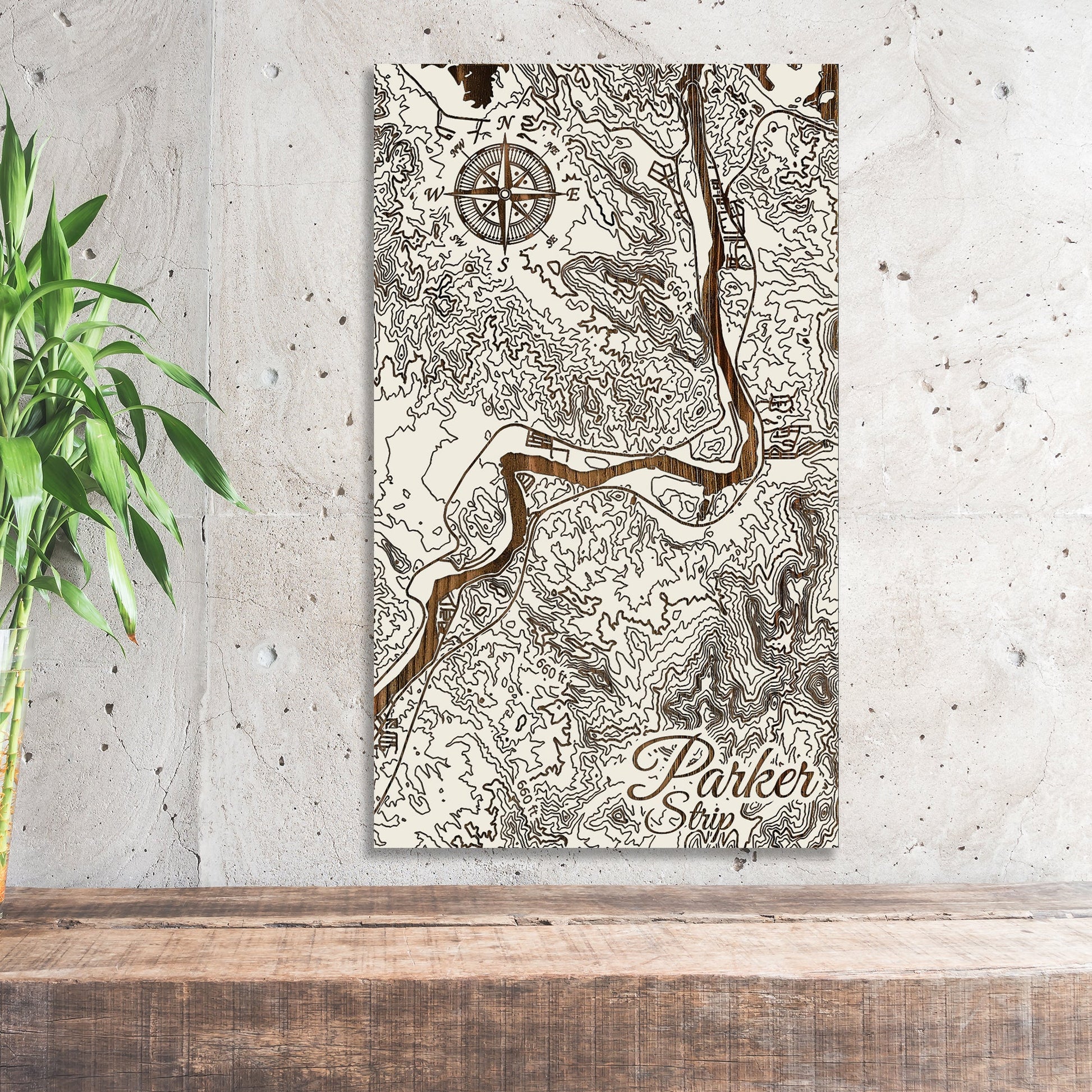 Ideal Gift for Riverside Map Collectors: Parker Strip, Arizona, wood-engraved street map is a remarkable piece for any art enthusiast's collection. Expertly crafted from the finest pine wood, this artwork intricately displays the streets of Parker Strip, offering a distinctive and captivating visual. It's a perfect choice for those who appreciate the beauty of riverside maps, geographical art, and the serene allure of Parker Strip.