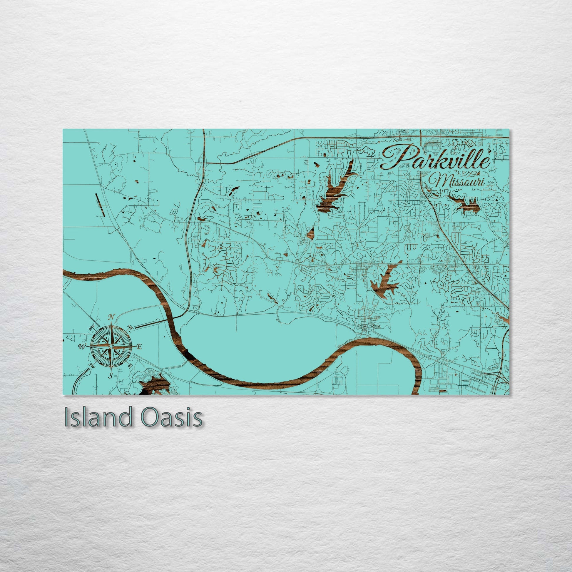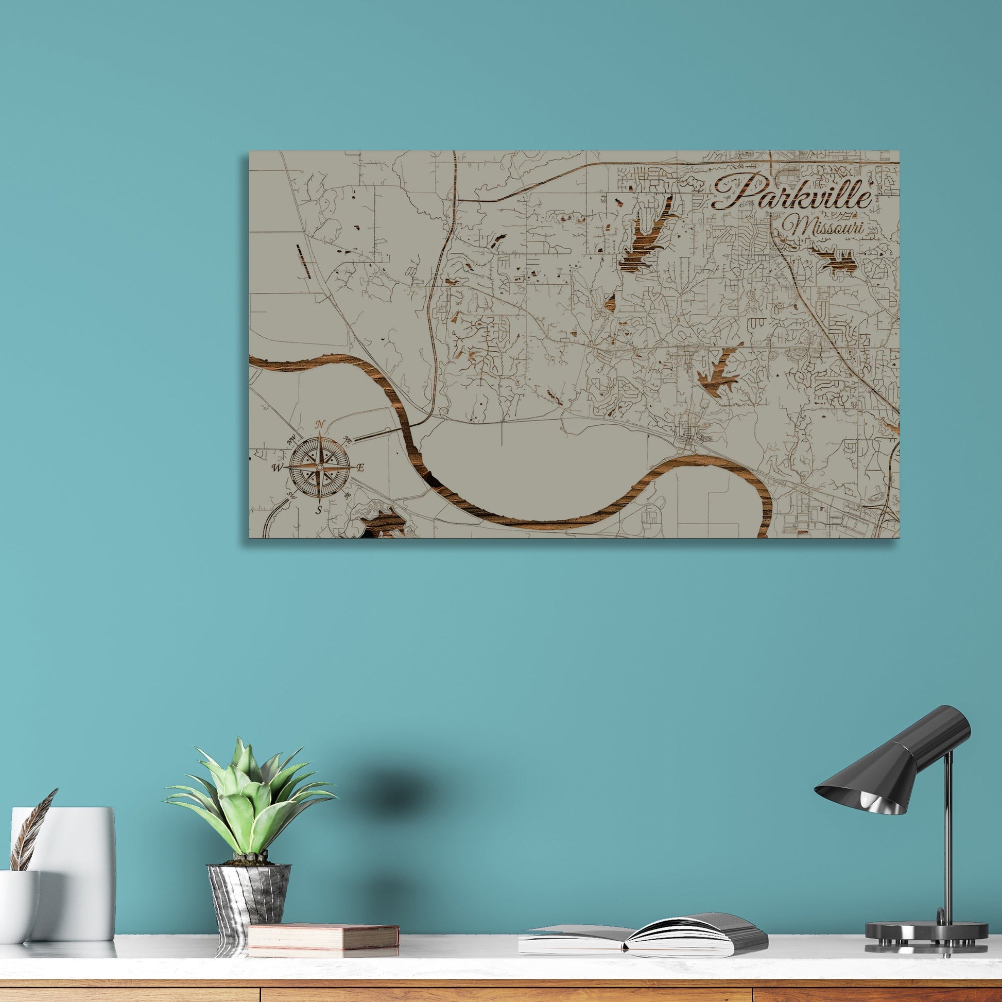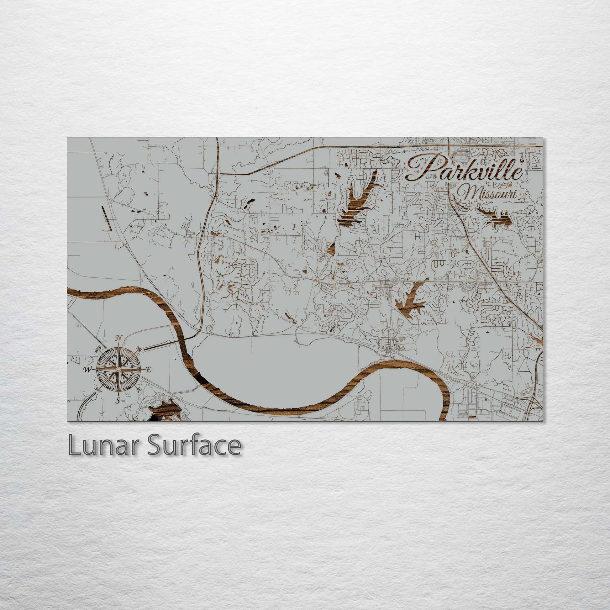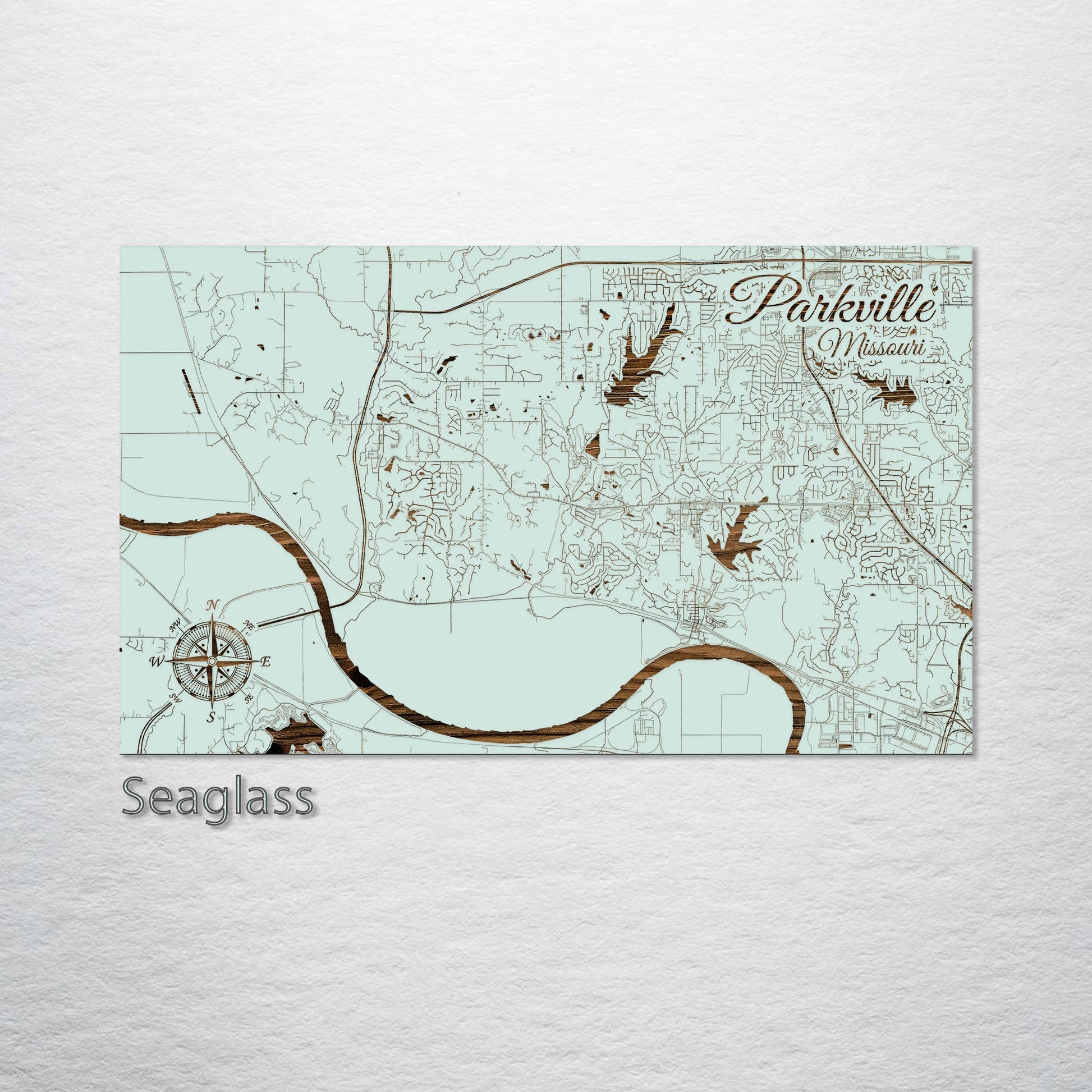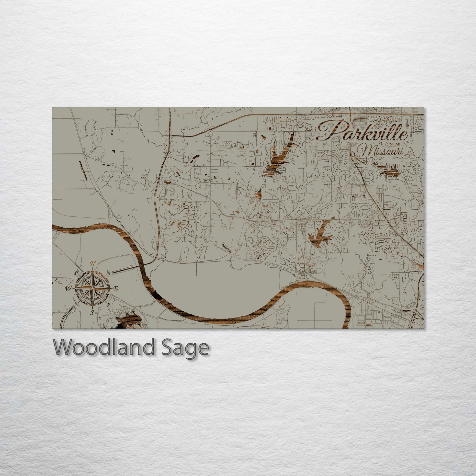 This is a street map of Parkville, MO designed by Fire & Pine artists.